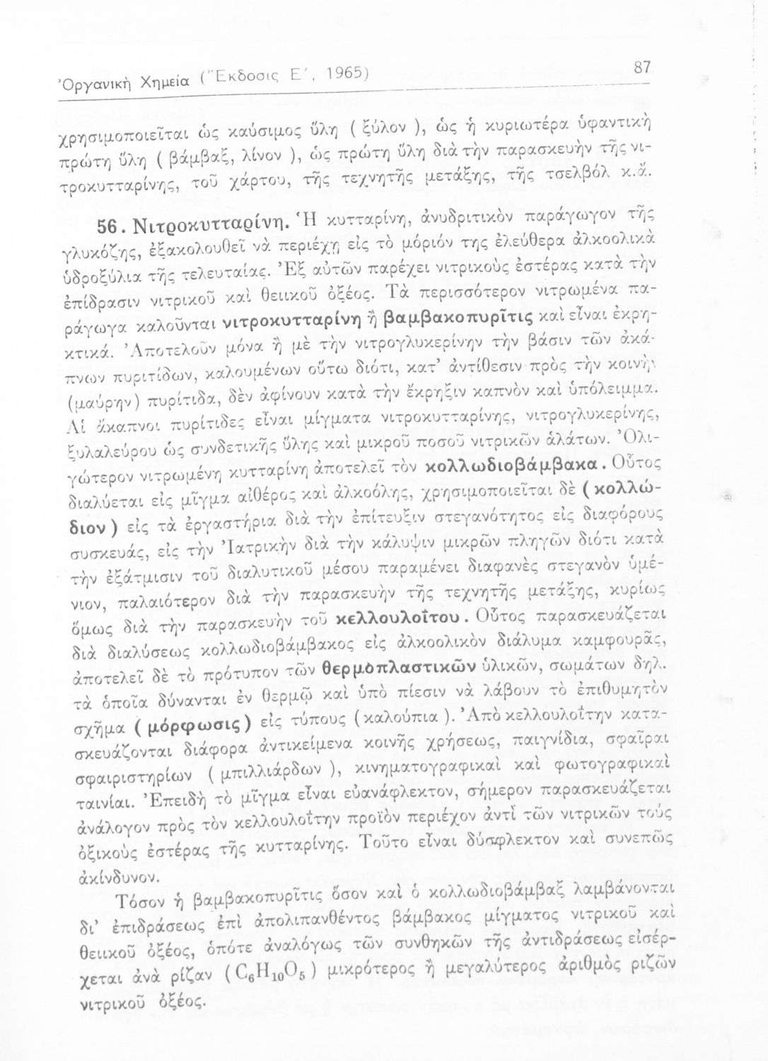 Βαθμίδα εκπαίδευσης: Δευτεροβάθμια Τάξη: ΣΤ' Γυμνασίου Μάθημα: Χημεία Γλώσσα: Καθαρεύουσα Παρουσίαση περιεχομένου: Σχολικό εγχειρίδιο Χημείας για τους μαθητές της ΣΤ΄ τάξης του Γυμνασίου. Το βιβλίο εισάγει τους μαθητές στην οργανική χημεία, εξετάζει τις οργανικές ενώσεις του άνθρακα τις πρωτεΐνες και τα οξέα. Κλείνει παρουσιάζοντας εφαρμογές των χημικών ενώσεων σε καθημερινά προϊόντα όπως είναι οι συνθετικές υφαντικές ύλες και τα πλαστικά. |