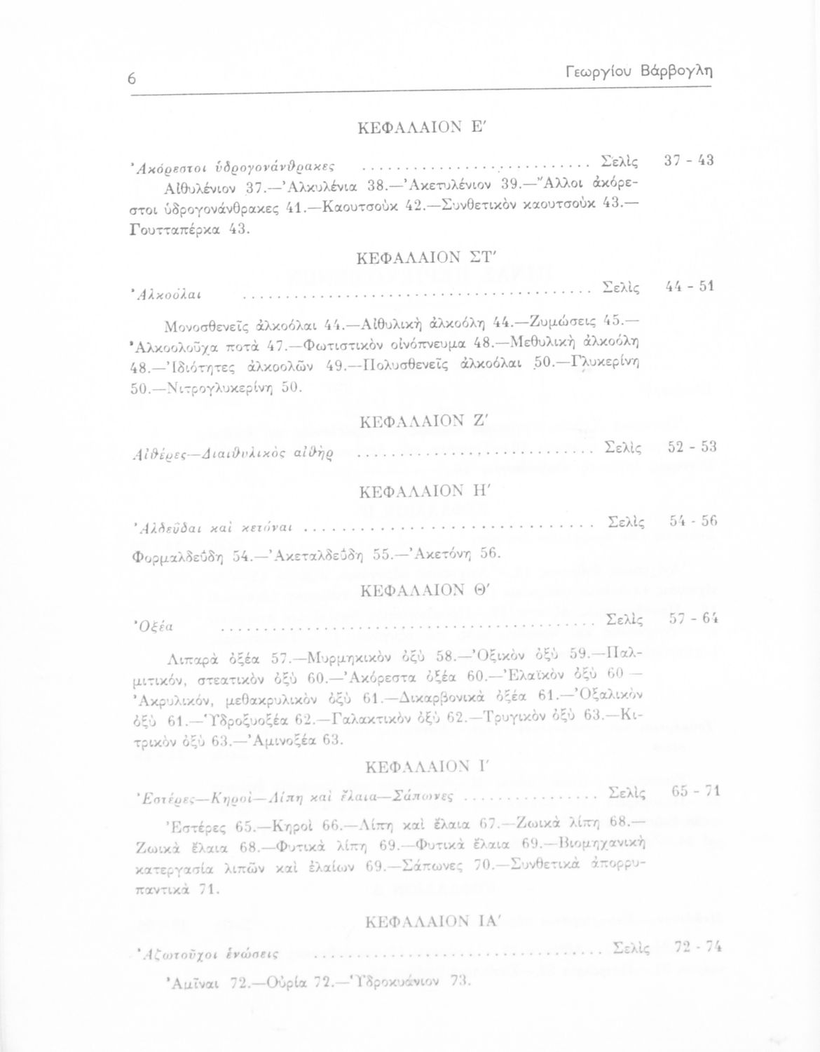 Σχολικό εγχειρίδιο Χημείας για τους μαθητές της ΣΤ΄ τάξης του Γυμνασίου. Το βιβλίο εισάγει τους μαθητές στην οργανική χημεία, εξετάζει τις οργανικές ενώσεις του άνθρακα τις πρωτεΐνες και τα οξέα. Κλείνει παρουσιάζοντας εφαρμογές των χημικών ενώσεων σε καθημερινά προϊόντα όπως είναι οι συνθετικές υφαντικές ύλες και τα πλαστικά.