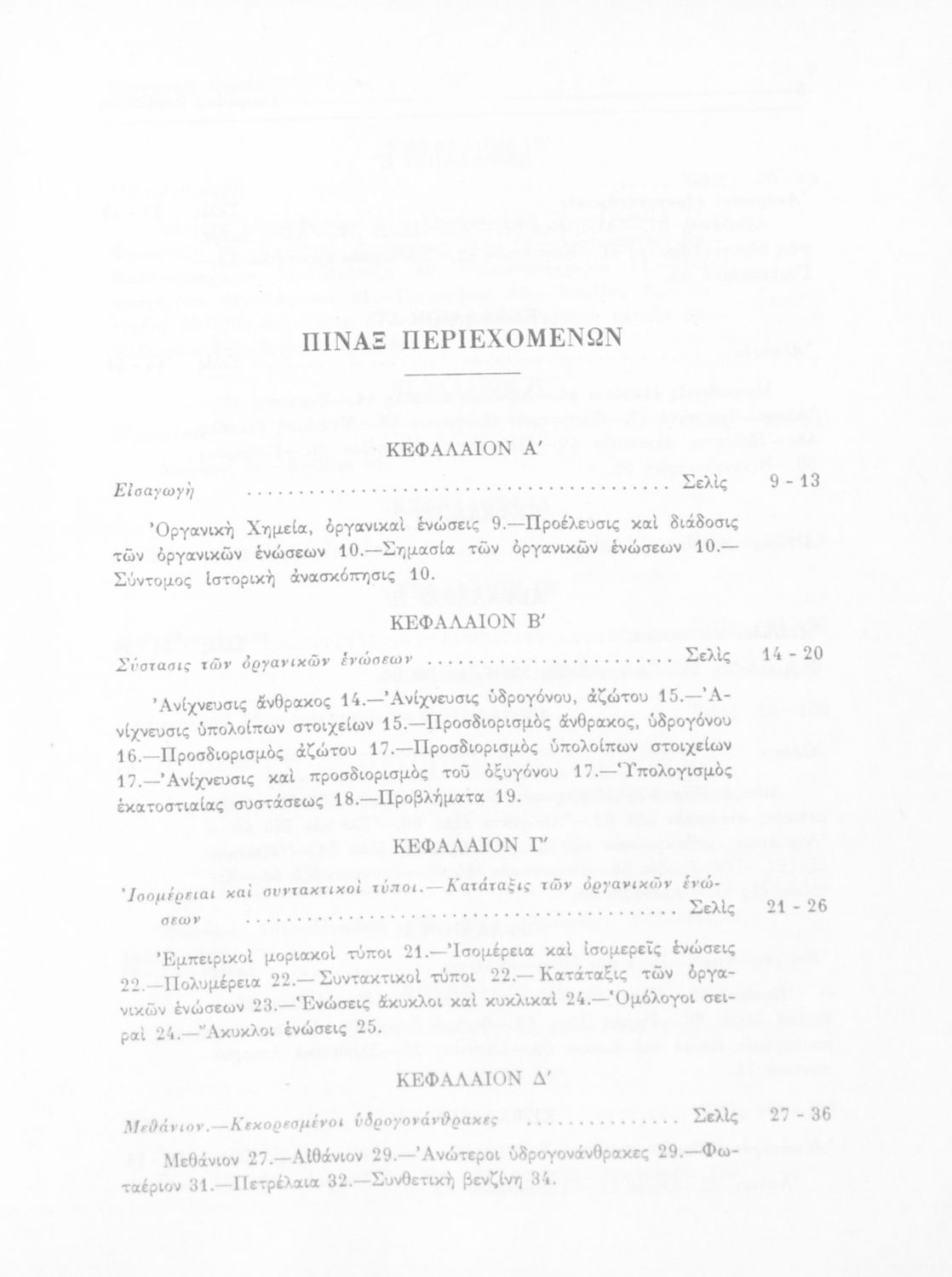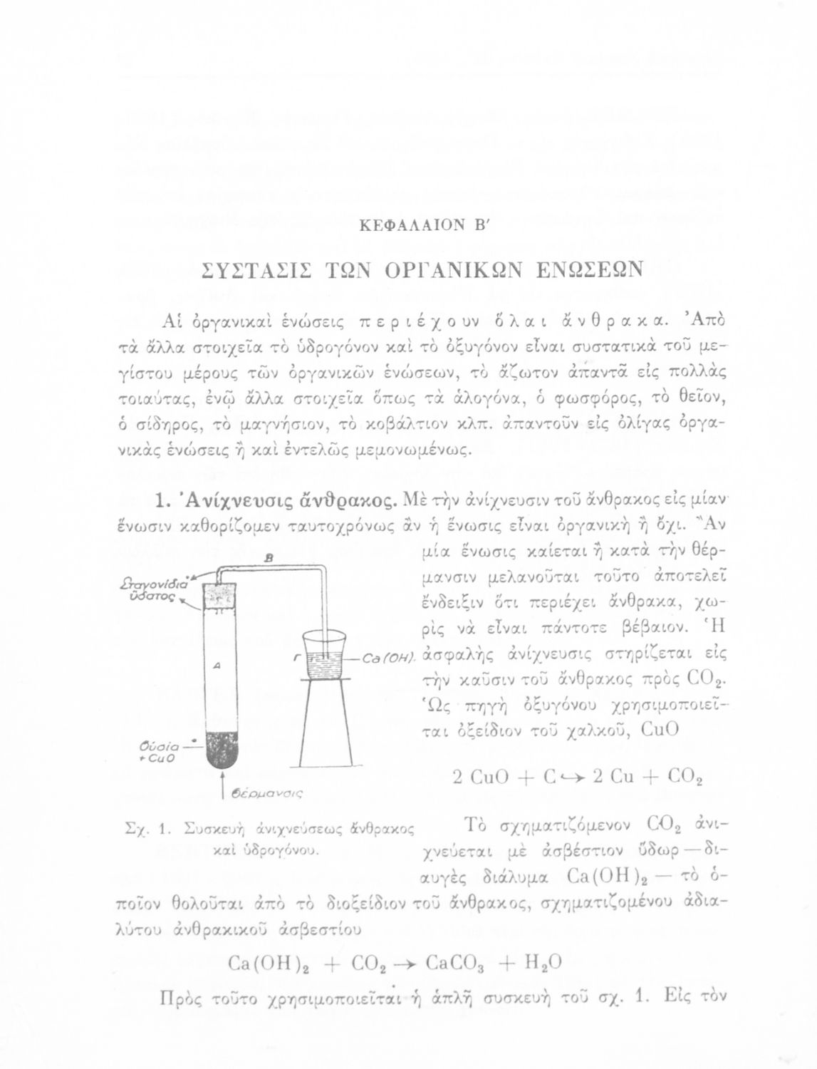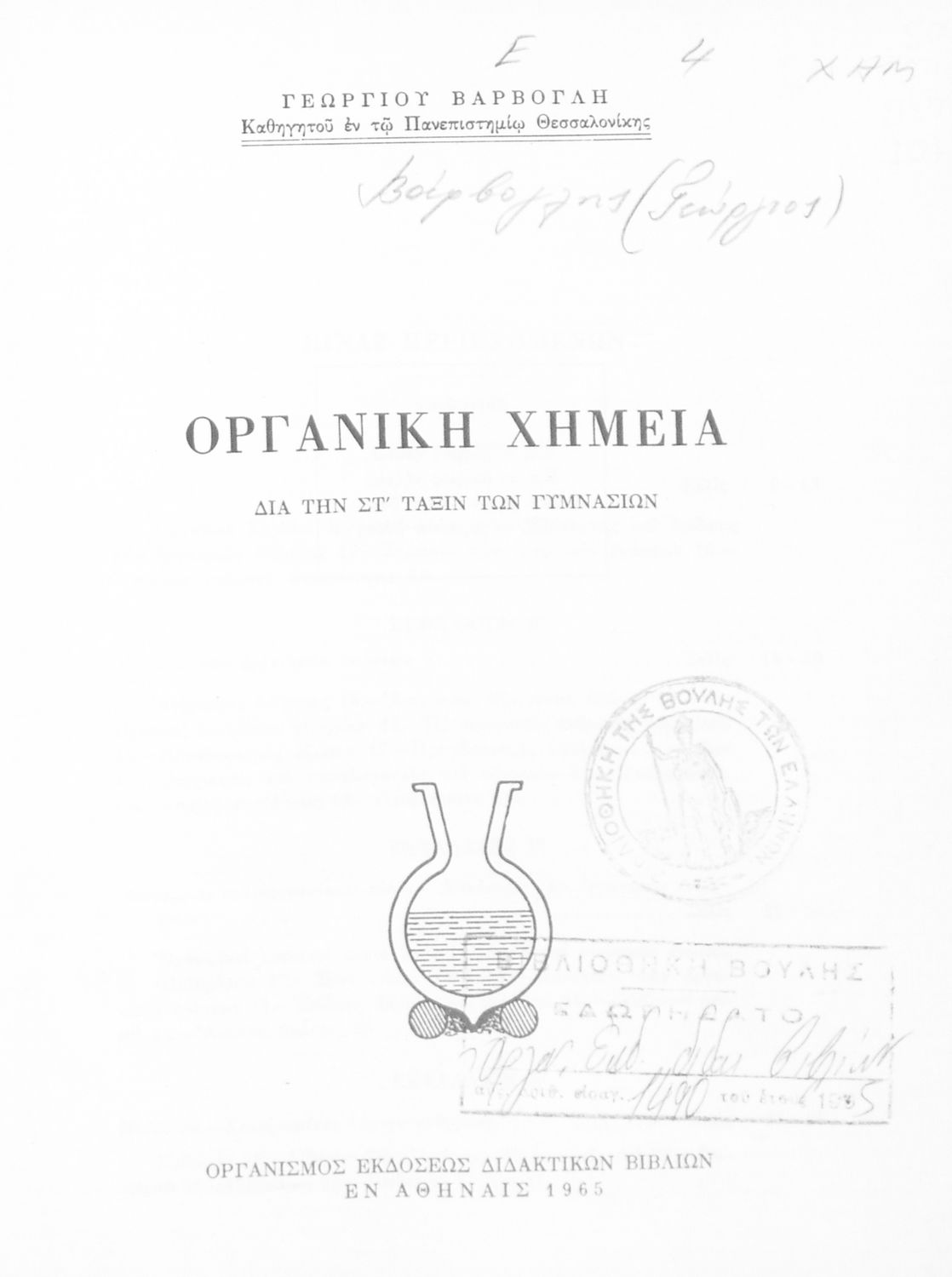 Βαθμίδα εκπαίδευσης: Δευτεροβάθμια Τάξη: ΣΤ' Γυμνασίου Μάθημα: Χημεία Γλώσσα: Καθαρεύουσα Παρουσίαση περιεχομένου: Σχολικό εγχειρίδιο Χημείας για τους μαθητές της ΣΤ΄ τάξης του Γυμνασίου. Το βιβλίο εισάγει τους μαθητές στην οργανική χημεία, εξετάζει τις οργανικές ενώσεις του άνθρακα τις πρωτεΐνες και τα οξέα. Κλείνει παρουσιάζοντας εφαρμογές των χημικών ενώσεων σε καθημερινά προϊόντα όπως είναι οι συνθετικές υφαντικές ύλες και τα πλαστικά. |