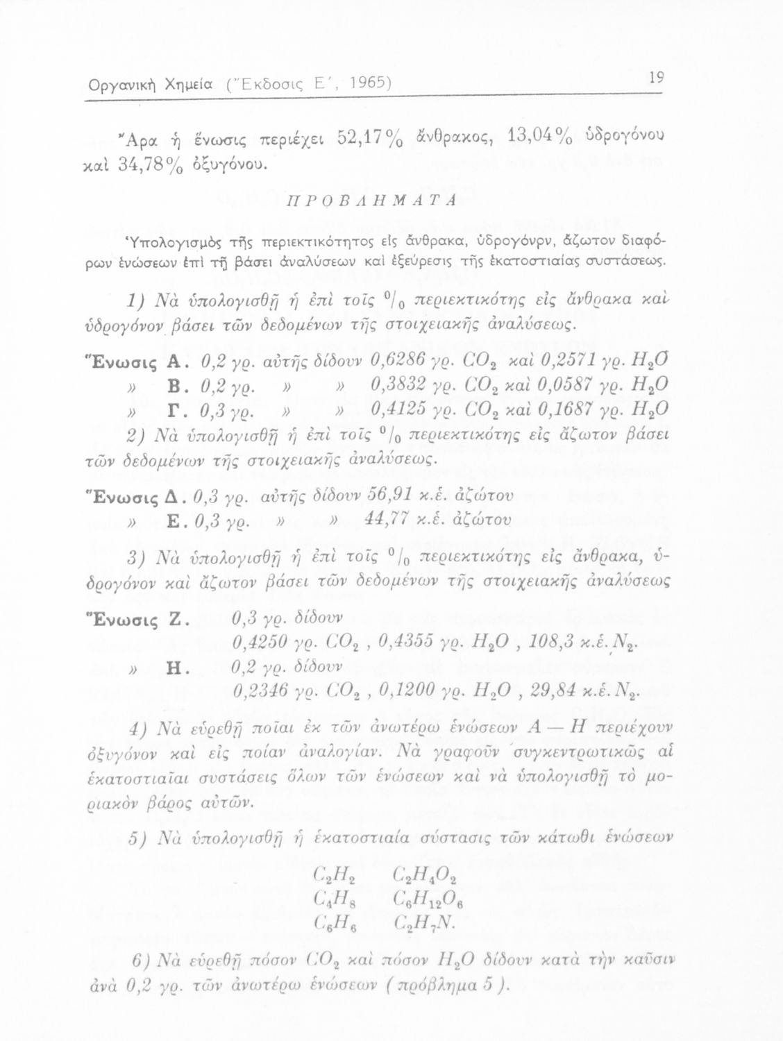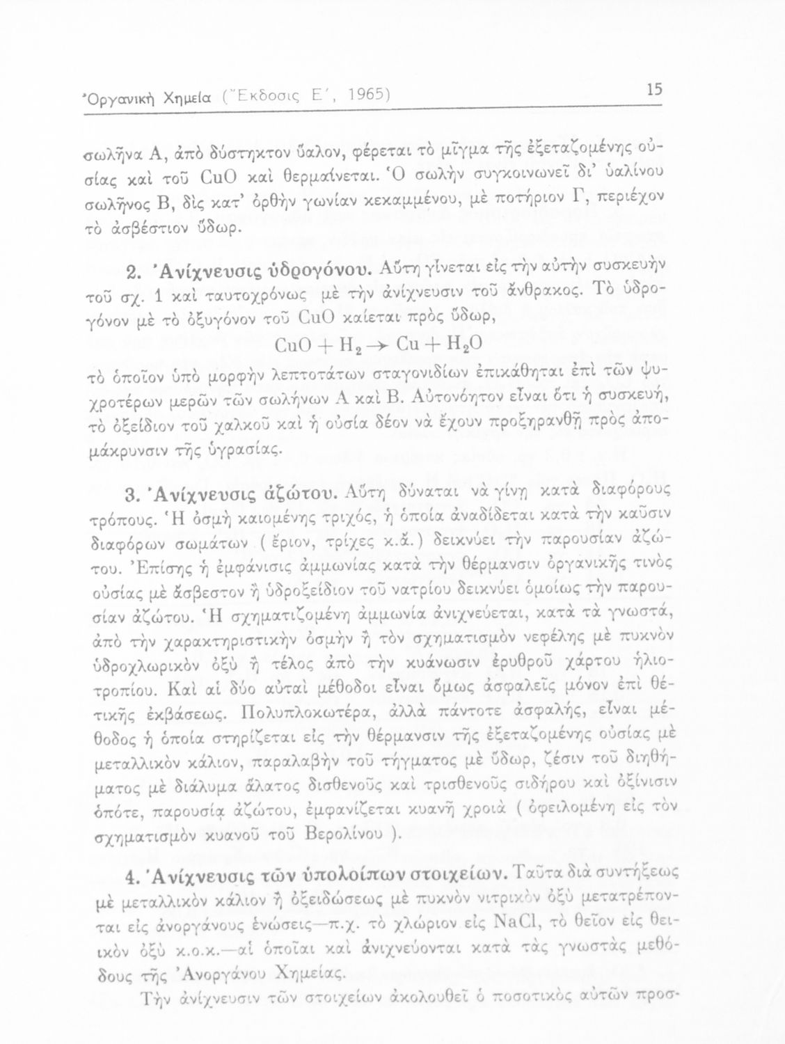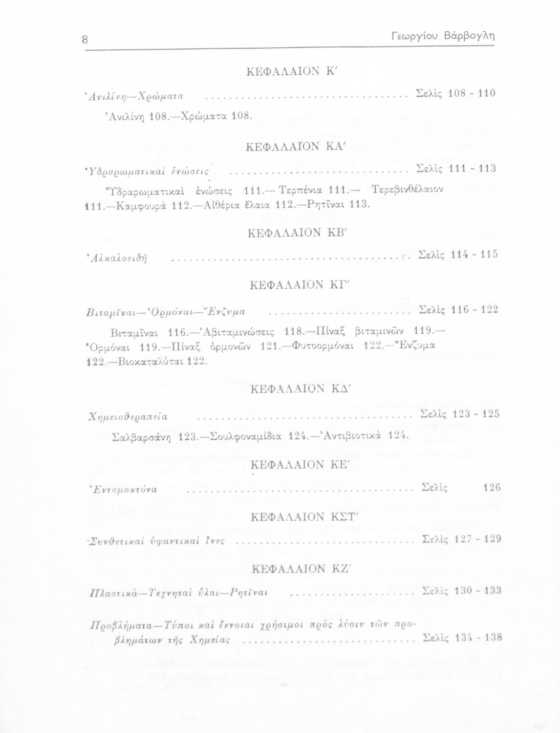 Βαθμίδα εκπαίδευσης: Δευτεροβάθμια Τάξη: ΣΤ' Γυμνασίου Μάθημα: Χημεία Γλώσσα: Καθαρεύουσα Παρουσίαση περιεχομένου: Σχολικό εγχειρίδιο Χημείας για τους μαθητές της ΣΤ΄ τάξης του Γυμνασίου. Το βιβλίο εισάγει τους μαθητές στην οργανική χημεία, εξετάζει τις οργανικές ενώσεις του άνθρακα τις πρωτεΐνες και τα οξέα. Κλείνει παρουσιάζοντας εφαρμογές των χημικών ενώσεων σε καθημερινά προϊόντα όπως είναι οι συνθετικές υφαντικές ύλες και τα πλαστικά. |