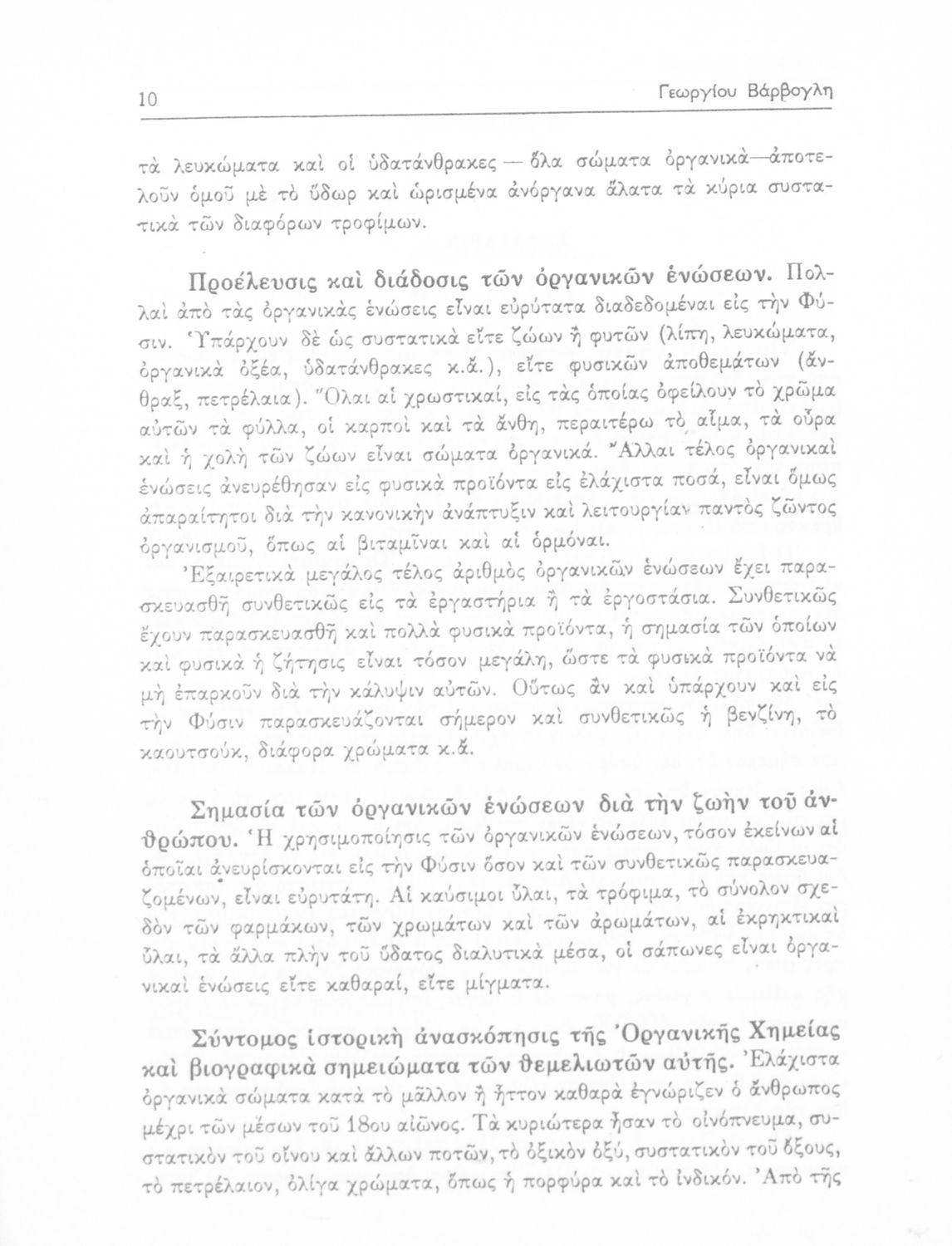 LDR 01614 2200217 4500 035 ## _a03-20557798 040 ## _aΒιβλιοθήκη της Βουλής των Ελλήνων 041 ## _ael 100 ## _aΓεώργιος Βάρβογλης 110 ## _a20557798 245 0# _aΟργανική χημεία δια την ΣΤ΄ τάξιν των Γυμνασίων 250 ## _a5η Έκδοση 260 ## _aΑθήνα _bΟργανισμός Εκδόσεως Διδακτικών Βιβλίων _c1965 300 ## _a142 _bΕικόνες, σκίτσα ασπρόμαυρα 520 ## _aΣχολικό εγχειρίδιο Χημείας για τους μαθητές της ΣΤ΄ τάξης του Γυμνασίου. Το βιβλίο εισάγει τους μαθητές στην οργανική χημεία, εξετάζει τις οργανικές ενώσεις του άνθρακα τις πρωτεΐνες και τα οξέα. Κλείνει παρουσιάζοντας εφαρμογές των χημικών ενώσεων σε καθημερινά προϊόντα όπως είναι οι συνθετικές υφαντικές ύλες και τα πλαστικά. 521 ## _aΣΤ' Γυμνασίου 522 ## _aΕλλάδα 546 ## _aΚαθαρεύουσα 563 ## _aΜαλακό Εξώφυλλο 583 ## _a1281/3-5-1965 _c1965 650 #4 _aΑιθέρια έλαια _aΑλκοόλ _aΆμυλο _aΆνθρακας _aΙσομερείς ενώσεις _aΛιπαρά οξέα _aΟινόπνευμα _aΠετρέλαιο _aΠλαστικό _aΦρουκτόζη _aΦυτικά έλαια