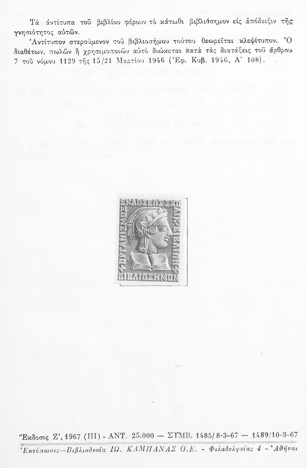 Εκδότης: Οργανισμός Εκδόσεως Διδακτικών Βιβλίων Έτος έκδοσης: 1967 Τόπος έκδοσης: Αθήνα Έκδοση: 7η Υπουργική απόφαση / Σύμβαση: 1485/8-3-1967, 1489/10-3-1967 Έτος έγκρισης: 1967 |