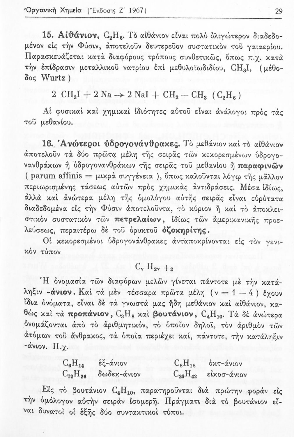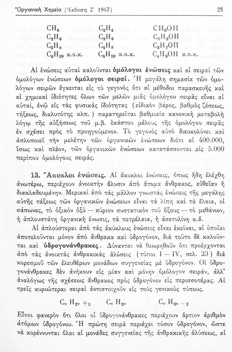 Σχολικό εγχειρίδιο Χημείας για τους μαθητές της Γ΄ Λυκείου. Το βιβλίο εισάγει τους μαθητές στην οργανική χημεία, εξετάζει τις οργανικές ενώσεις του άνθρακα τις πρωτεΐνες και τα οξέα. Κλείνει παρουσιάζοντας εφαρμογές των χημικών ενώσεων σε καθημερινά προϊόντα όπως είναι οι συνθετικές υφαντικές ύλες και τα πλαστικά.