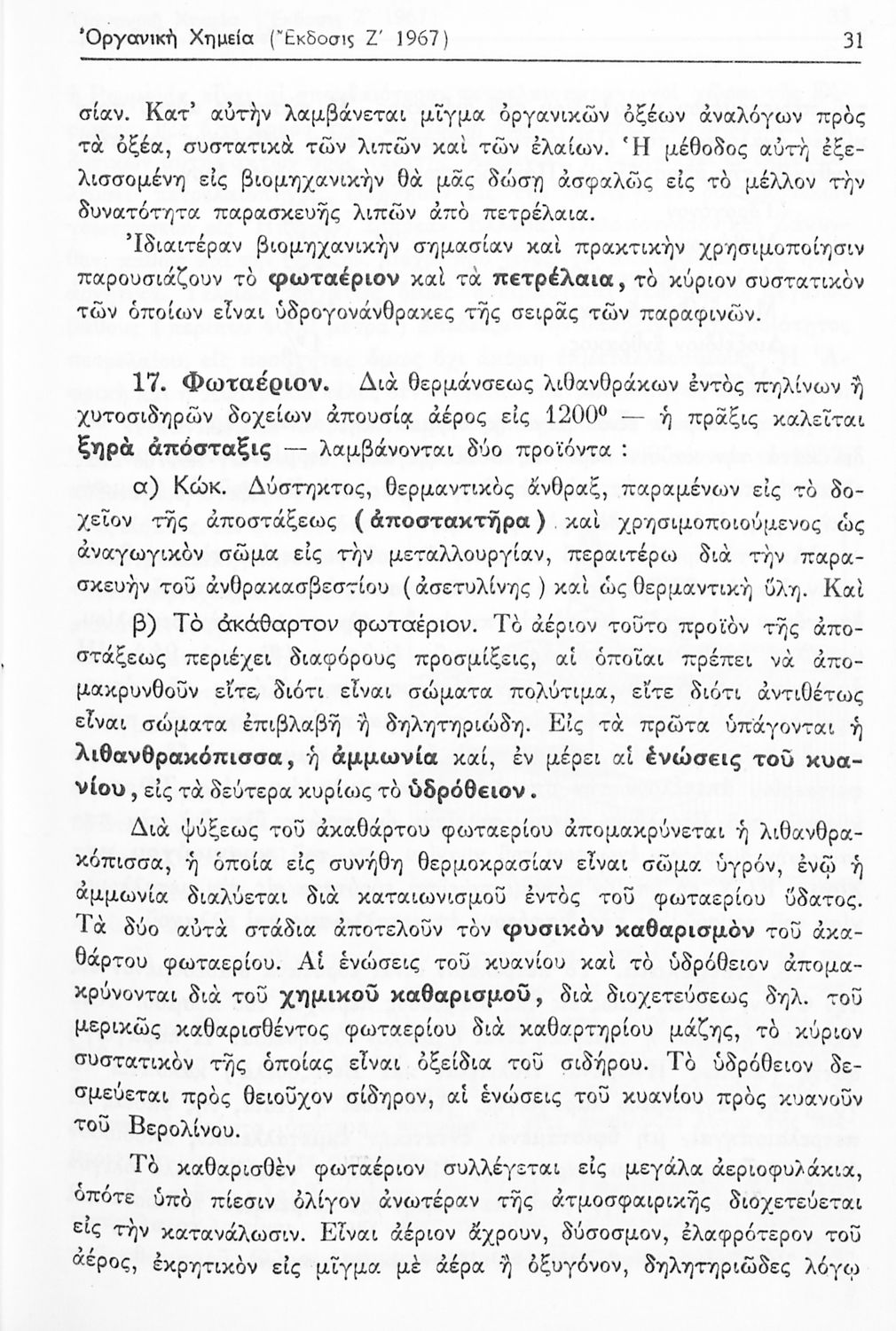 LDR 01570 2200217 4500 035 ## _a03-20557802 040 ## _aΒιβλιοθήκη της Βουλής των Ελλήνων 041 ## _ael 100 ## _aΓεώργιος Βάρβογλης 110 ## _a20557802 245 0# _aΟργανική χημεία Γ' Λυκείου 250 ## _a7η Έκδοση 260 ## _aΑθήνα _bΟργανισμός Εκδόσεως Διδακτικών Βιβλίων _c1967 300 ## _a144 _bΕικόνες, σκίτσα ασπρόμαυρα 520 ## _aΣχολικό εγχειρίδιο Χημείας για τους μαθητές της Γ΄ Λυκείου. Το βιβλίο εισάγει τους μαθητές στην οργανική χημεία, εξετάζει τις οργανικές ενώσεις του άνθρακα τις πρωτεΐνες και τα οξέα. Κλείνει παρουσιάζοντας εφαρμογές των χημικών ενώσεων σε καθημερινά προϊόντα όπως είναι οι συνθετικές υφαντικές ύλες και τα πλαστικά. 521 ## _aΓ' Λυκείου 522 ## _aΕλλάδα 546 ## _aΑπλή καθαρεύουσα 563 ## _aΣκληρό Εξώφυλλο 583 ## _a1485/8-3-1967, 1489/10-3-1967 _c1967 650 #4 _aΑιθέρια έλαια _aΑλκοόλ _aΆμυλο _aΆνθρακας _aΙσομερείς ενώσεις _aΛιπαρά οξέα _aΟινόπνευμα _aΠετρέλαιο _aΠλαστικό _aΦρουκτόζη _aΦυτικά έλαια