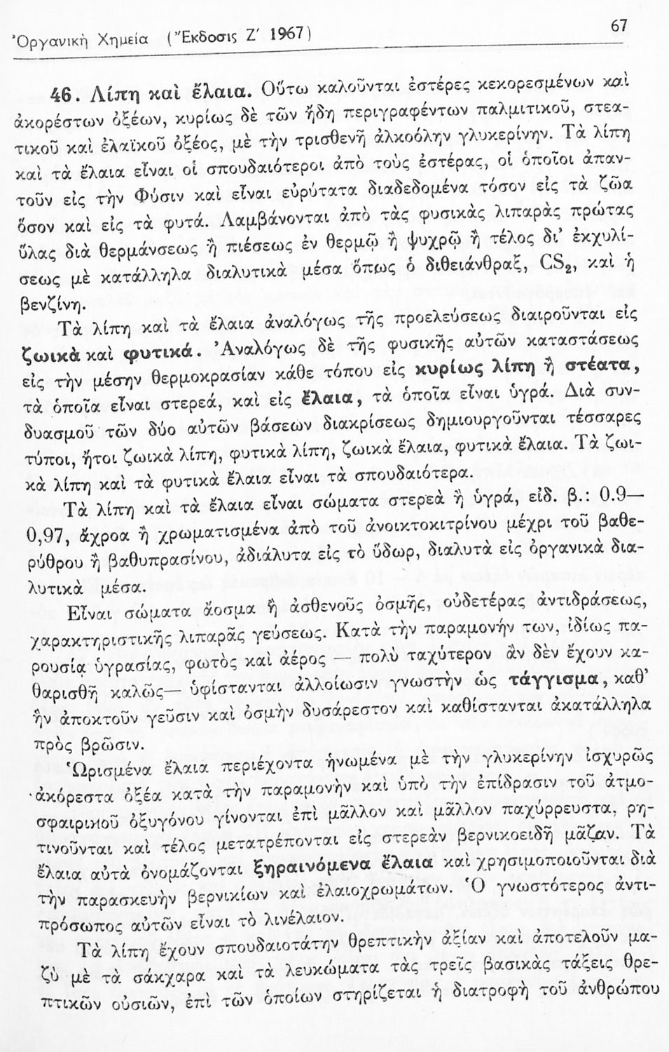 Σχολικό εγχειρίδιο Χημείας για τους μαθητές της Γ΄ Λυκείου. Το βιβλίο εισάγει τους μαθητές στην οργανική χημεία, εξετάζει τις οργανικές ενώσεις του άνθρακα τις πρωτεΐνες και τα οξέα. Κλείνει παρουσιάζοντας εφαρμογές των χημικών ενώσεων σε καθημερινά προϊόντα όπως είναι οι συνθετικές υφαντικές ύλες και τα πλαστικά.