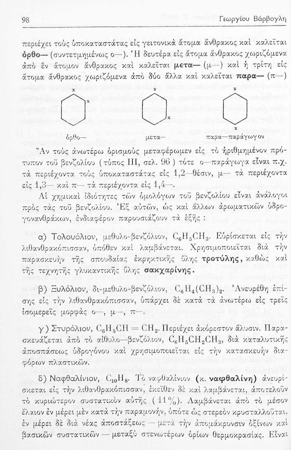 LDR 01570 2200217 4500 035 ## _a03-20557802 040 ## _aΒιβλιοθήκη της Βουλής των Ελλήνων 041 ## _ael 100 ## _aΓεώργιος Βάρβογλης 110 ## _a20557802 245 0# _aΟργανική χημεία Γ' Λυκείου 250 ## _a7η Έκδοση 260 ## _aΑθήνα _bΟργανισμός Εκδόσεως Διδακτικών Βιβλίων _c1967 300 ## _a144 _bΕικόνες, σκίτσα ασπρόμαυρα 520 ## _aΣχολικό εγχειρίδιο Χημείας για τους μαθητές της Γ΄ Λυκείου. Το βιβλίο εισάγει τους μαθητές στην οργανική χημεία, εξετάζει τις οργανικές ενώσεις του άνθρακα τις πρωτεΐνες και τα οξέα. Κλείνει παρουσιάζοντας εφαρμογές των χημικών ενώσεων σε καθημερινά προϊόντα όπως είναι οι συνθετικές υφαντικές ύλες και τα πλαστικά. 521 ## _aΓ' Λυκείου 522 ## _aΕλλάδα 546 ## _aΑπλή καθαρεύουσα 563 ## _aΣκληρό Εξώφυλλο 583 ## _a1485/8-3-1967, 1489/10-3-1967 _c1967 650 #4 _aΑιθέρια έλαια _aΑλκοόλ _aΆμυλο _aΆνθρακας _aΙσομερείς ενώσεις _aΛιπαρά οξέα _aΟινόπνευμα _aΠετρέλαιο _aΠλαστικό _aΦρουκτόζη _aΦυτικά έλαια