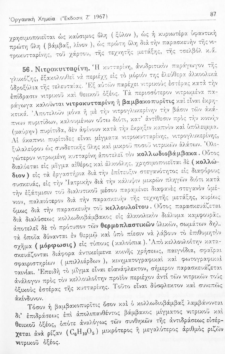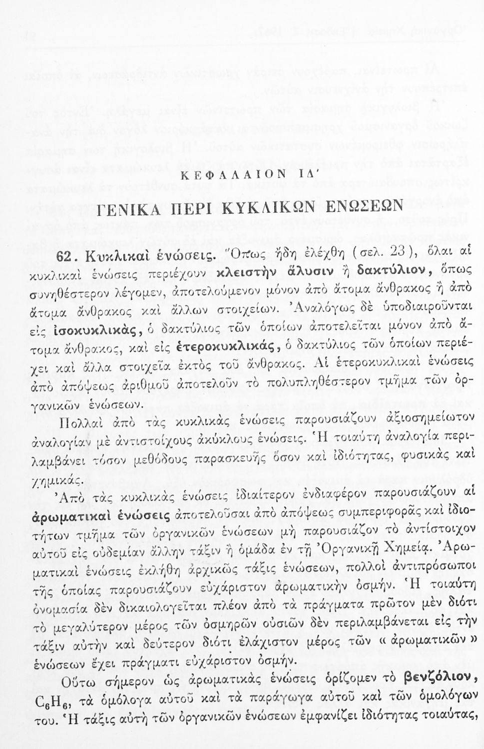 Σχολικό εγχειρίδιο Χημείας για τους μαθητές της Γ΄ Λυκείου. Το βιβλίο εισάγει τους μαθητές στην οργανική χημεία, εξετάζει τις οργανικές ενώσεις του άνθρακα τις πρωτεΐνες και τα οξέα. Κλείνει παρουσιάζοντας εφαρμογές των χημικών ενώσεων σε καθημερινά προϊόντα όπως είναι οι συνθετικές υφαντικές ύλες και τα πλαστικά.