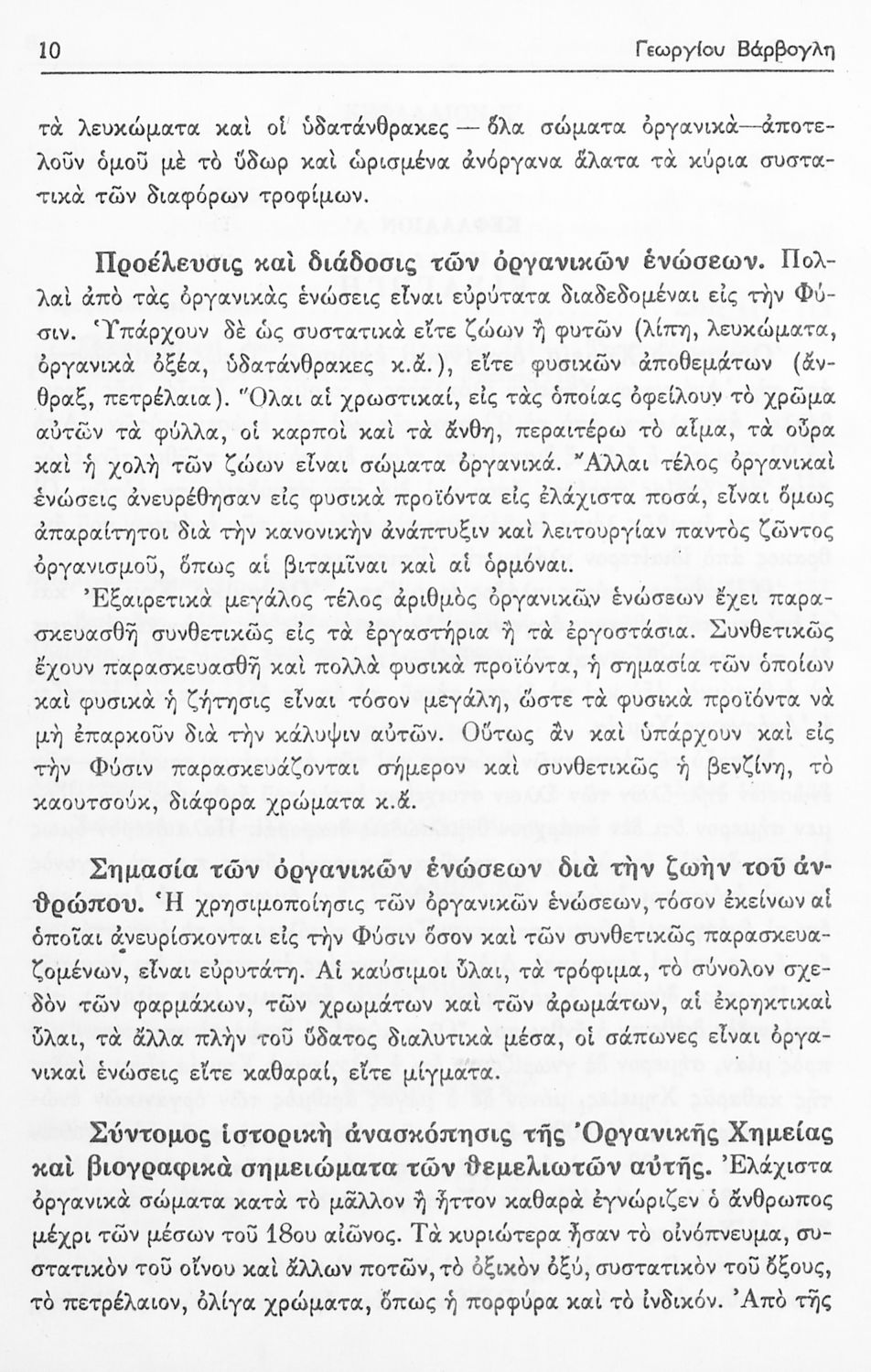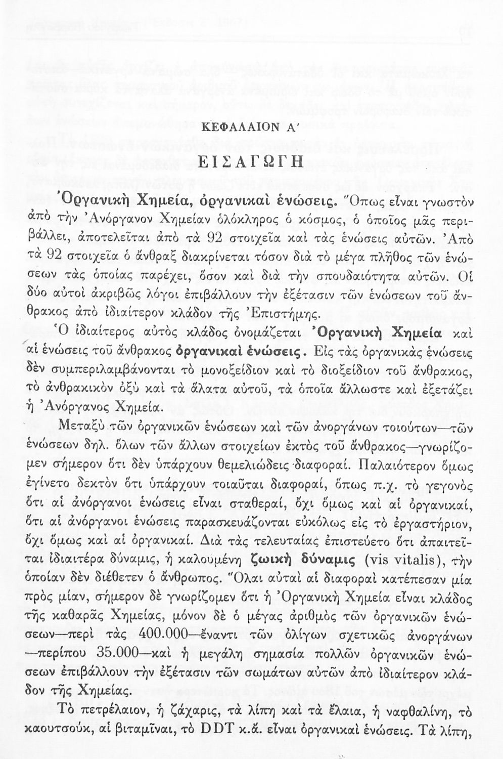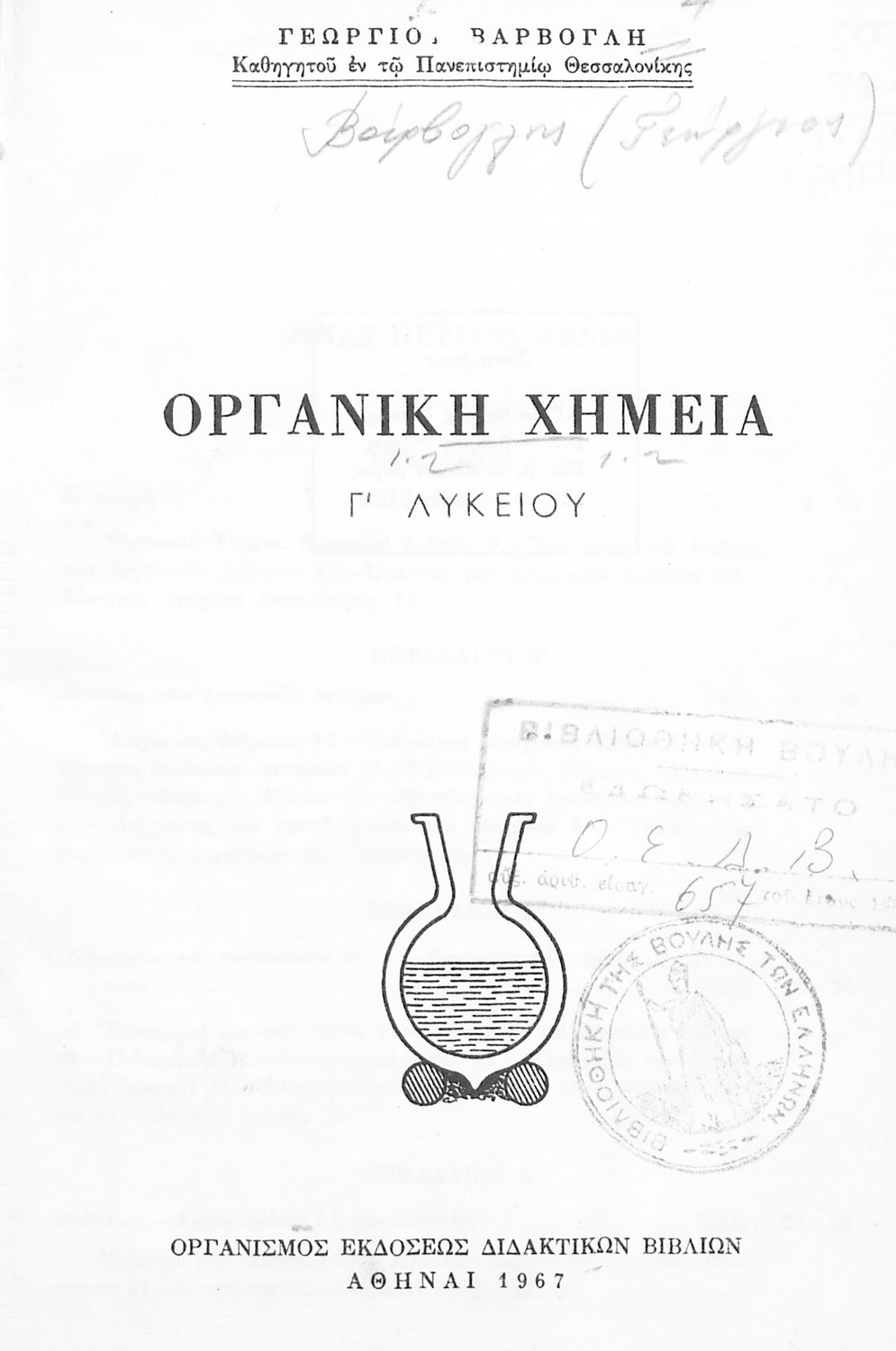 Σχολικό εγχειρίδιο Χημείας για τους μαθητές της Γ΄ Λυκείου. Το βιβλίο εισάγει τους μαθητές στην οργανική χημεία, εξετάζει τις οργανικές ενώσεις του άνθρακα τις πρωτεΐνες και τα οξέα. Κλείνει παρουσιάζοντας εφαρμογές των χημικών ενώσεων σε καθημερινά προϊόντα όπως είναι οι συνθετικές υφαντικές ύλες και τα πλαστικά.