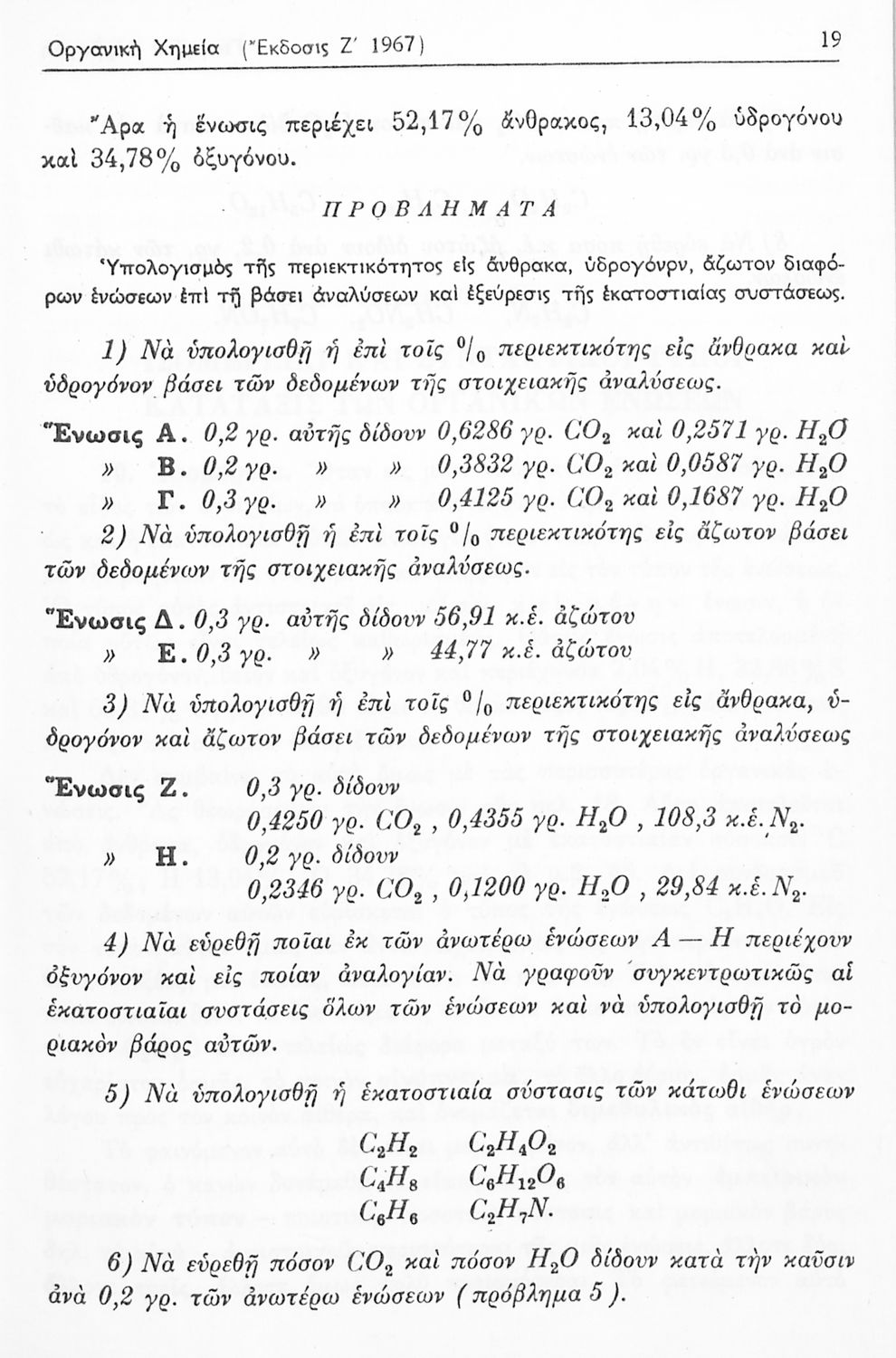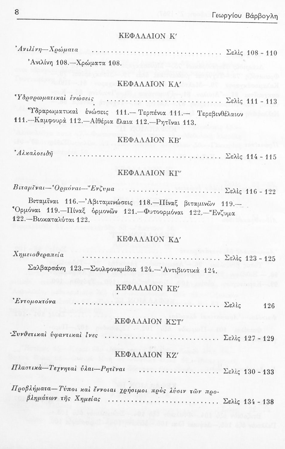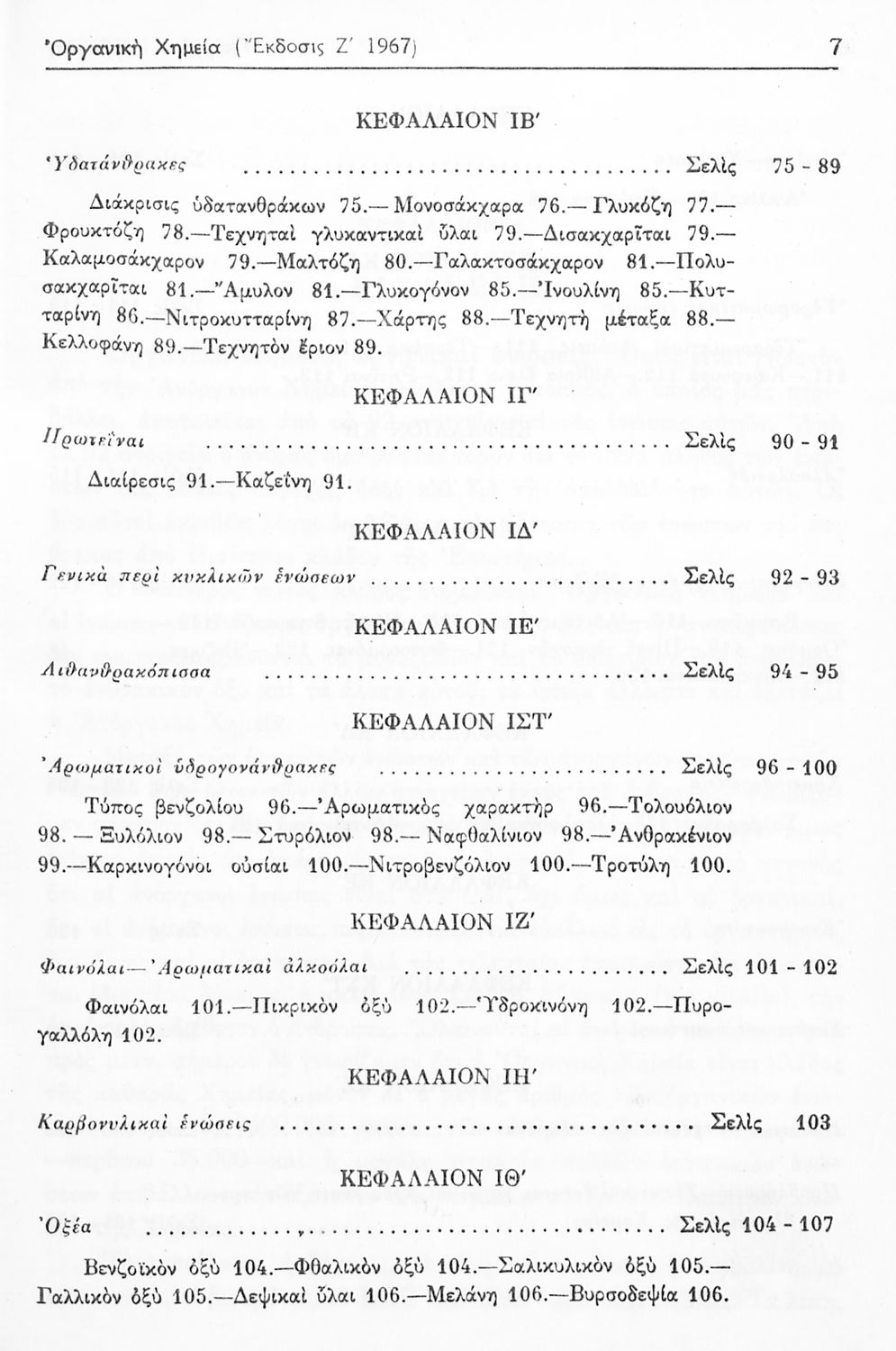 Σχολικό εγχειρίδιο Χημείας για τους μαθητές της Γ΄ Λυκείου. Το βιβλίο εισάγει τους μαθητές στην οργανική χημεία, εξετάζει τις οργανικές ενώσεις του άνθρακα τις πρωτεΐνες και τα οξέα. Κλείνει παρουσιάζοντας εφαρμογές των χημικών ενώσεων σε καθημερινά προϊόντα όπως είναι οι συνθετικές υφαντικές ύλες και τα πλαστικά.