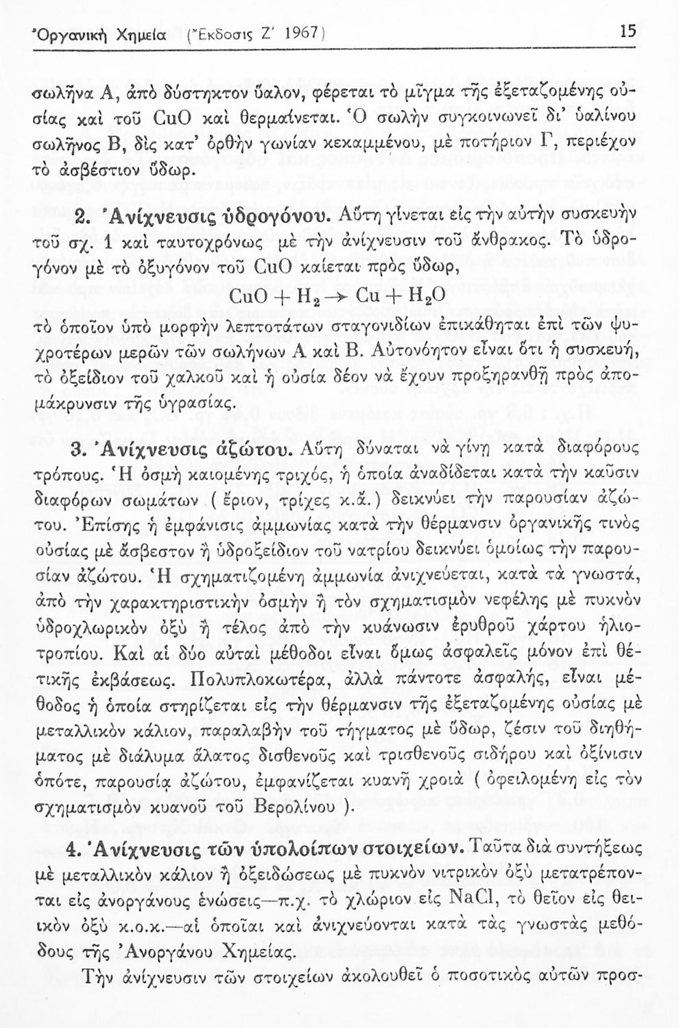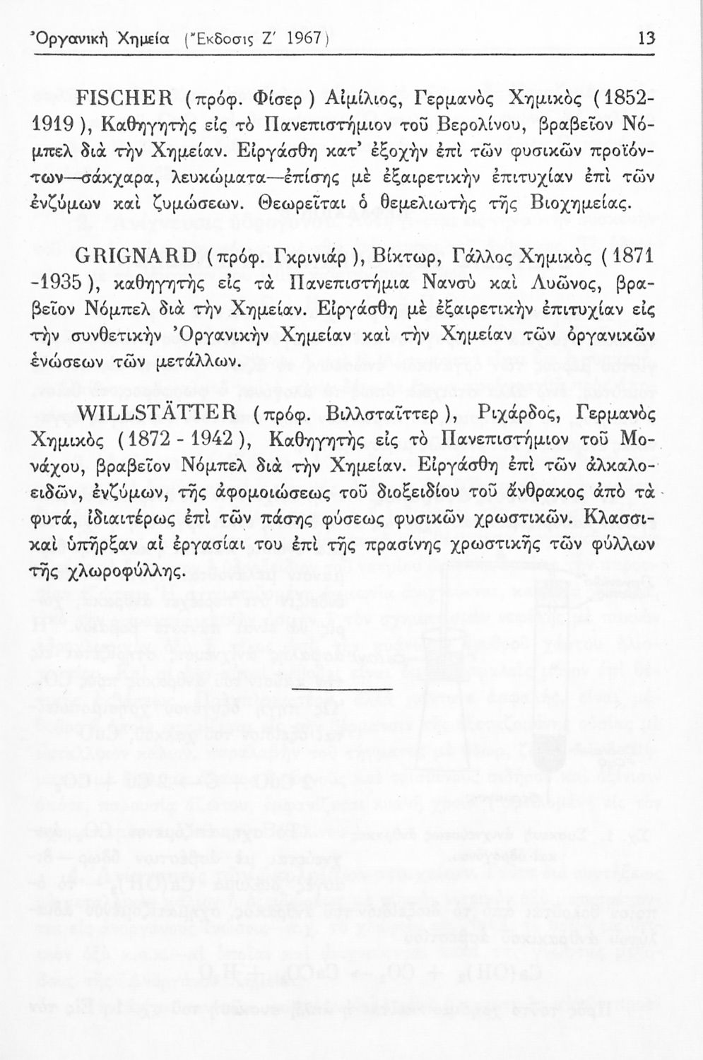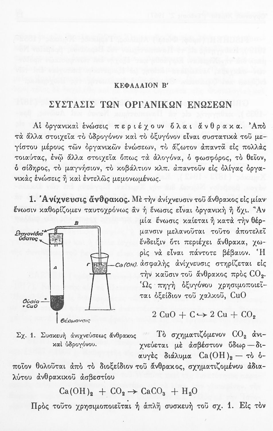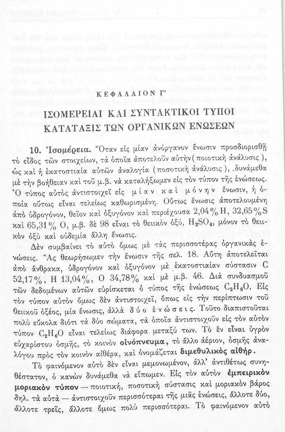 Βαθμίδα εκπαίδευσης: Δευτεροβάθμια Τάξη: Γ' Λυκείου Μάθημα: Χημεία Γλώσσα: Απλή καθαρεύουσα Παρουσίαση περιεχομένου: Σχολικό εγχειρίδιο Χημείας για τους μαθητές της Γ΄ Λυκείου. Το βιβλίο εισάγει τους μαθητές στην οργανική χημεία, εξετάζει τις οργανικές ενώσεις του άνθρακα τις πρωτεΐνες και τα οξέα. Κλείνει παρουσιάζοντας εφαρμογές των χημικών ενώσεων σε καθημερινά προϊόντα όπως είναι οι συνθετικές υφαντικές ύλες και τα πλαστικά. |