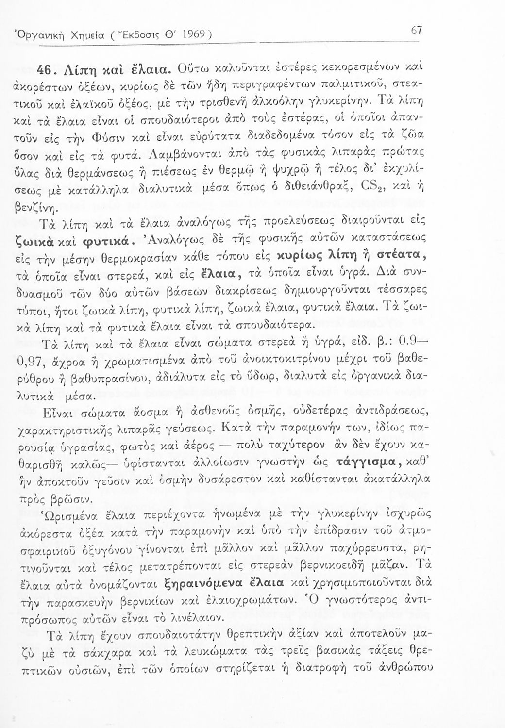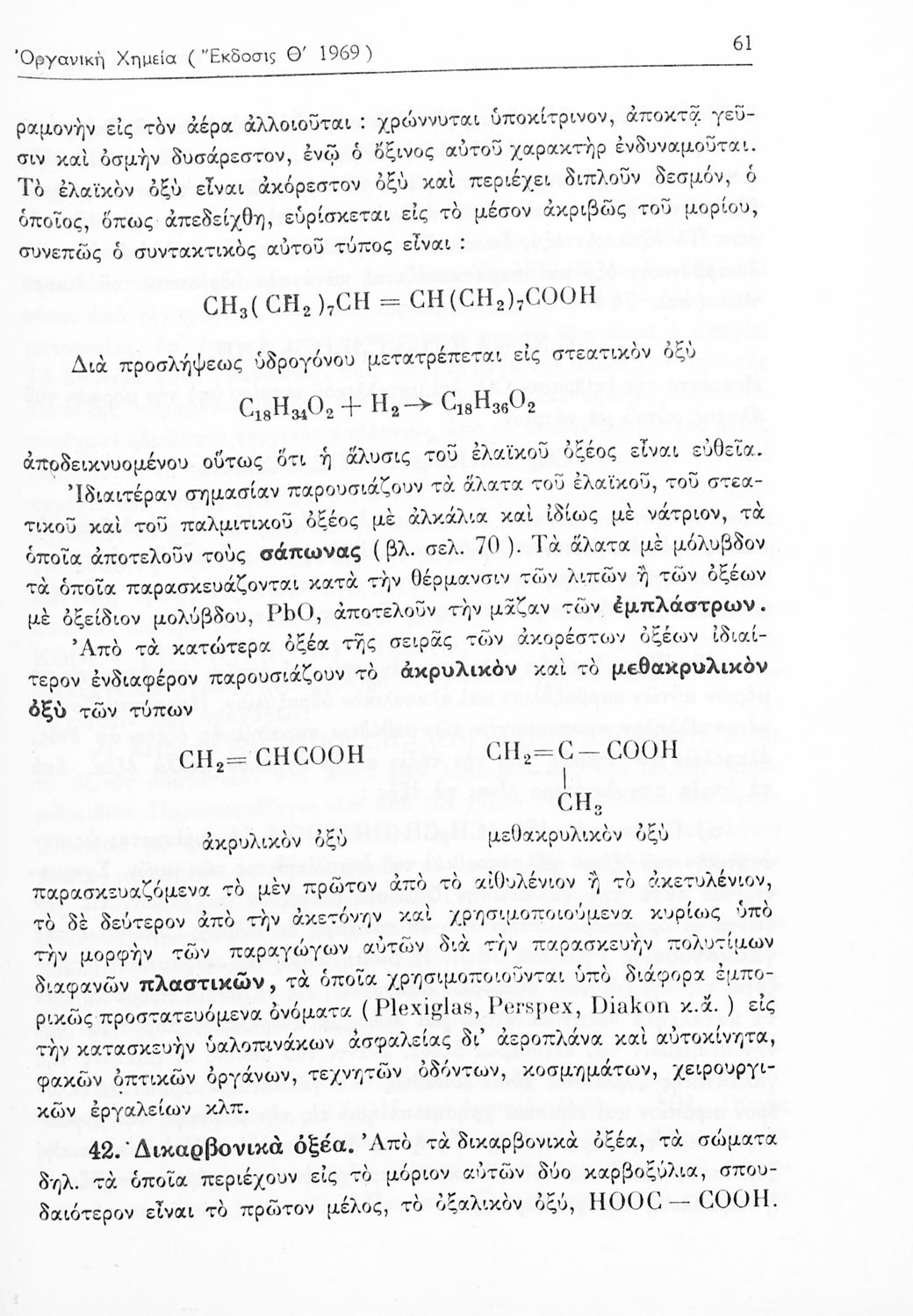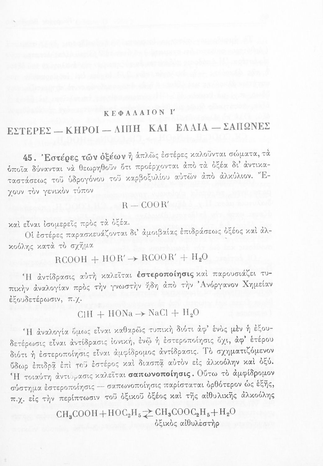 Σχολικό εγχειρίδιο Χημείας που προσδιορίζει τη σύσταση οργανικών ουσιών και τη μοριακή σύσταση τους. Περιγράφονται αναλυτικά οι οργανικές ενώσεις, οι ιδιότητες και η παρασκευή των οξέων-ελαίων-λιπών, η σύσταση