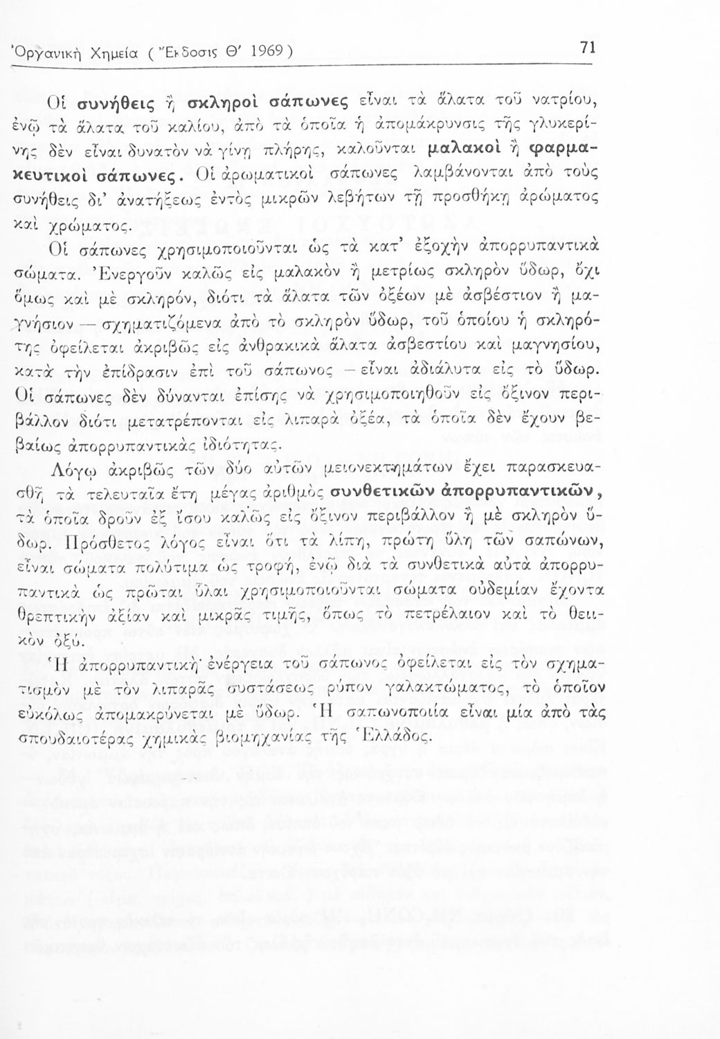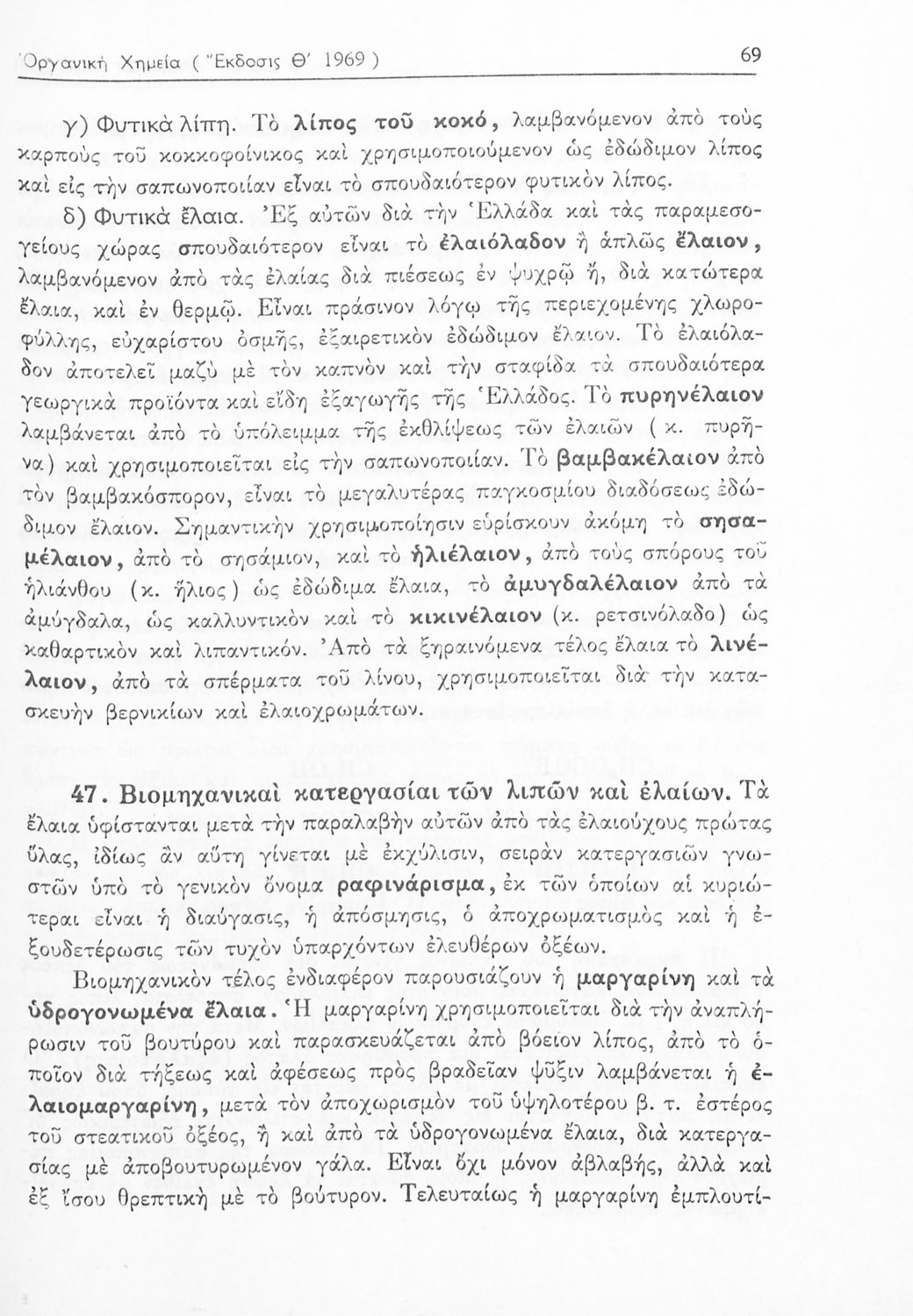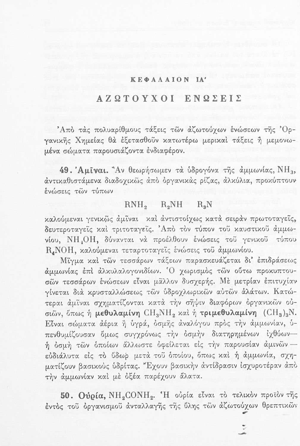 Σχολικό εγχειρίδιο Χημείας που προσδιορίζει τη σύσταση οργανικών ουσιών και τη μοριακή σύσταση τους. Περιγράφονται αναλυτικά οι οργανικές ενώσεις, οι ιδιότητες και η παρασκευή των οξέων-ελαίων-λιπών, η σύσταση