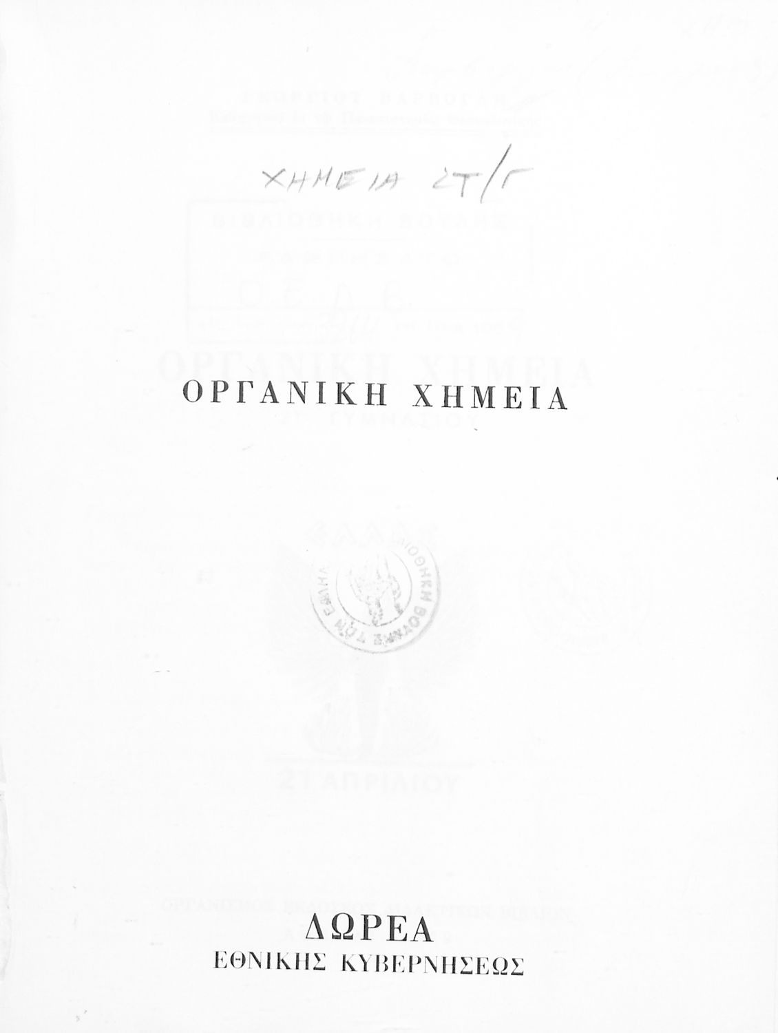 Σχολικό εγχειρίδιο για την ΣΤ΄ Γυμνασίου για το μάθημα της Χημείας. Το εγχειρίδιο περιλαμβάνει το σύνολο της οργανικής χημείας και πιο συγκεκριμένα, την σύσταση των οργανικών ενώσεων, τους κορεσμένους και ακόρεστους υδρογονάνθρακες, τα οξέα, τις πρωτεΐνες, τα αλκαλοειδή, τις εφαρμογές στην καθημερινότητα κ.α.