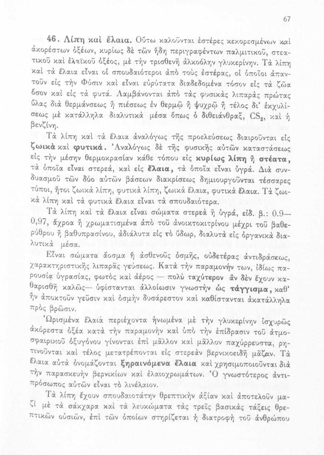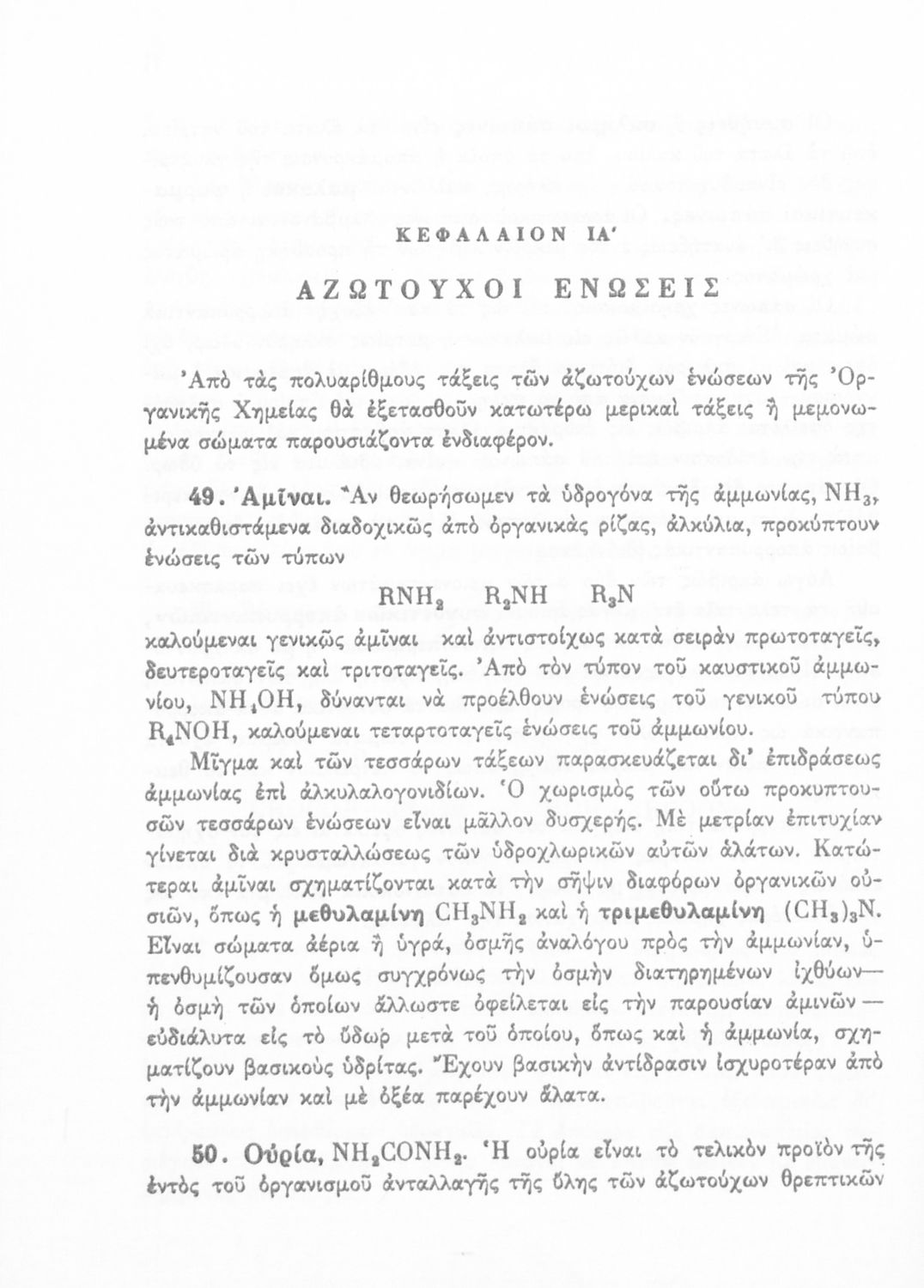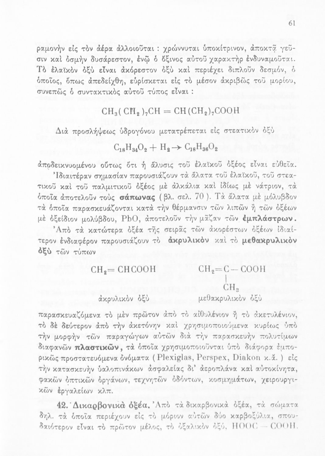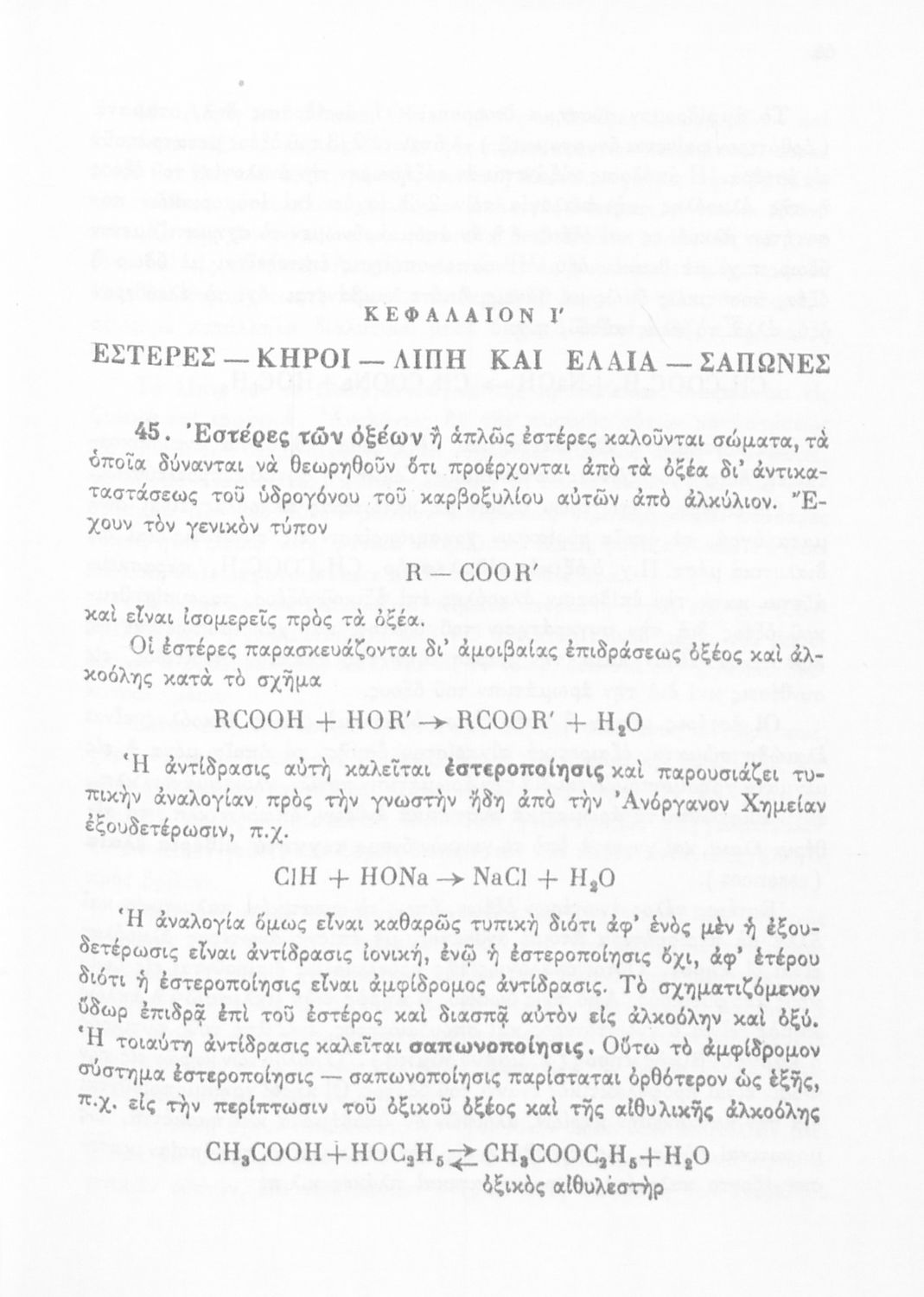 Σχολικό εγχειρίδιο Χημείας που προσδιορίζει τη σύσταση οργανικών ουσιών και τη μοριακή σύσταση τους. Περιγράφονται αναλυτικά οι οργανικές ενώσεις, οι ιδιότητες και η παρασκευή των οξέων-ελαίων-λιπών, η σύσταση