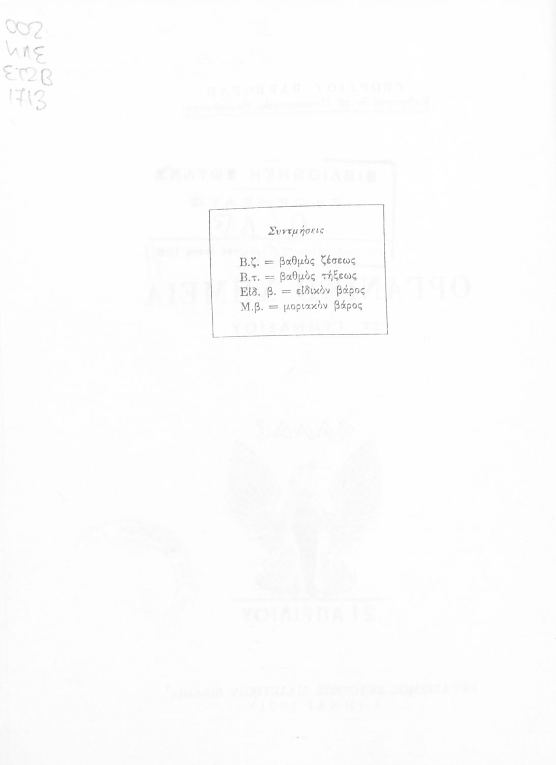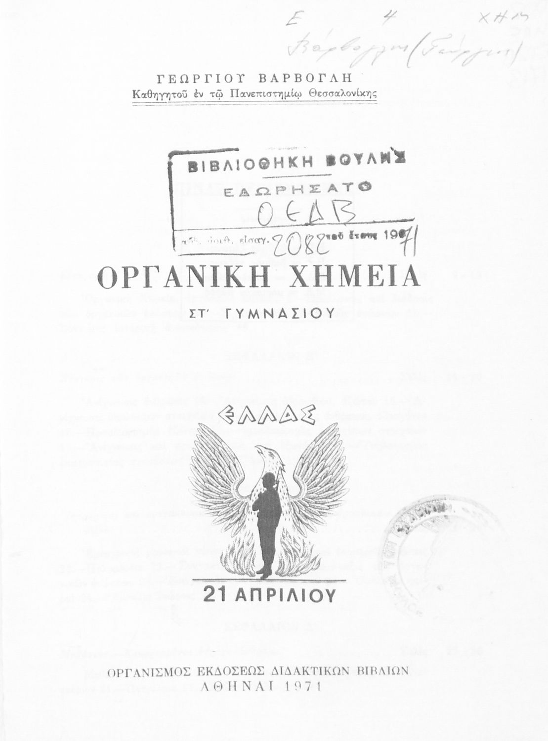 Εκδότης: Οργανισμός Εκδόσεως Διδακτικών Βιβλίων Έτος έκδοσης: 1971 Τόπος έκδοσης: Αθήνα Έκδοση: 11η Υπουργική απόφαση / Σύμβαση: 2113/ 10-4-1971 Έτος έγκρισης: 1971 |