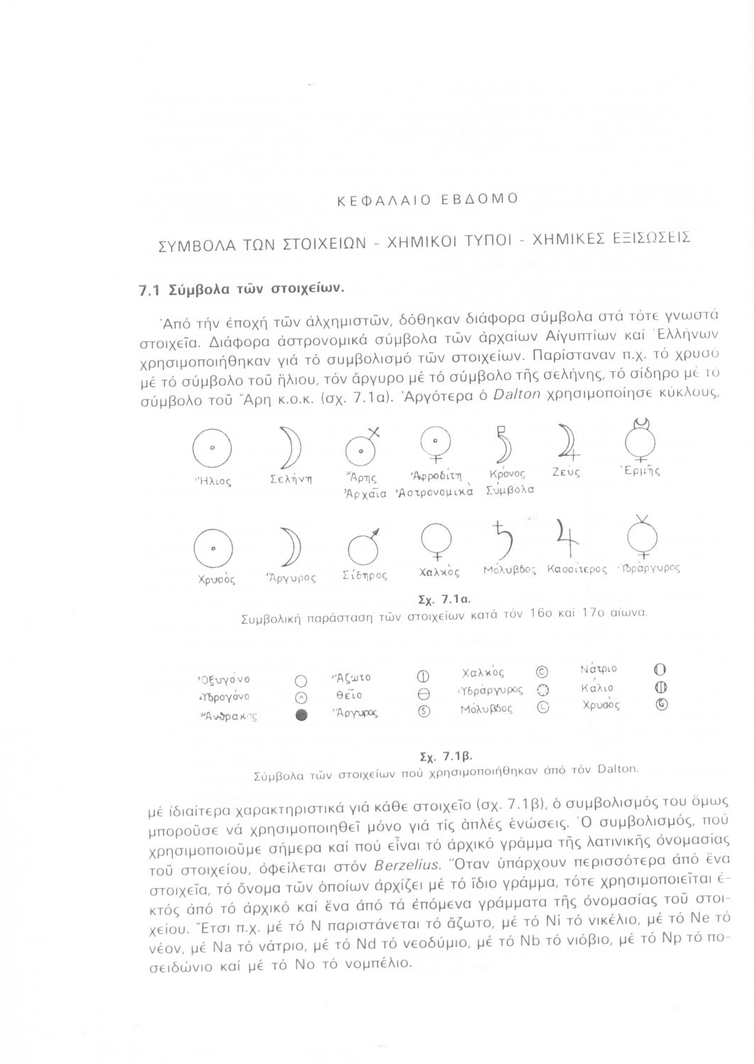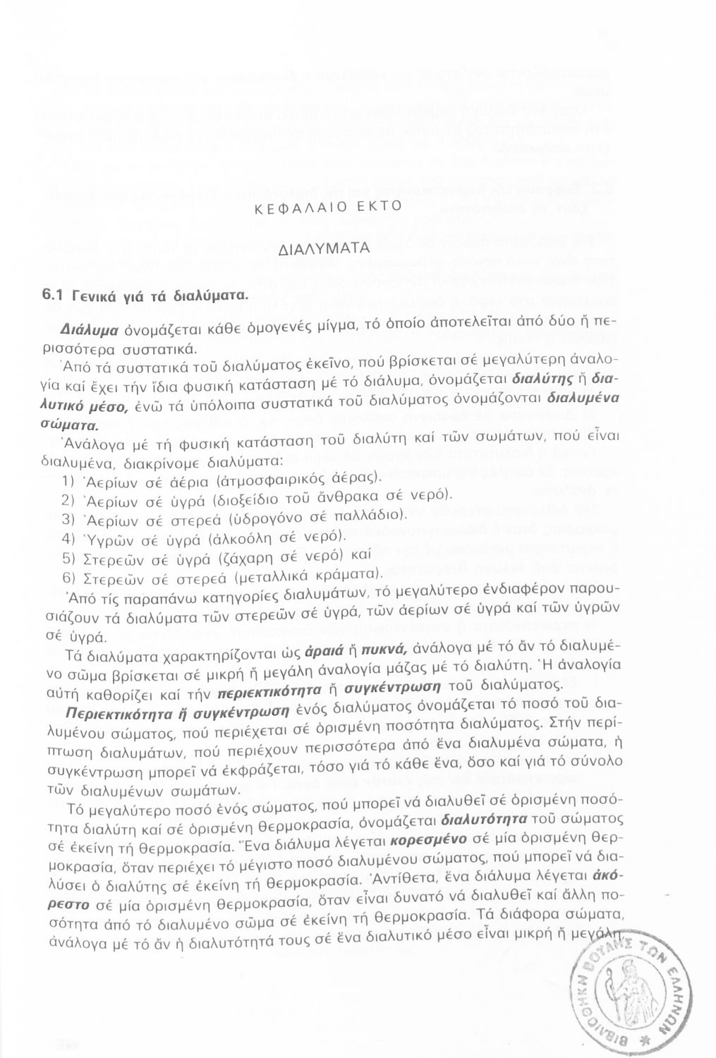 Σχολικό εγχειρίδιο Χημείας Α΄ και Β΄ Λυκείου που περιλαμβάνει εισαγωγή στις έννοιες της Χημείας (ύλη, νόμοι χημείας, χημικές αντιδράσεις, εξισώσεις, ενώσεις), αναλυτική περιγραφή στοιχείων και των ενώσεών τους.