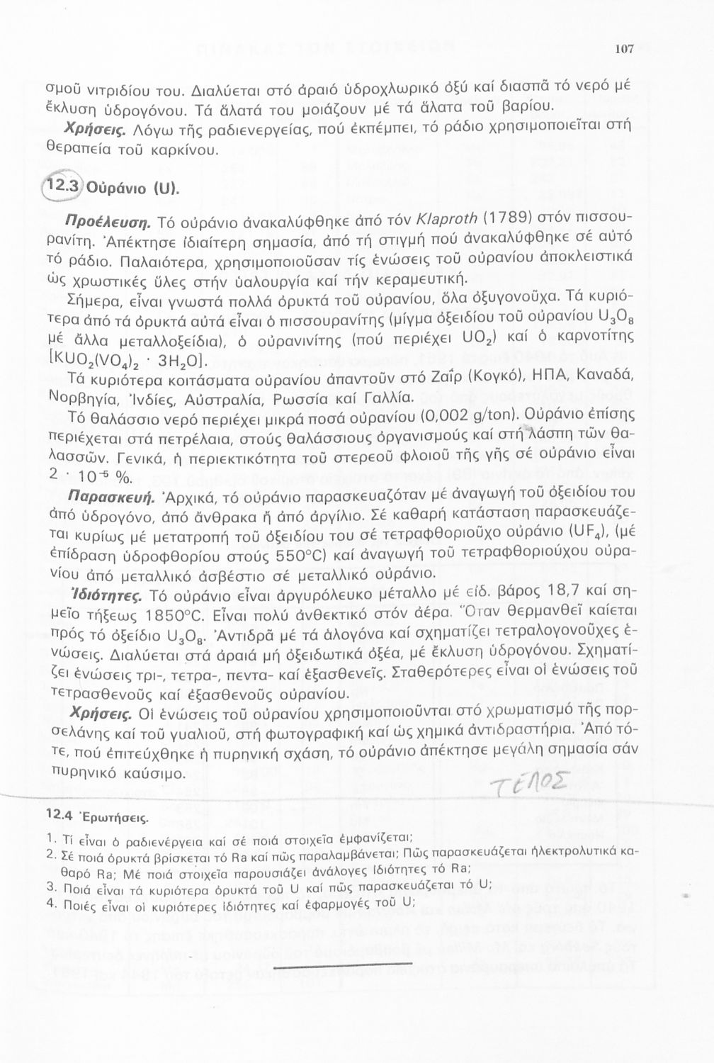 Σχολικό εγχειρίδιο Χημείας Α΄ και Β΄ Λυκείου που περιλαμβάνει εισαγωγή στις έννοιες της Χημείας (ύλη, νόμοι χημείας, χημικές αντιδράσεις, εξισώσεις, ενώσεις), αναλυτική περιγραφή στοιχείων και των ενώσεών τους.