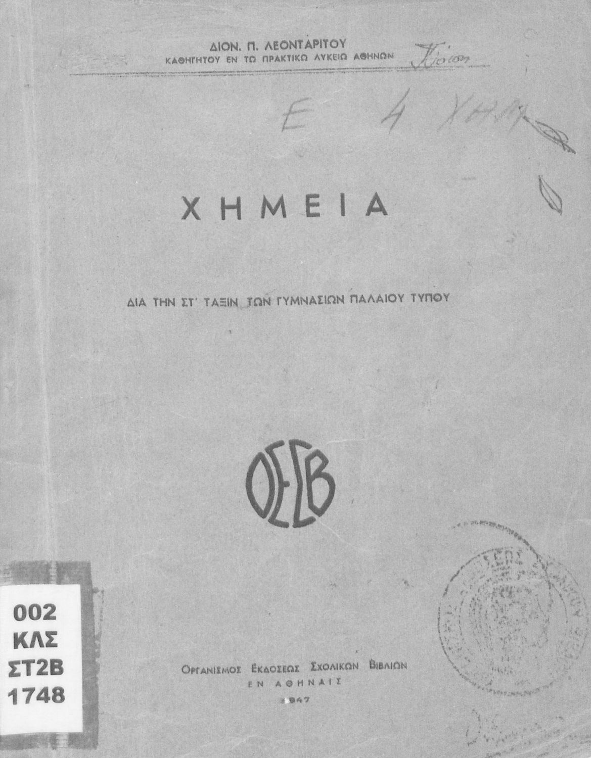 Εκδότης: Οργανισμός Εκδόσεως Σχολικών Βιβλίων Έτος έκδοσης: 1947 Τόπος έκδοσης: Αθήνα |