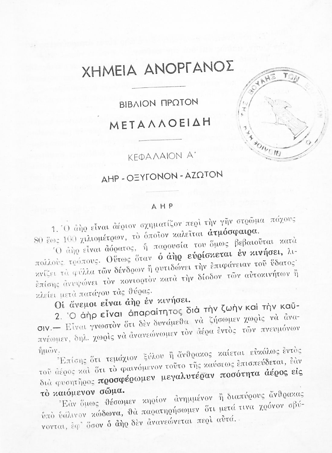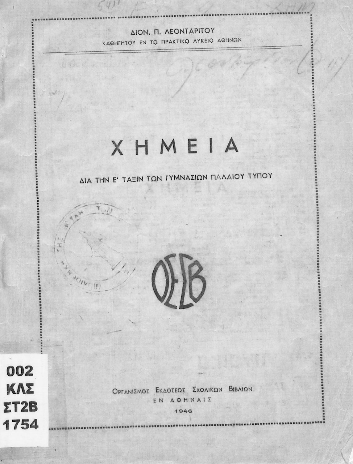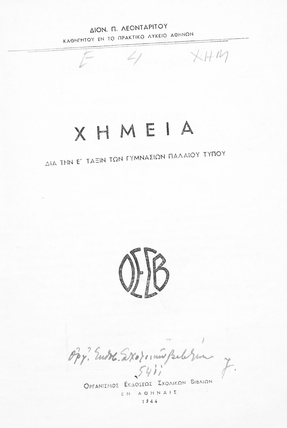 Χημεία. Δια την Ε' Τάξιν των Γυμνασίων Παλαιού Τύπου