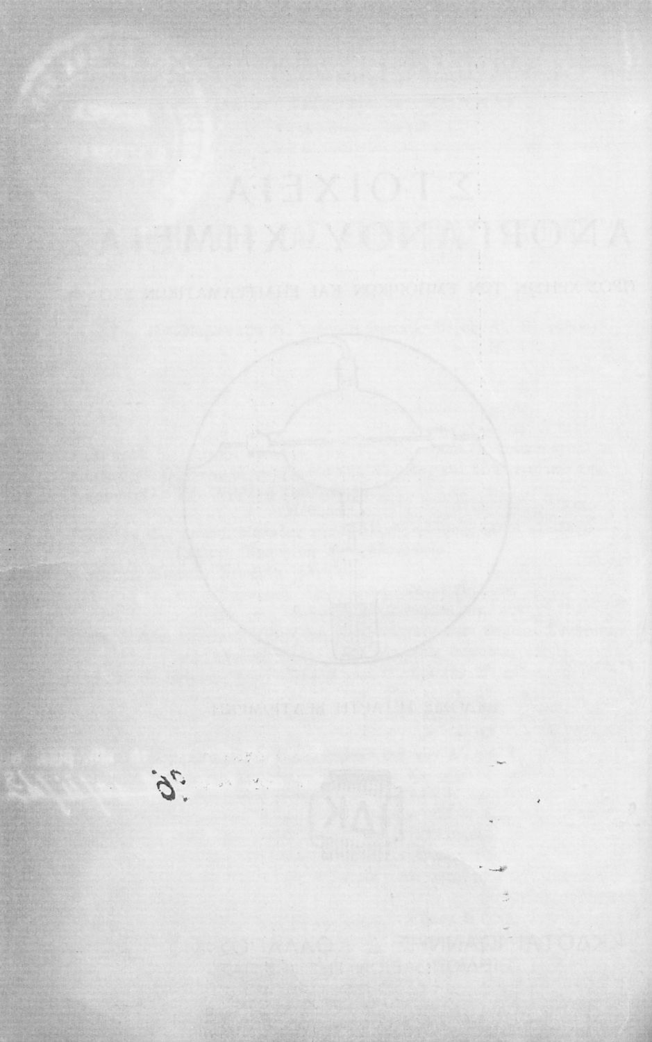 Σχολικό εγχειρίδιο Ανόργανης Χημείας για τους μαθητές των Εμπορικών και Επαγγελματικών Σχολών. Το βιβλίο είναι χωρισμένο σε τρία μέρη. Στο πρώτο μέρος εξετάζει τη δομή και τις ιδιότητες των μορίων και των ατόμων, για να συνεχίσει με τις ιδιότητες και τα χαρακτηριστικά των αμέταλλων. Το τρίτο μέρος, εξετάζει τις ενώσεις των μετάλλων.