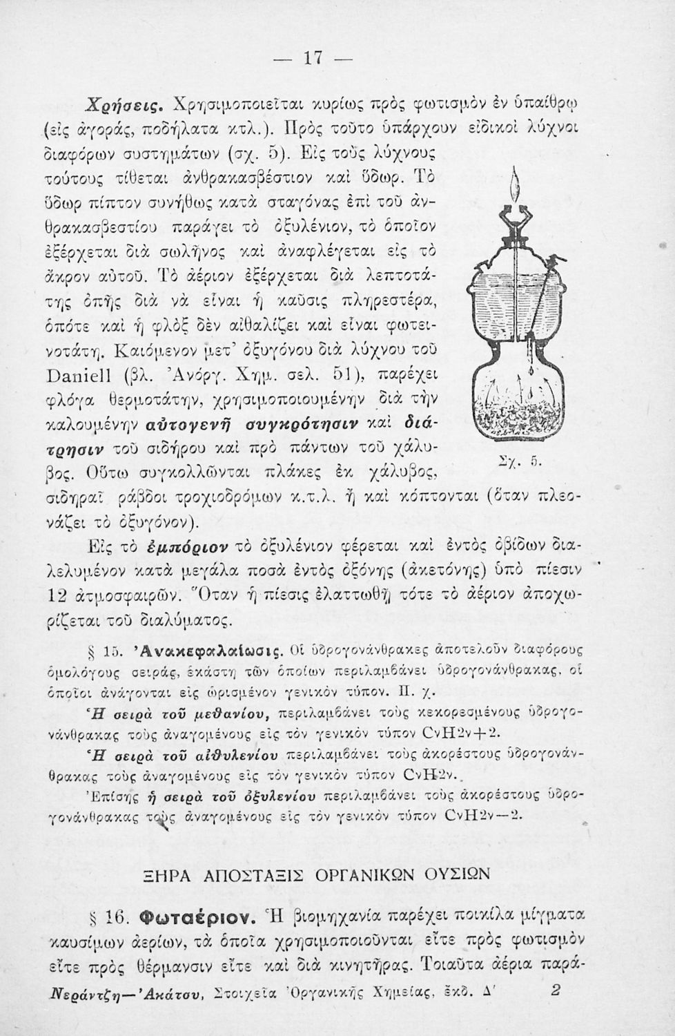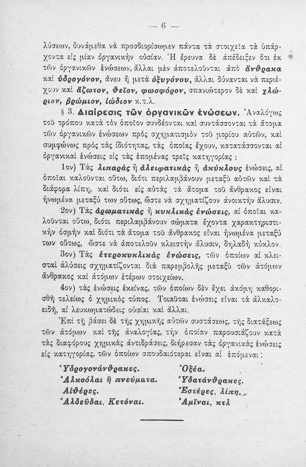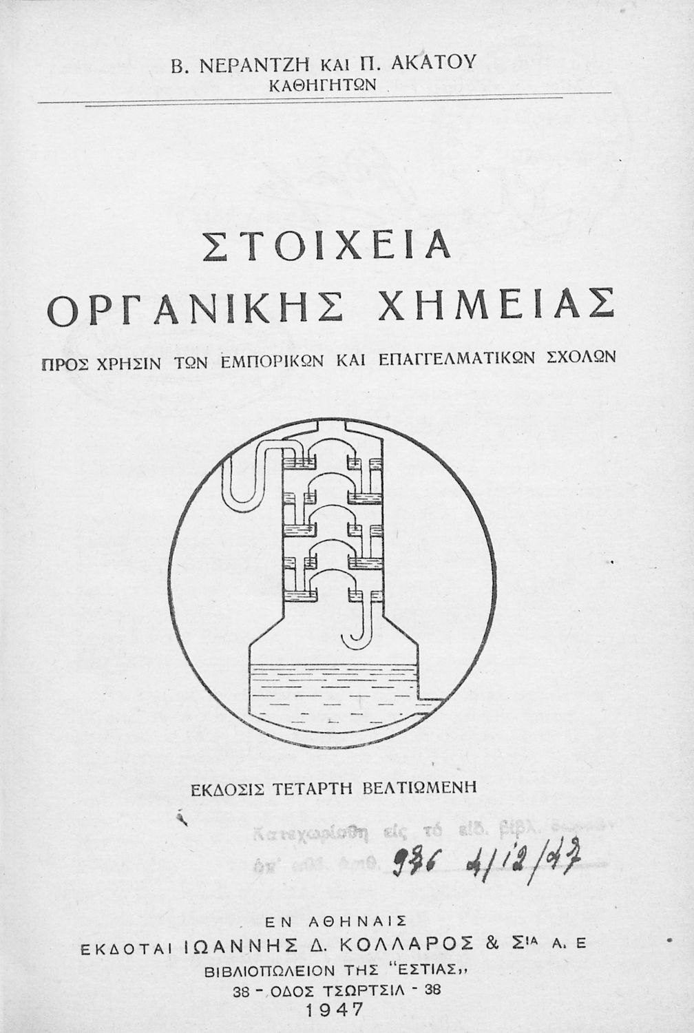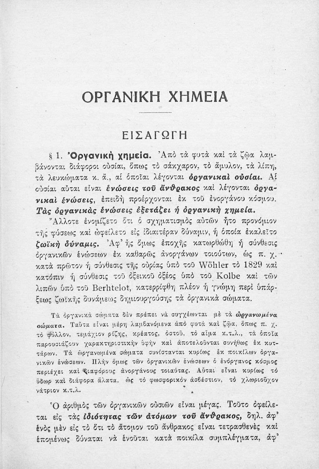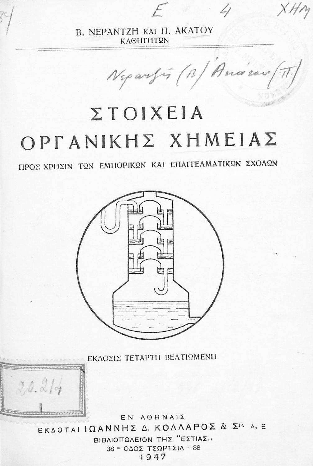 Βαθμίδα εκπαίδευσης: Δευτεροβάθμια Τάξη: Εμπορικές και Επαγγελματικές Σχολές Μάθημα: Χημεία Γλώσσα: Απλή καθαρεύουσα Παρουσίαση περιεχομένου: Σχολικό εγχειρίδιο Ανόργανης Χημείας για τους μαθητές των Εμπορικών και Επαγγελματικών Σχολών. Το βιβλίο είναι χωρισμένο σε τρία μέρη. Στο πρώτο μέρος εξετάζει τη δομή και τις ιδιότητες των μορίων και των ατόμων, για να συνεχίσει με τις ιδιότητες και τα χαρακτηριστικά των αμέταλλων. Το τρίτο μέρος, εξετάζει τις ενώσεις των μετάλλων. |