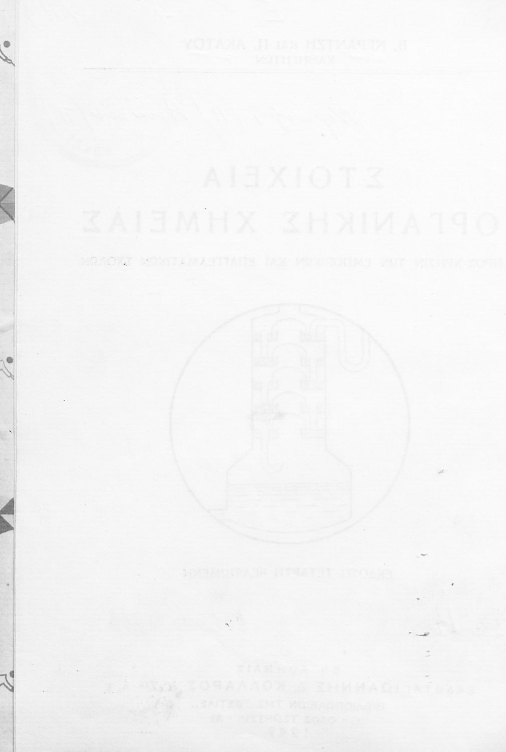 Σχολικό εγχειρίδιο Ανόργανης Χημείας για τους μαθητές των Εμπορικών και Επαγγελματικών Σχολών. Το βιβλίο είναι χωρισμένο σε τρία μέρη. Στο πρώτο μέρος εξετάζει τη δομή και τις ιδιότητες των μορίων και των ατόμων, για να συνεχίσει με τις ιδιότητες και τα χαρακτηριστικά των αμέταλλων. Το τρίτο μέρος, εξετάζει τις ενώσεις των μετάλλων.
