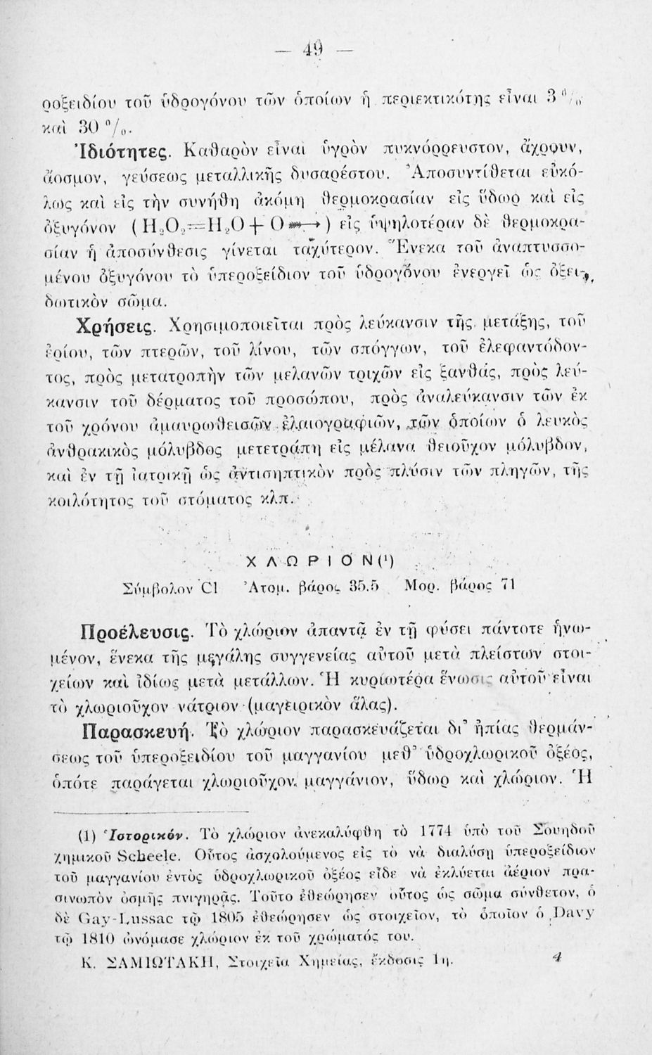 Στοιχεία χημείας δια την Γ΄, και Δ΄, τάξιν των τετραταξίων Γυμνασίων και τας αντιστοίχους τάξεις των λοιπών σχολείων της Μέσης Εκπαίδευσης