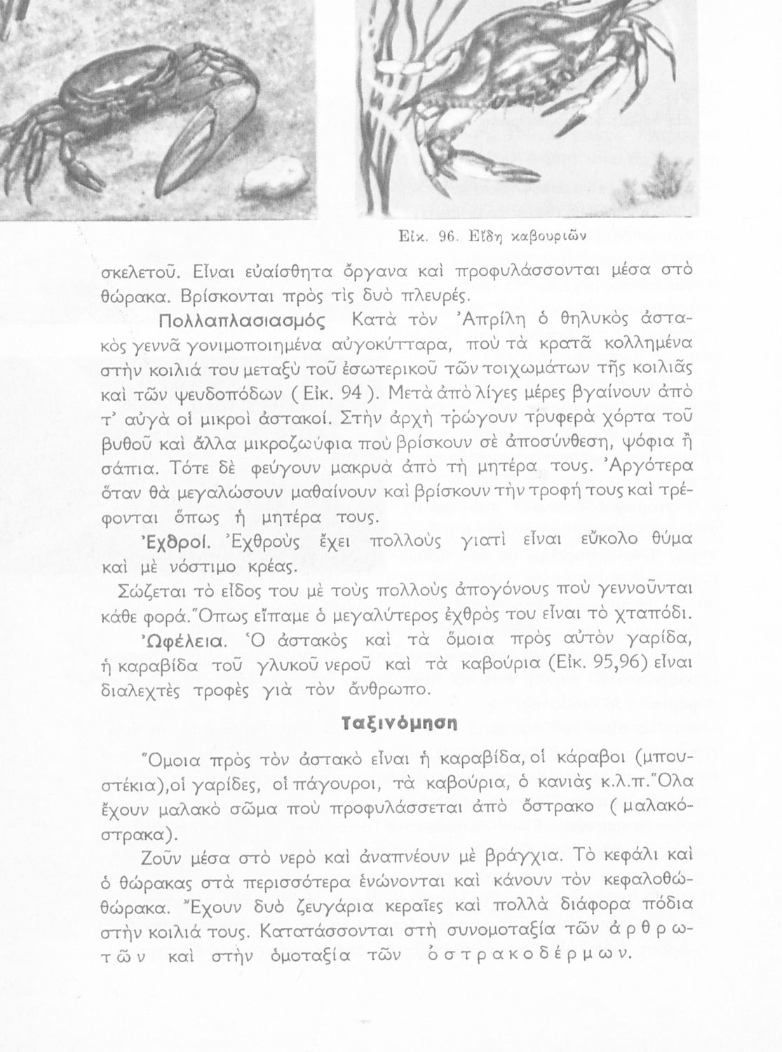 Σχολικό εγχειρίδιο Ζωολογίας/Φυτολογίας για τα Γυμνάσια και Αστικά Σχολεία που παρουσιάζει διάφορα ζώα και φυτά ανάλογα με τη συνομοταξία στην οποία ανήκουν.