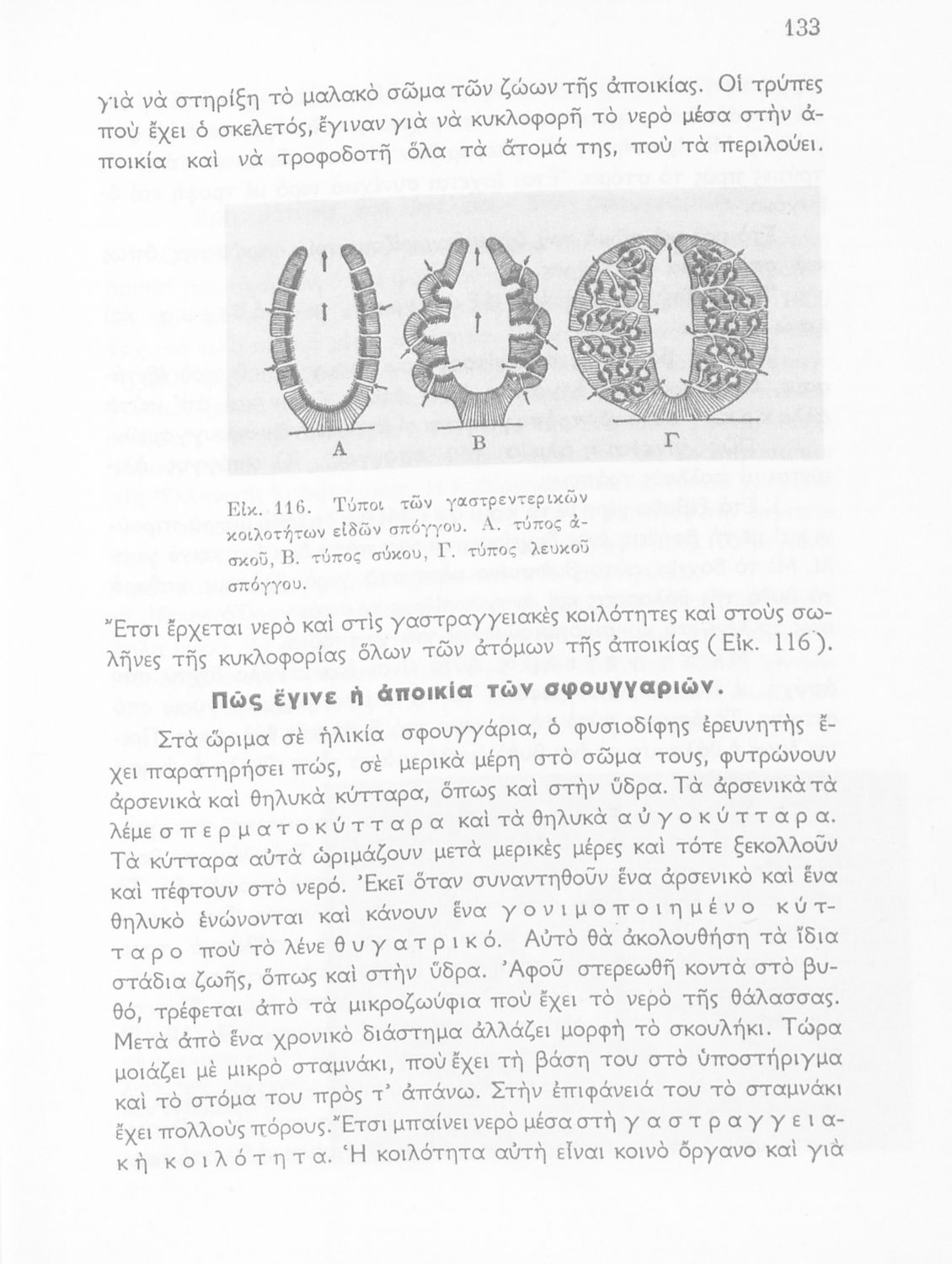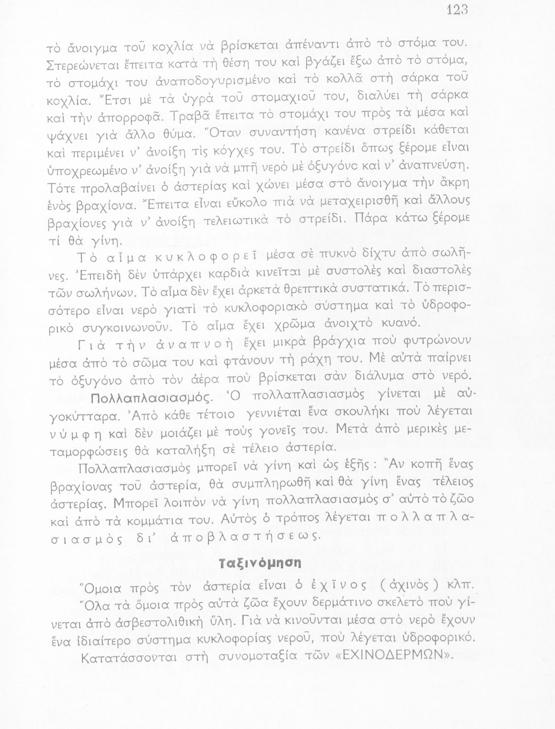 Σχολικό εγχειρίδιο Ζωολογίας/Φυτολογίας για τα Γυμνάσια και Αστικά Σχολεία που παρουσιάζει διάφορα ζώα και φυτά ανάλογα με τη συνομοταξία στην οποία ανήκουν.
