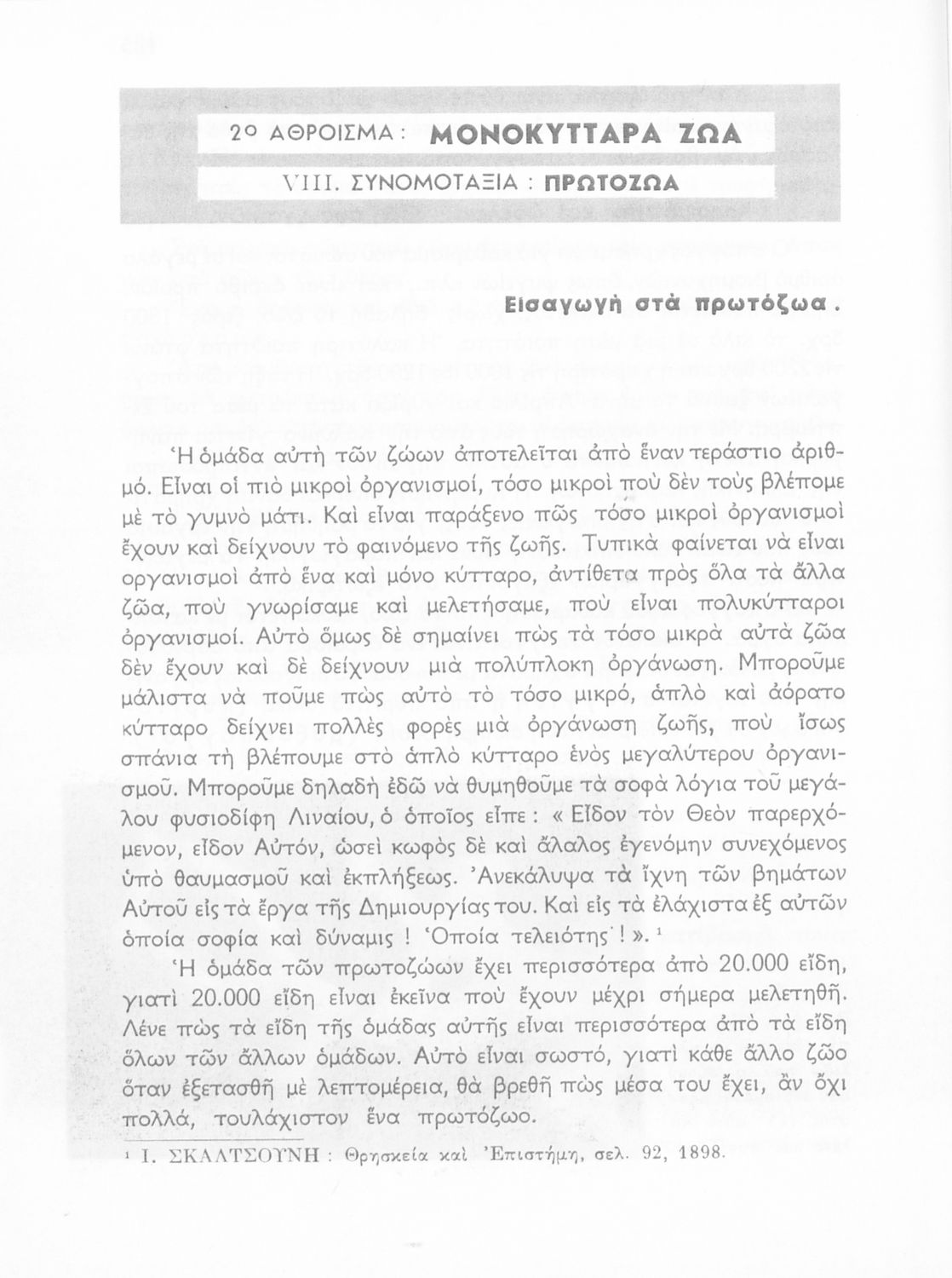 Σχολικό εγχειρίδιο Φυσικής Ιστορίας της Α' Τάξης των Γυμνασίων και Ημιγυμνασίων. Το βιβλίο χωρίζεται σε τρία κεφάλαια: ζωολογία, ορυκτολογία, φυτολογία.