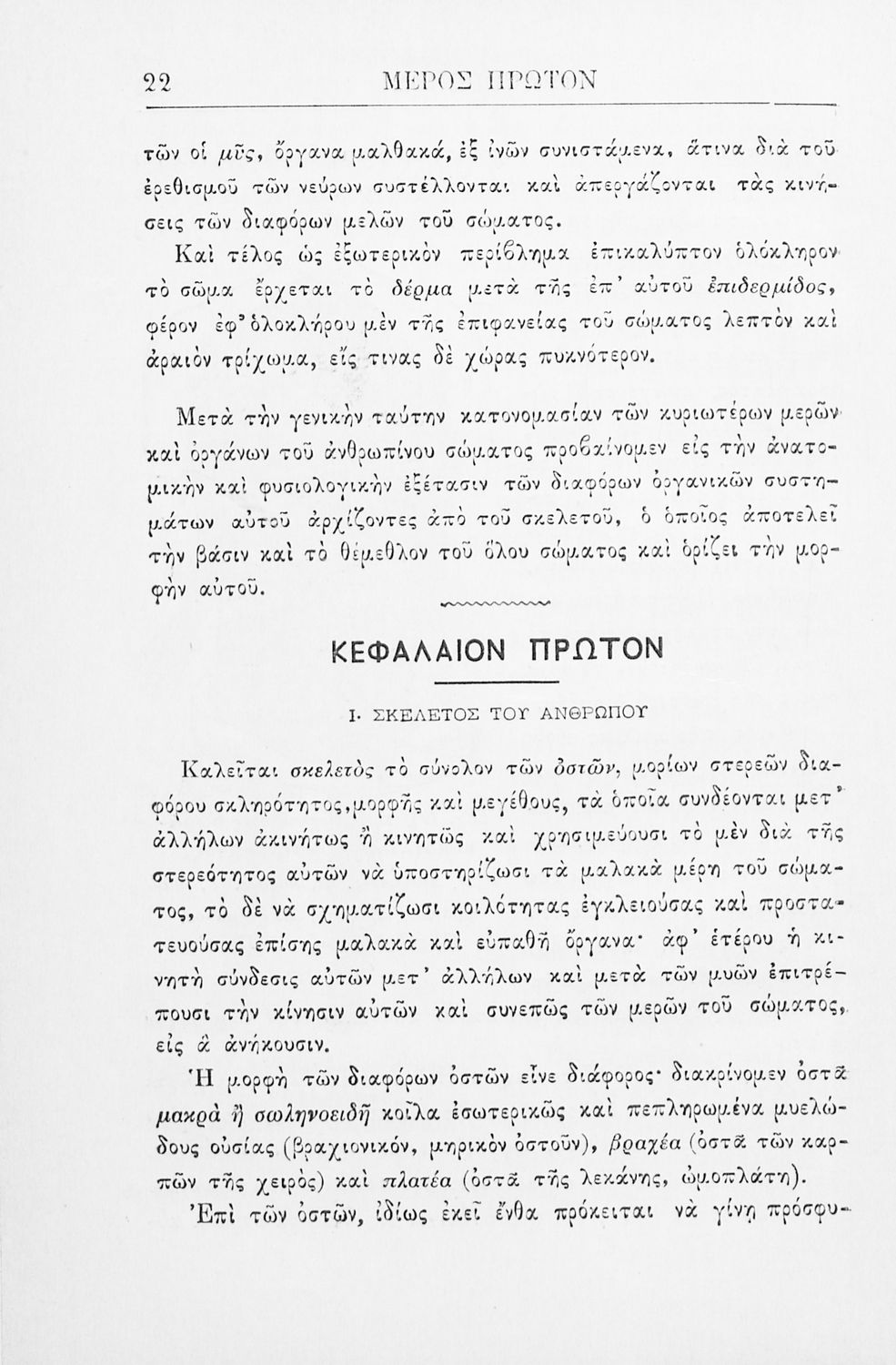 Σχολικό εγχειρίδιο Ζωολογίας των Γυμνασίων, Διδασκαλείων και Παρθεναγωγείων. Στο πρώτο μέρος του βιβλίου γίνεται μια συνοπτική παρουσίαση της δομής του ανθρώπινου σώματος και των διαφόρων συστημάτων του ...