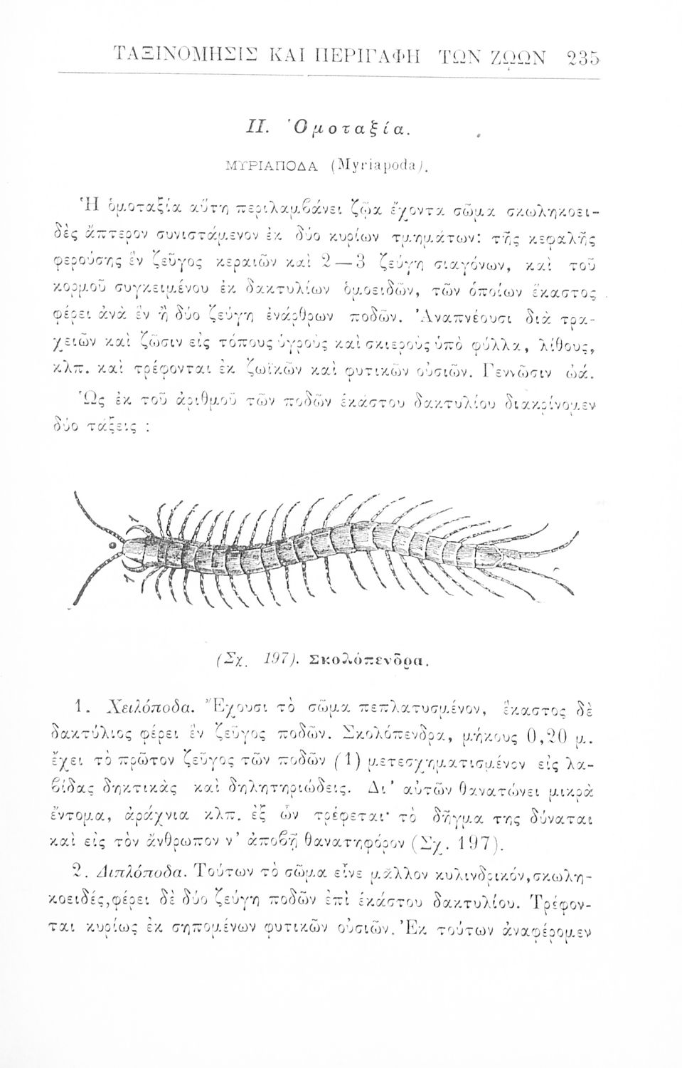 Σχολικό εγχειρίδιο Ζωολογίας για τα Γυμνάσια, τα Διδασκαλεία και τα Παρθεναγωγεία που εστιάζει στην ανθρώπινη φυσιολογία και ανατομία και παρουσιάζει τα διάφορα ζώα ανάλογα με την συνομοταξία στην οποία ανήκουν.