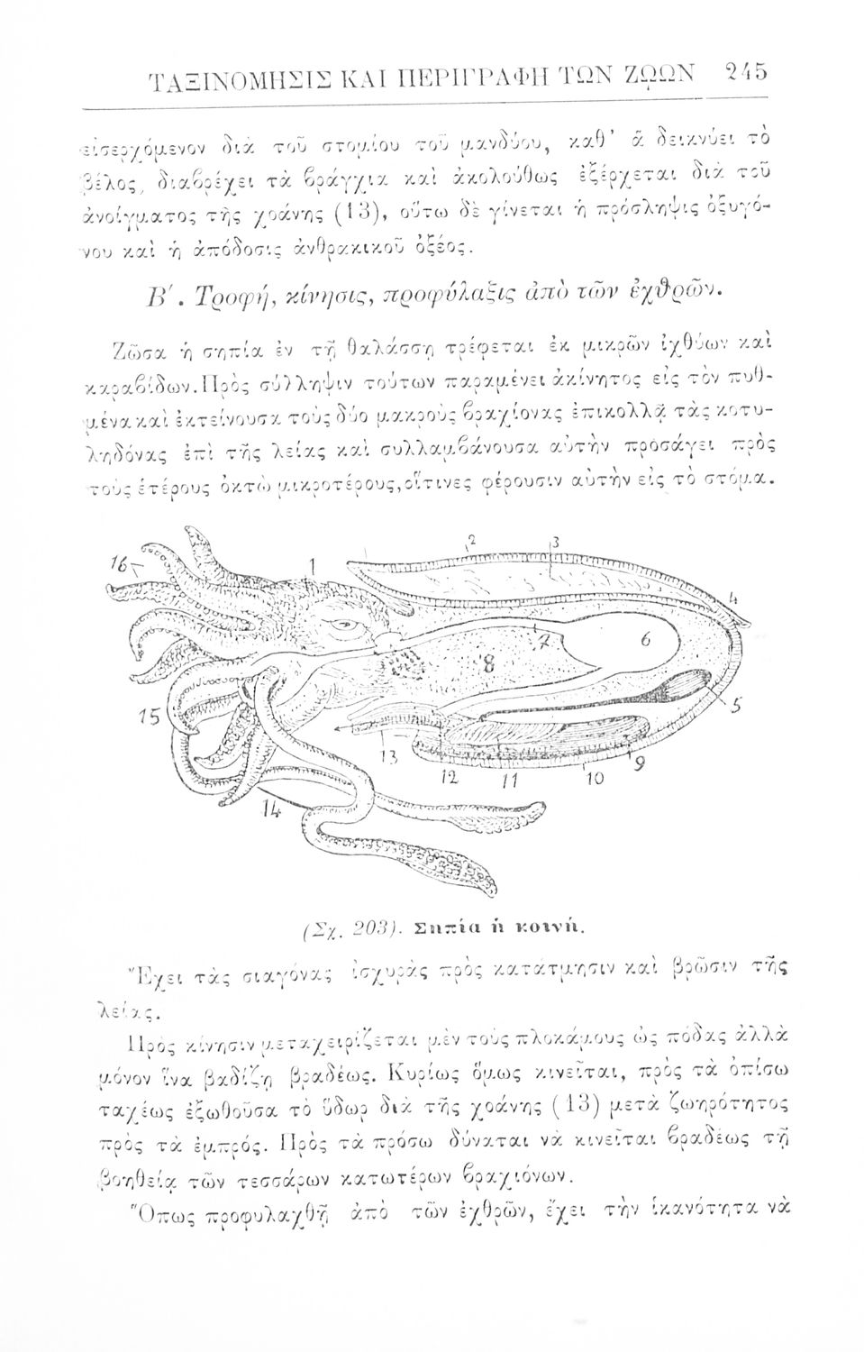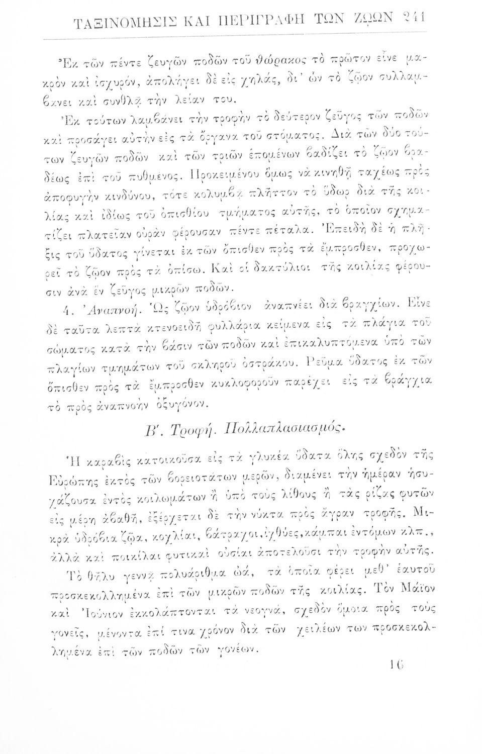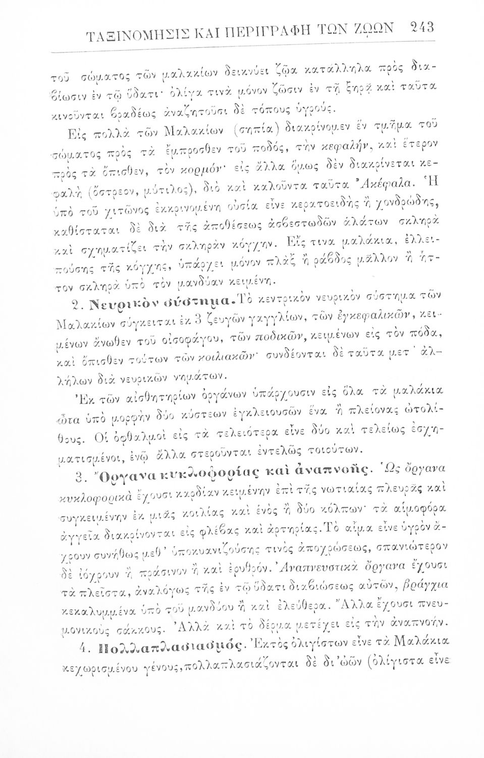 Σχολικό εγχειρίδιο Ζωολογίας για τα Γυμνάσια, τα Διδασκαλεία και τα Παρθεναγωγεία που εστιάζει στην ανθρώπινη φυσιολογία και ανατομία και παρουσιάζει τα διάφορα ζώα ανάλογα με την συνομοταξία στην οποία ανήκουν.