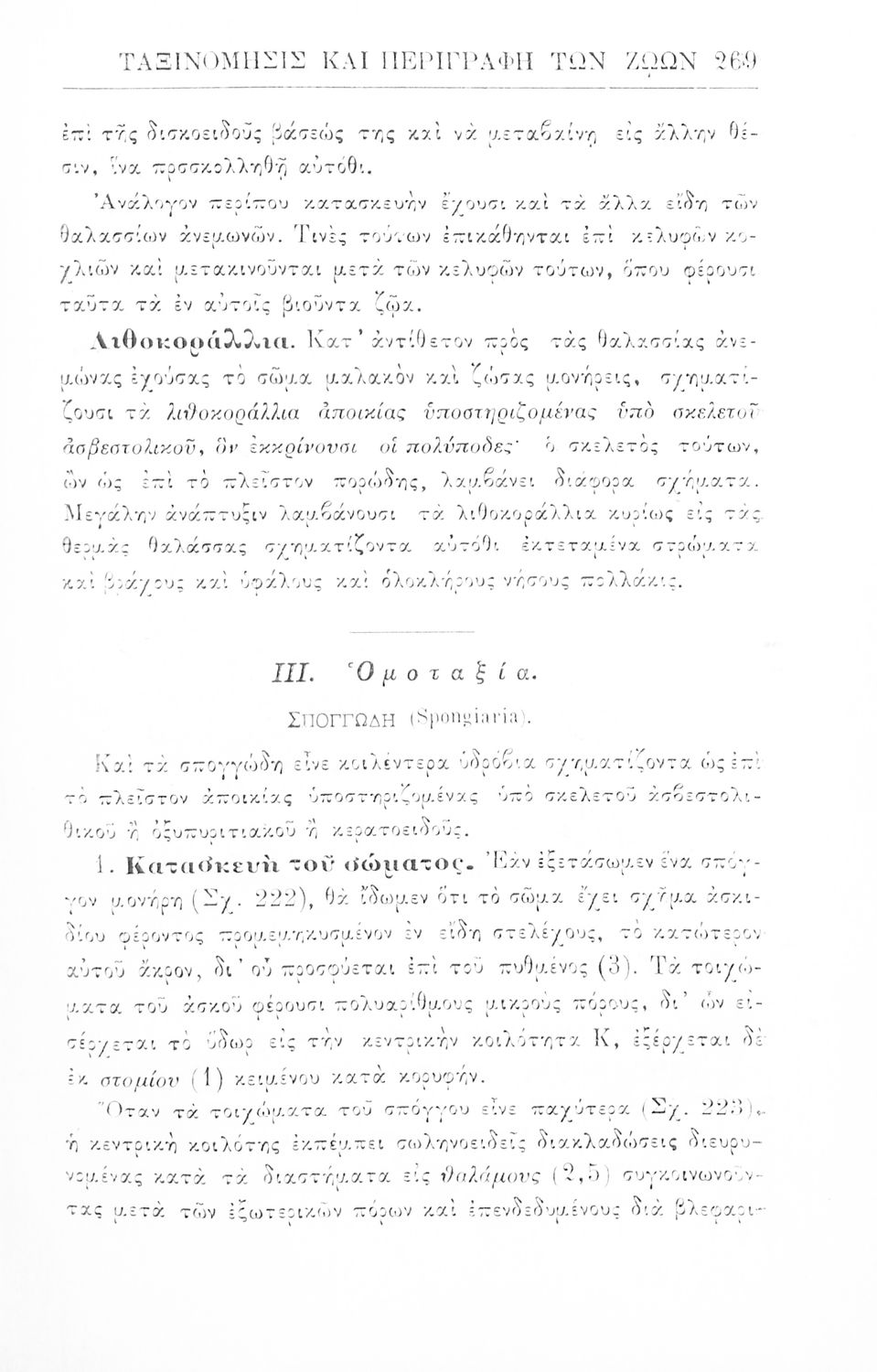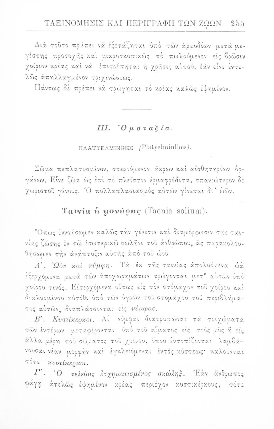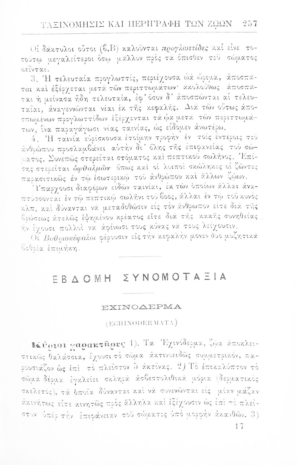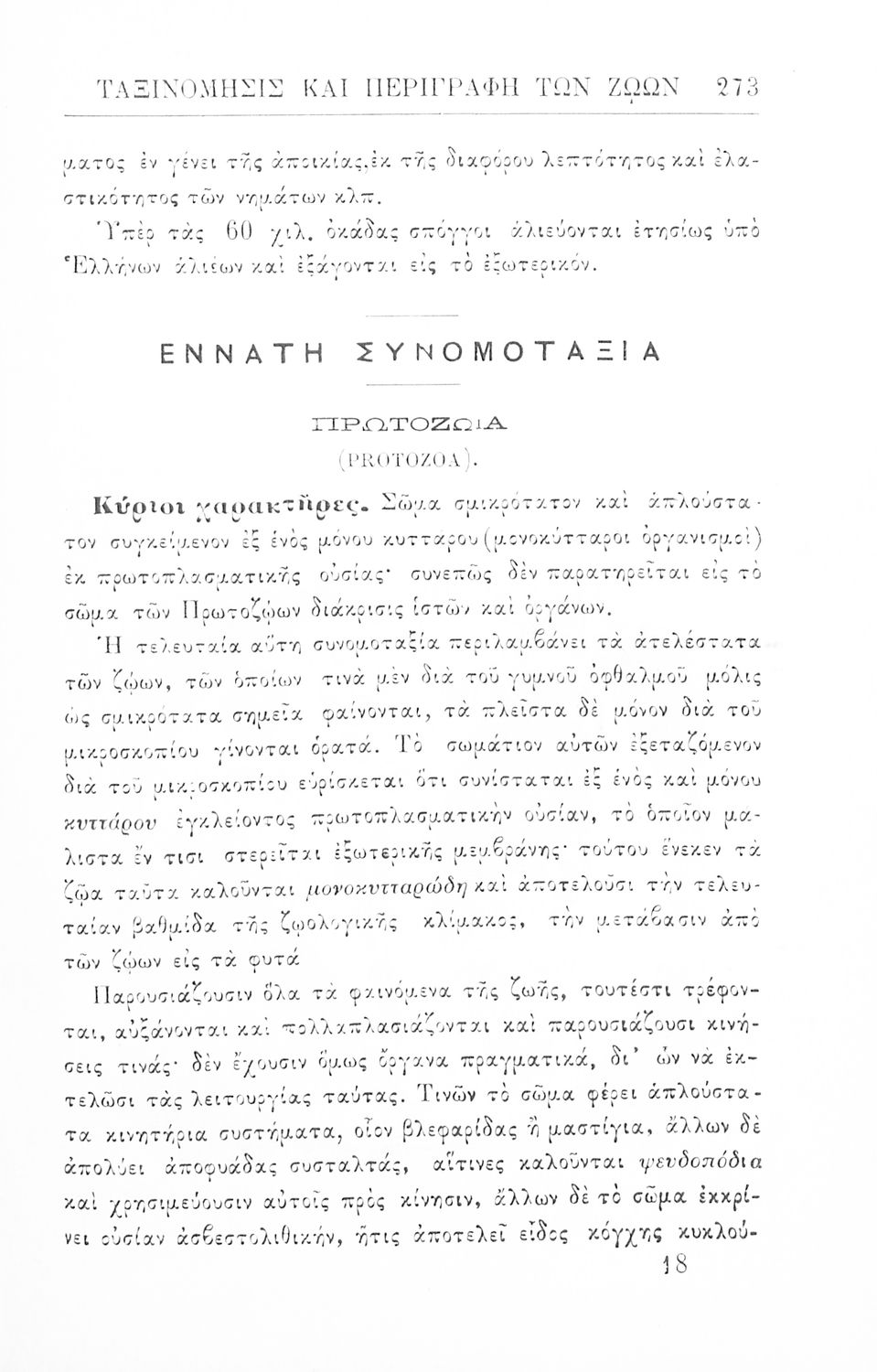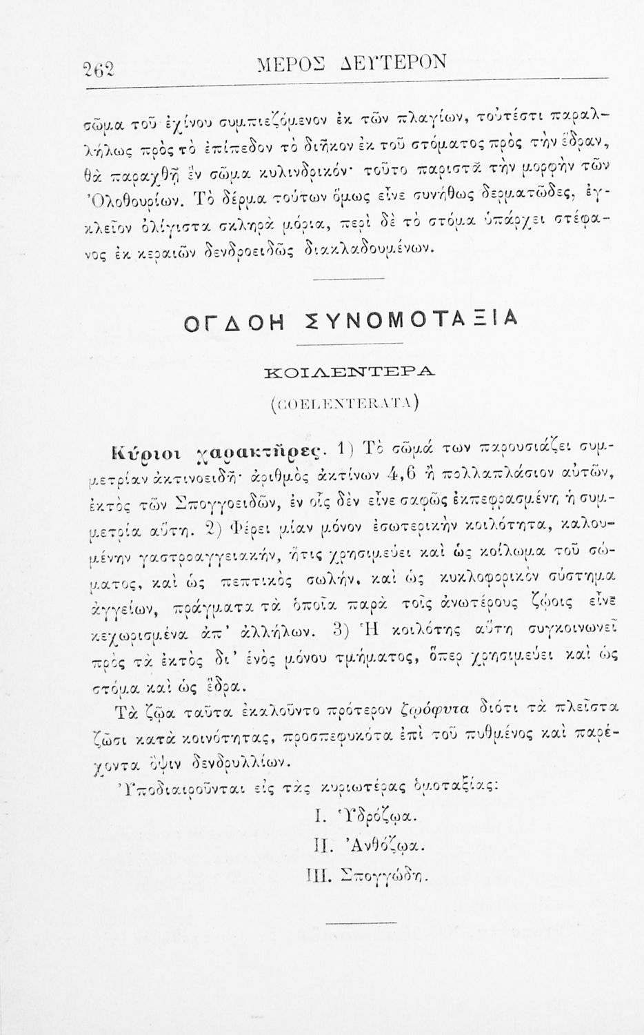 Σχολικό εγχειρίδιο Ζωολογίας για τα Γυμνάσια, τα Διδασκαλεία και τα Παρθεναγωγεία που εστιάζει στην ανθρώπινη φυσιολογία και ανατομία και παρουσιάζει τα διάφορα ζώα ανάλογα με την συνομοταξία στην οποία ανήκουν.