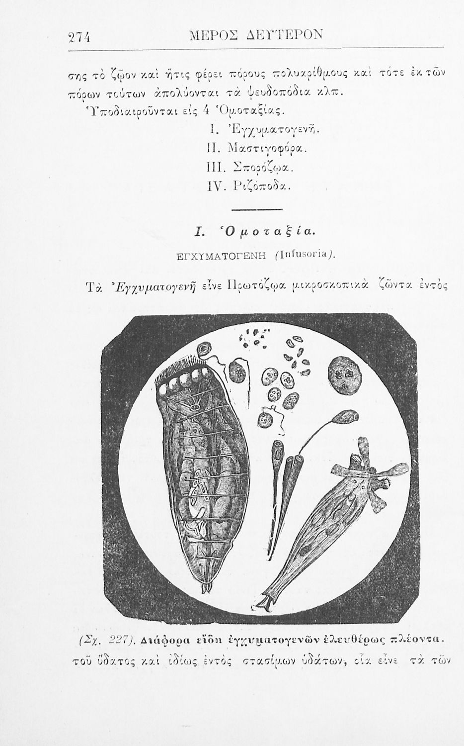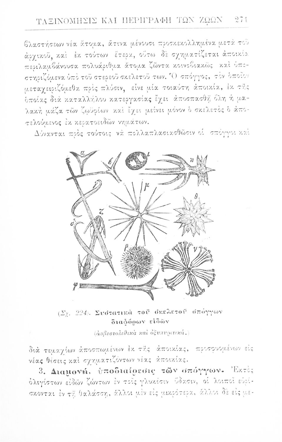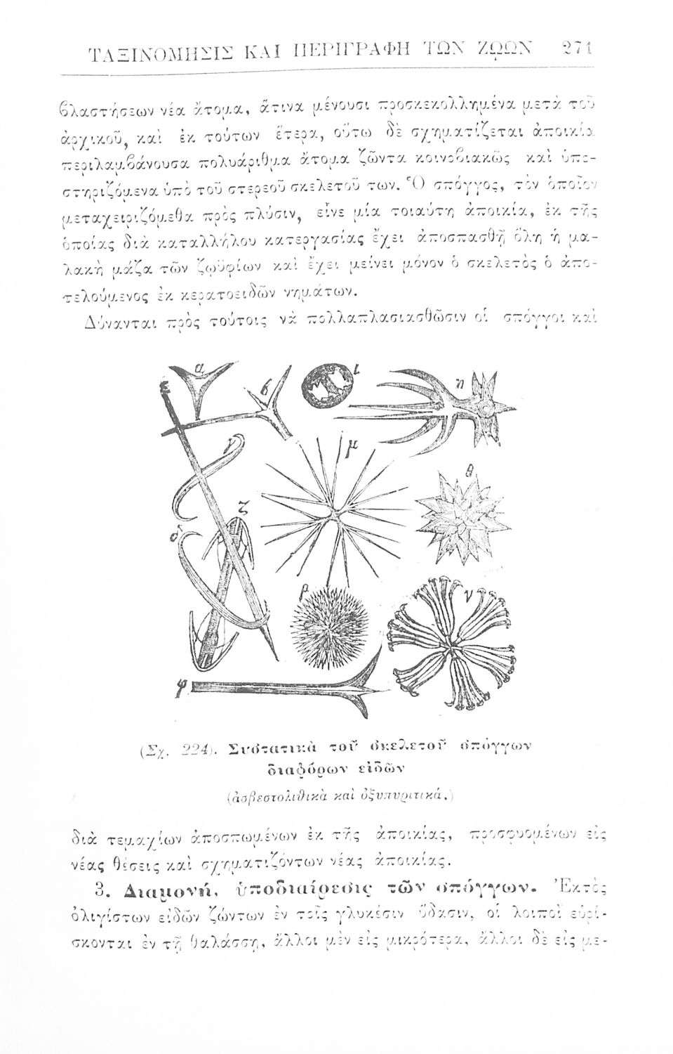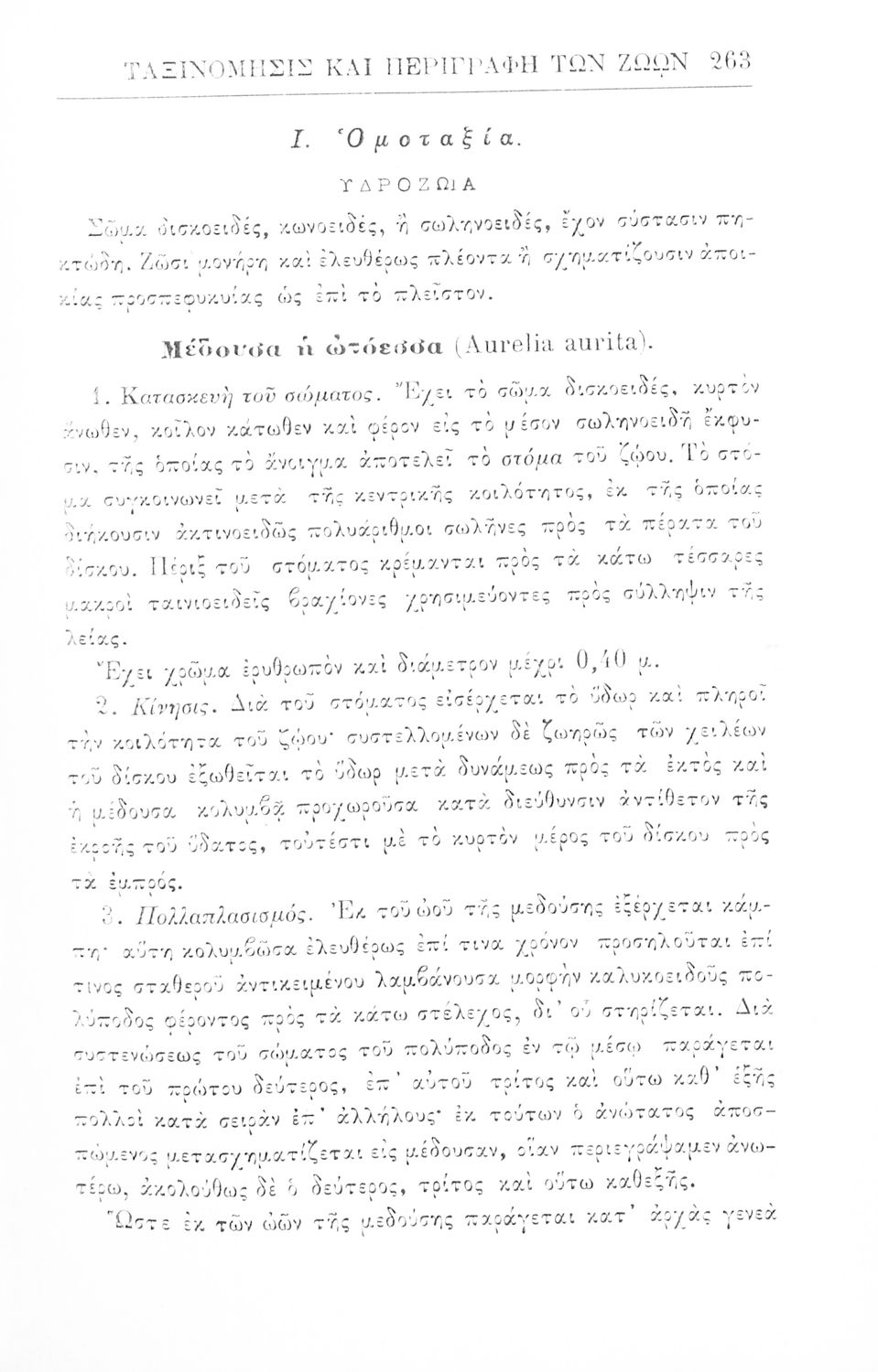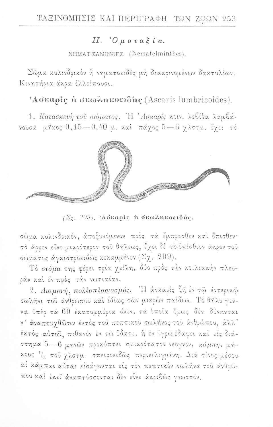 Σχολικό εγχειρίδιο Ζωολογίας για τα Γυμνάσια, τα Διδασκαλεία και τα Παρθεναγωγεία που εστιάζει στην ανθρώπινη φυσιολογία και ανατομία και παρουσιάζει τα διάφορα ζώα ανάλογα με την συνομοταξία στην οποία ανήκουν.