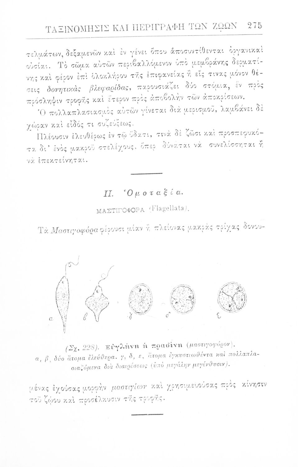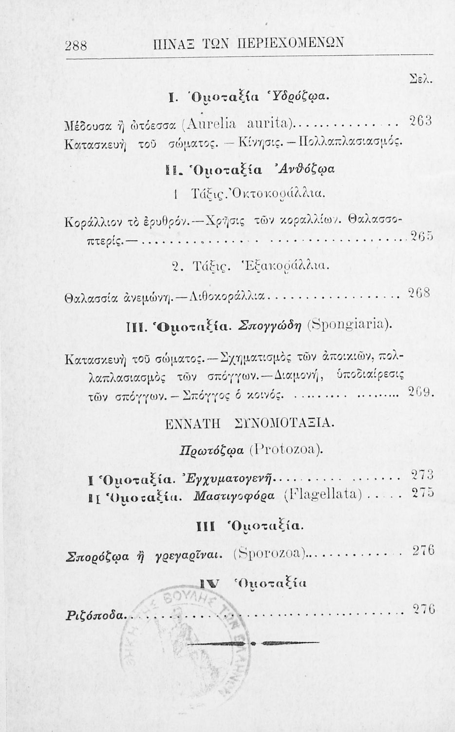 Σχολικό εγχειρίδιο Ζωολογίας για τα Γυμνάσια, τα Διδασκαλεία και τα Παρθεναγωγεία που εστιάζει στην ανθρώπινη φυσιολογία και ανατομία και παρουσιάζει τα διάφορα ζώα ανάλογα με την συνομοταξία στην οποία ανήκουν.