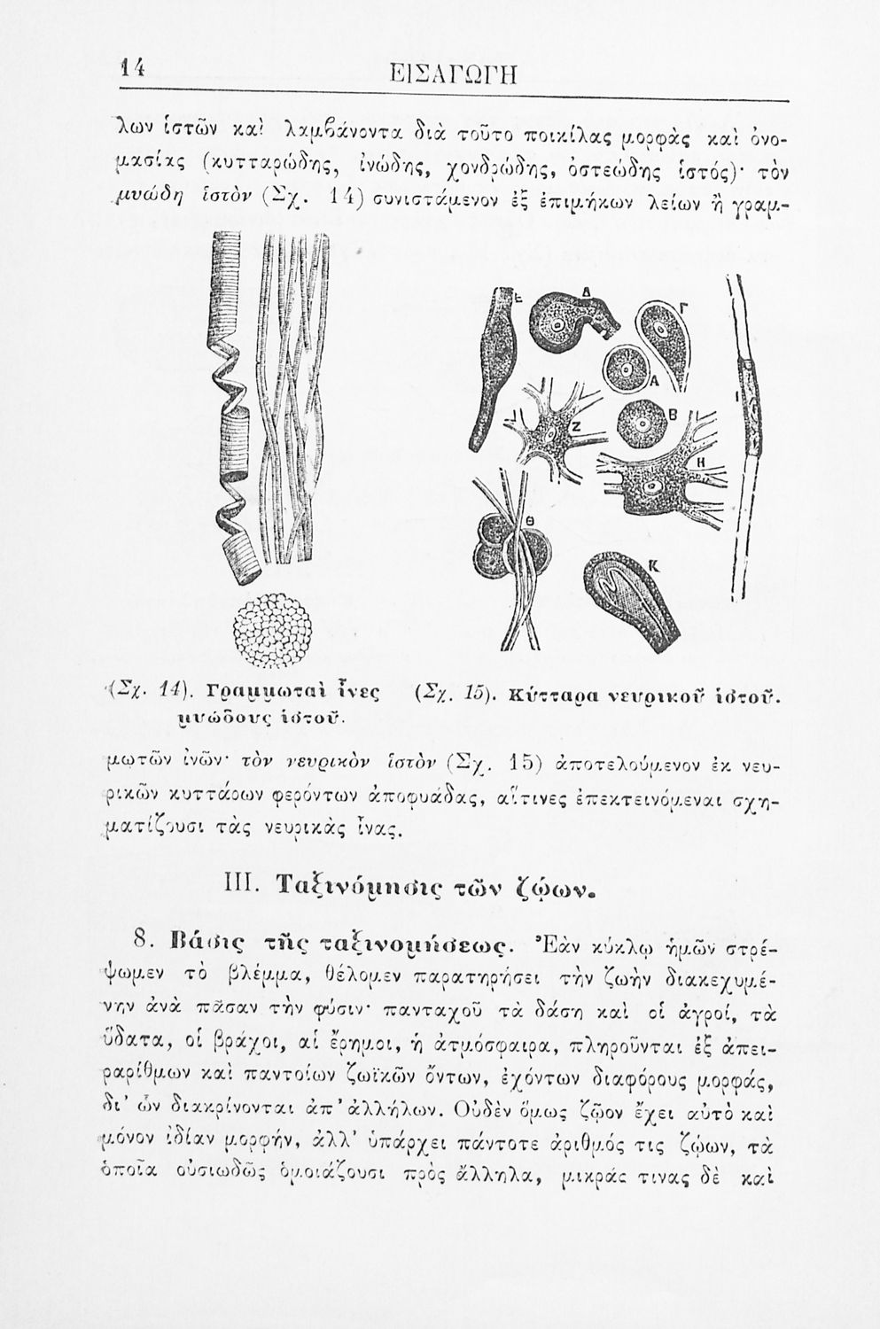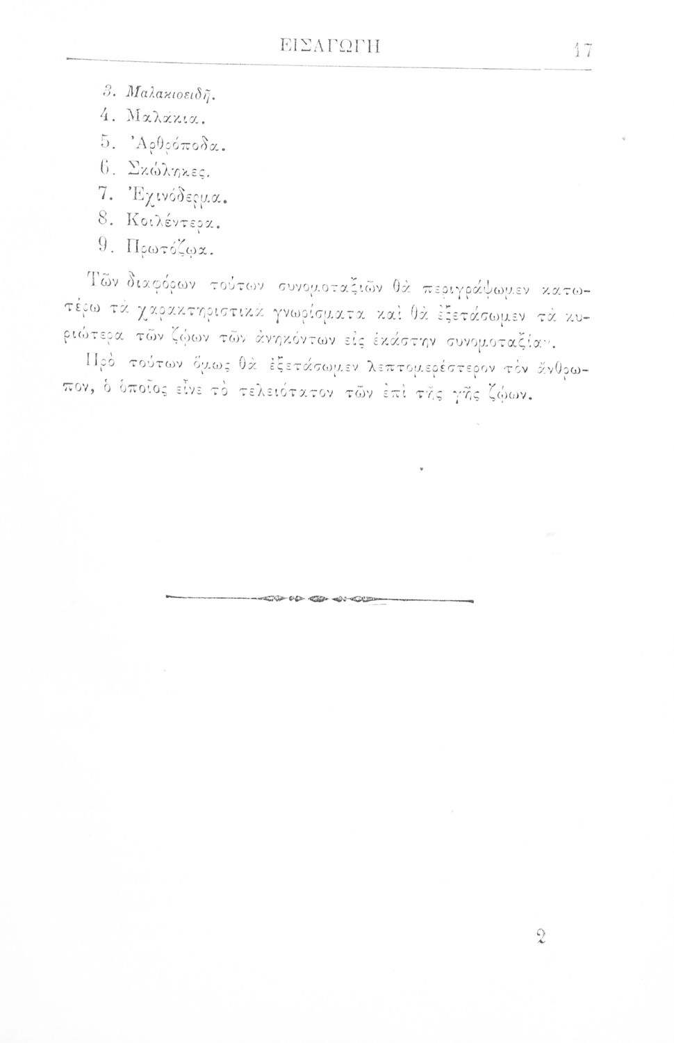 Σχολικό εγχειρίδιο Ζωολογίας για τα Γυμνάσια, τα Διδασκαλεία και τα Παρθεναγωγεία που εστιάζει στην ανθρώπινη φυσιολογία και ανατομία και παρουσιάζει τα διάφορα ζώα ανάλογα με την συνομοταξία στην οποία ανήκουν.