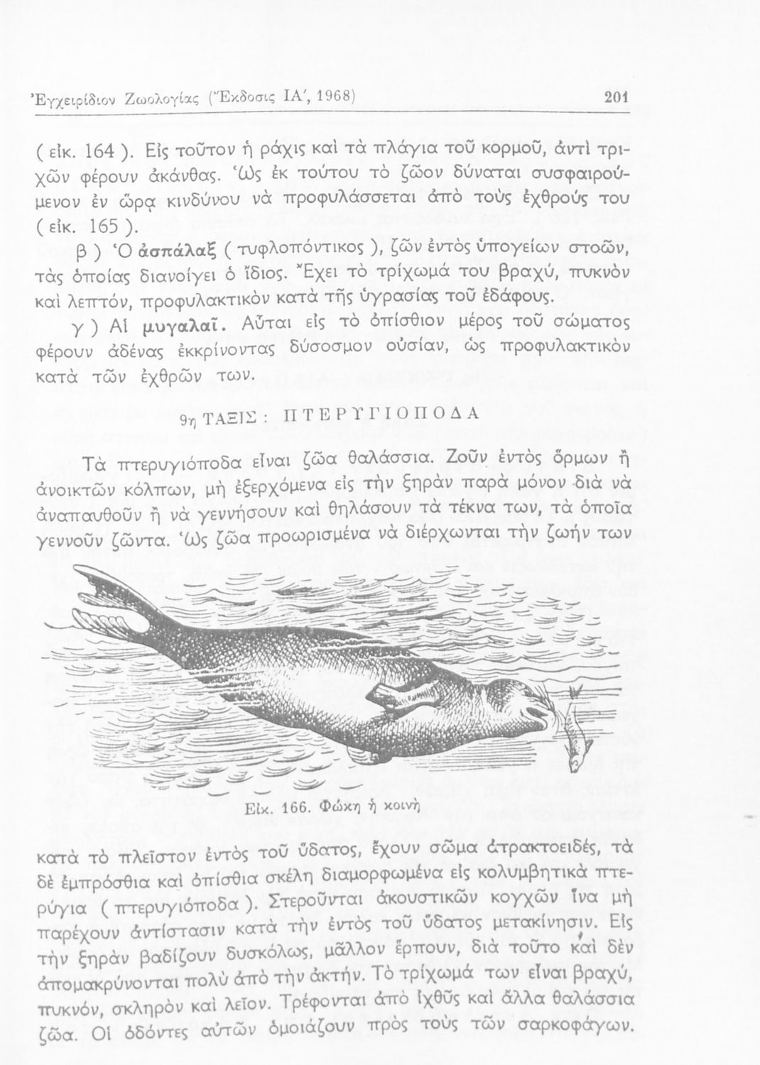 Σχολικό εγχειρίδιο Ζωολογίας για την Γ΄ τάξη των Εξαταξίων Γυμνασίων που παρουσιάζει τα διάφορα ζώα ανάλογα με την συνομοταξία στην οποία ανήκουν.