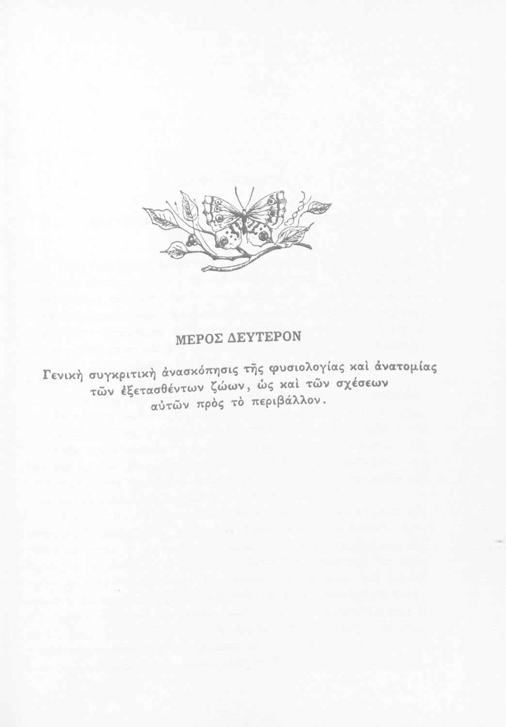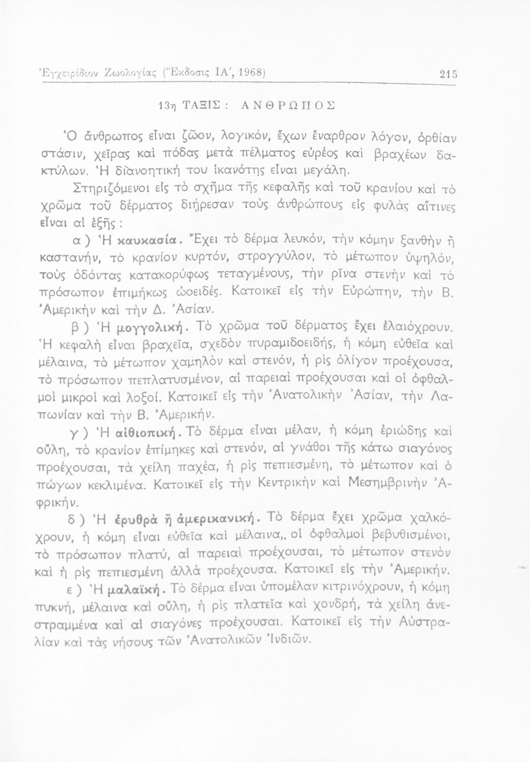 Σχολικό εγχειρίδιο Ζωολογίας για τα Γυμνάσια και τα Διδασκαλεία που εστιάζει στην ανθρώπινη φυσιολογία και παρουσιάζει τα διάφορα ζώα ανάλογα με την συνομοταξία στην οποία ανήκουν.