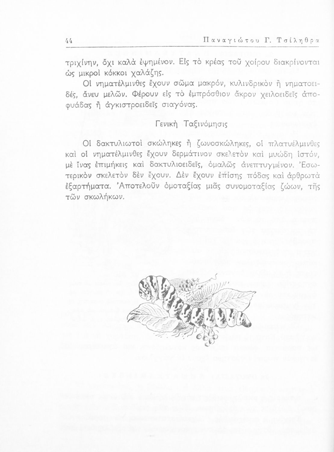 Σχολικό εγχειρίδιο Ζωολογίας για τα Γυμνάσια και τα Διδασκαλεία που εστιάζει στην ανθρώπινη φυσιολογία και παρουσιάζει τα διάφορα ζώα ανάλογα με την συνομοταξία στην οποία ανήκουν.