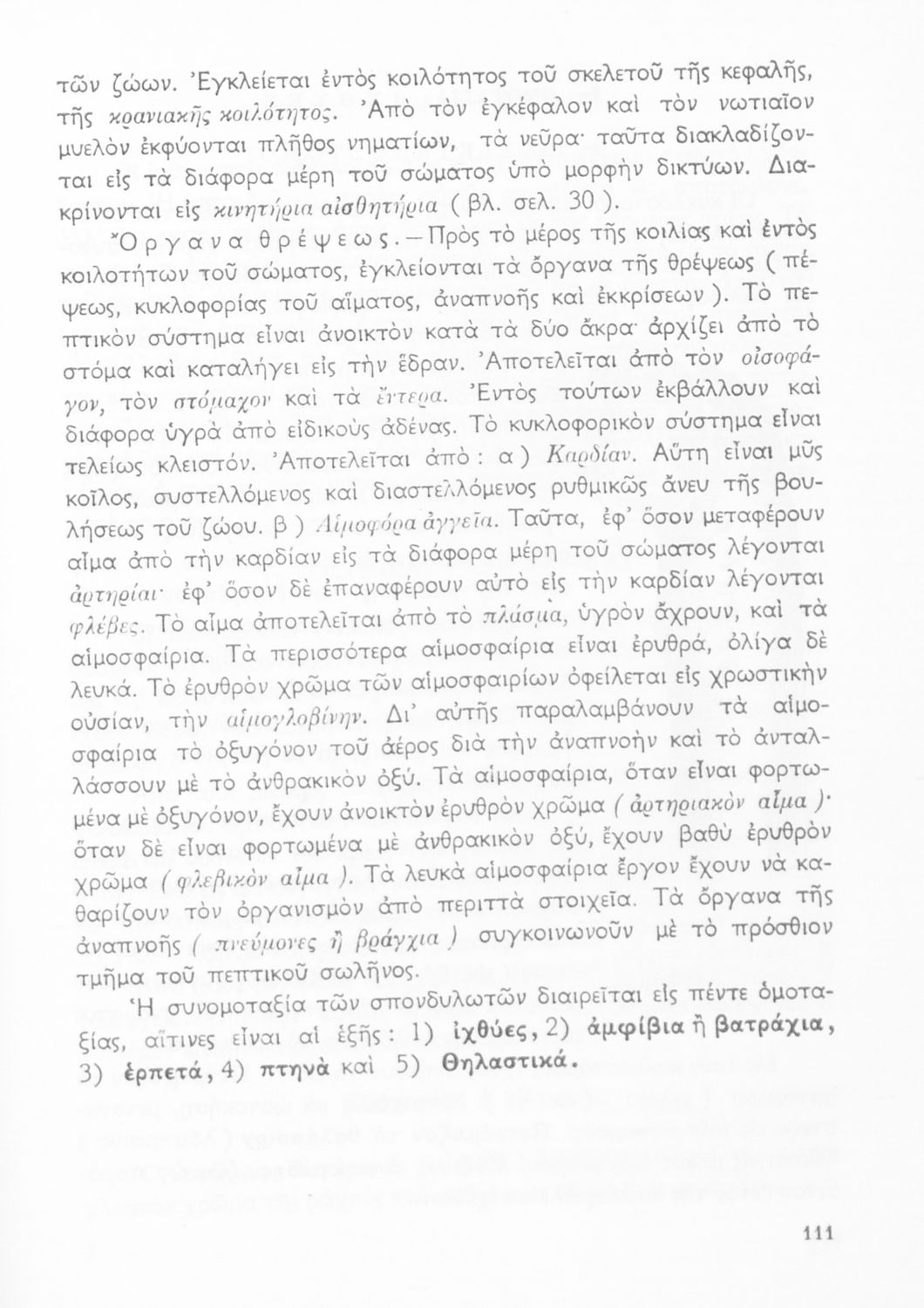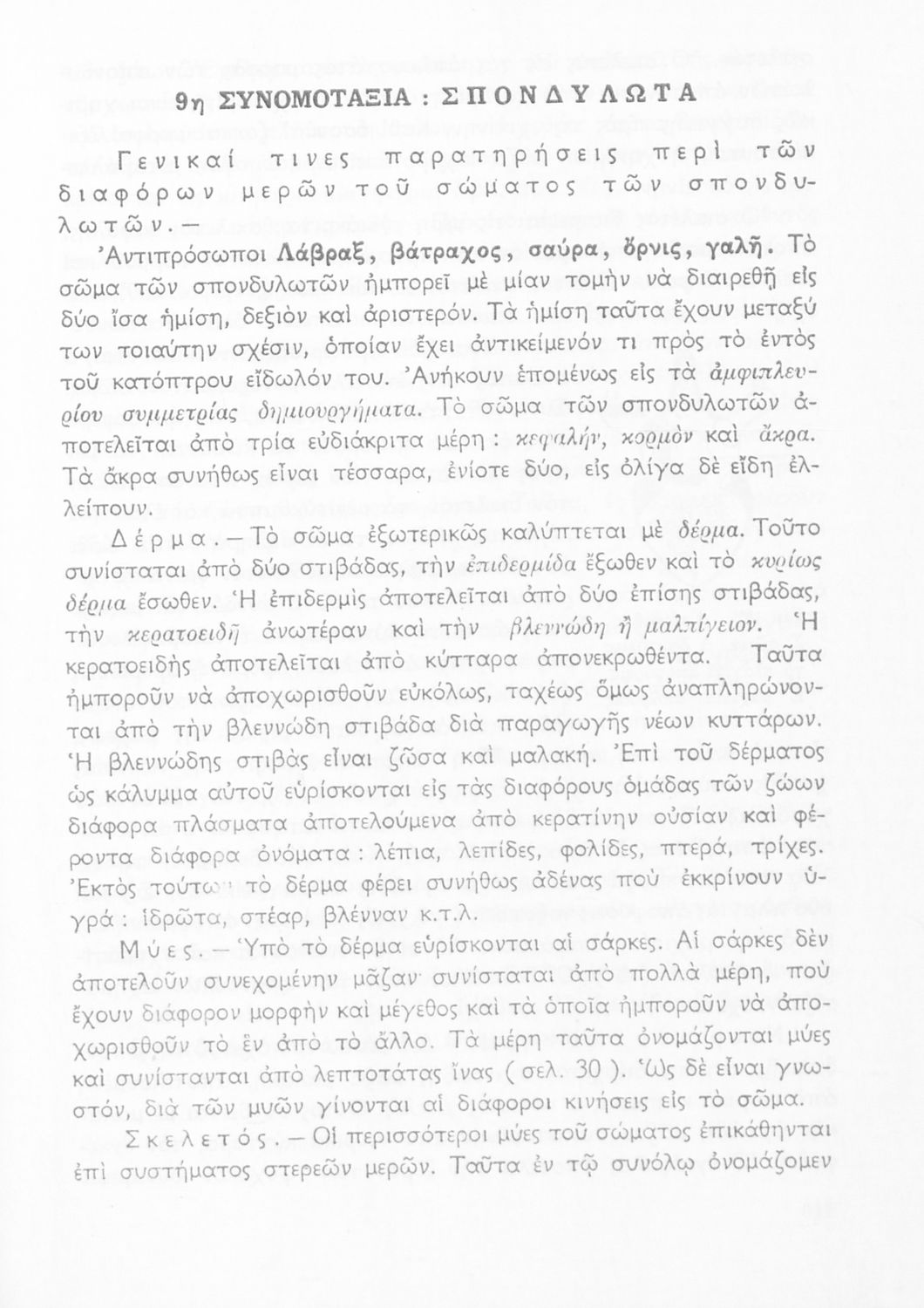 Σχολικό εγχειρίδιο Ζωολογίας για την Γ΄ τάξη των Εξαταξίων Γυμνασίων που παρουσιάζει τα διάφορα ζώα ανάλογα με την συνομοταξία στην οποία ανήκουν.