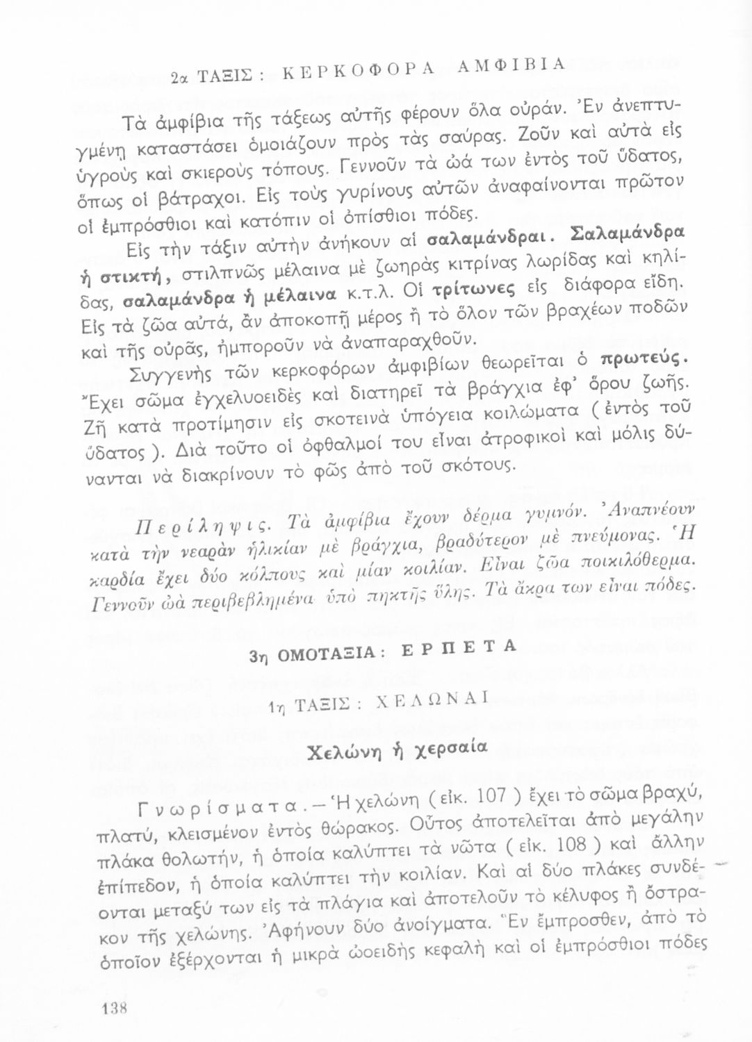 Σχολικό εγχειρίδιο Ζωολογίας για την Γ΄ τάξη των Εξαταξίων Γυμνασίων που παρουσιάζει τα διάφορα ζώα ανάλογα με την συνομοταξία στην οποία ανήκουν.