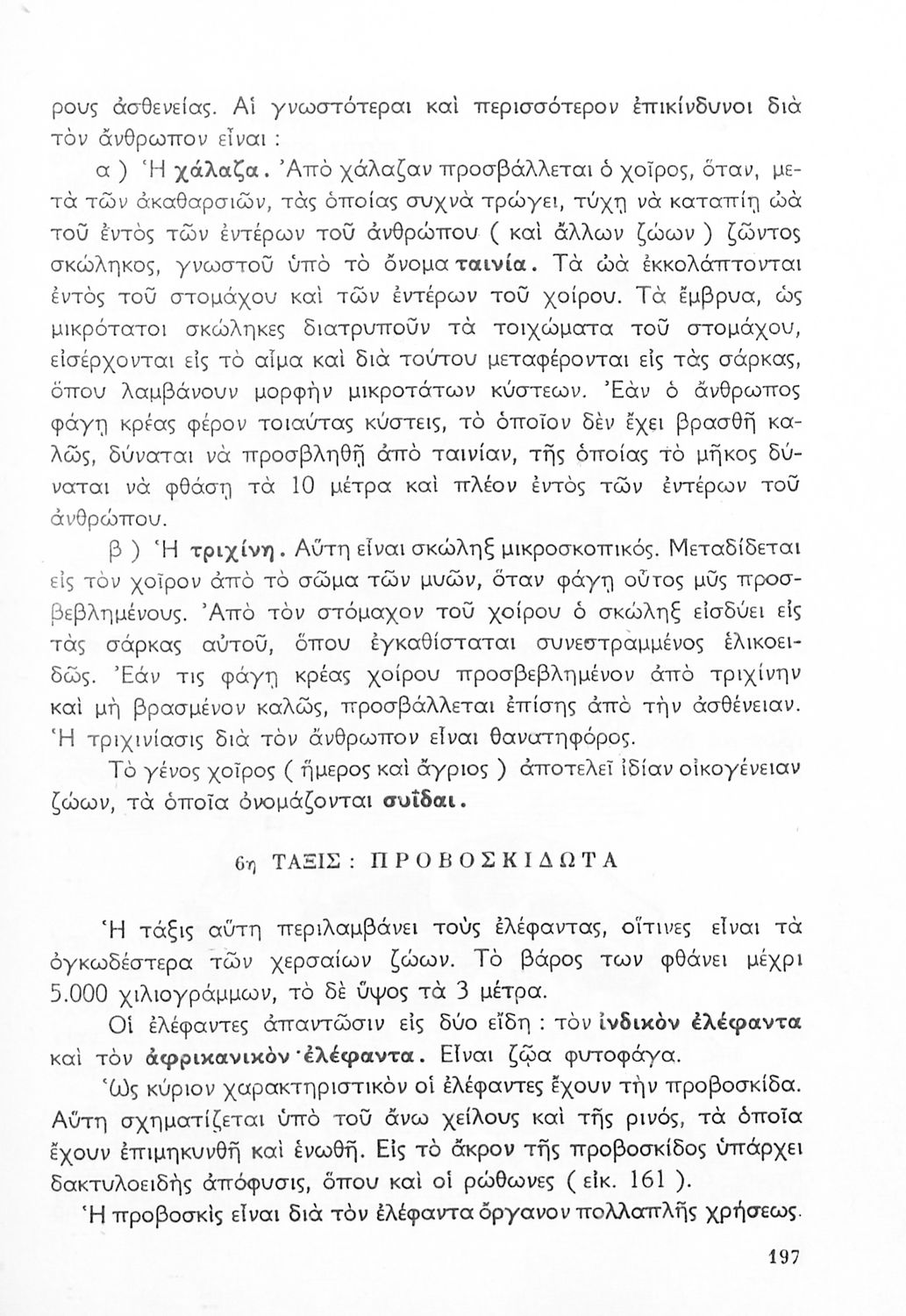 Σχολικό εγχειρίδιο Ζωολογίας Α΄ Γυμνασίου που εστιάζει στη φυσιολογία και ανατομία και παρουσιάζει τα διάφορα ζώα ανάλογα με την συνομοταξία στην οποία ανήκουν. Φέρει το σύμβολο της δικτατορίας.