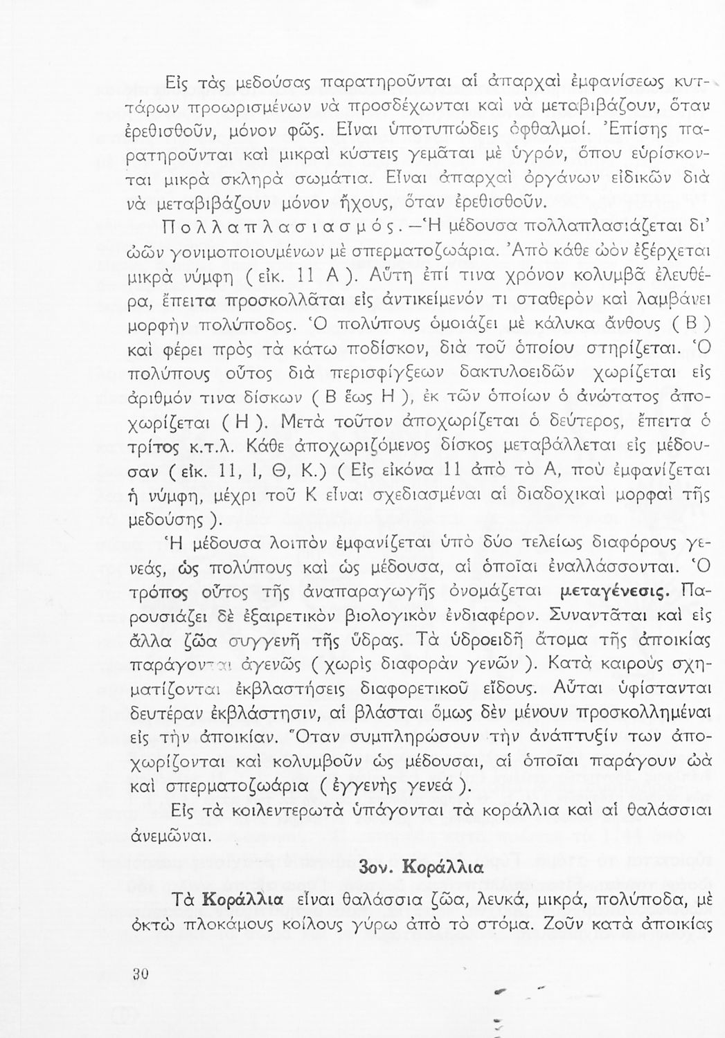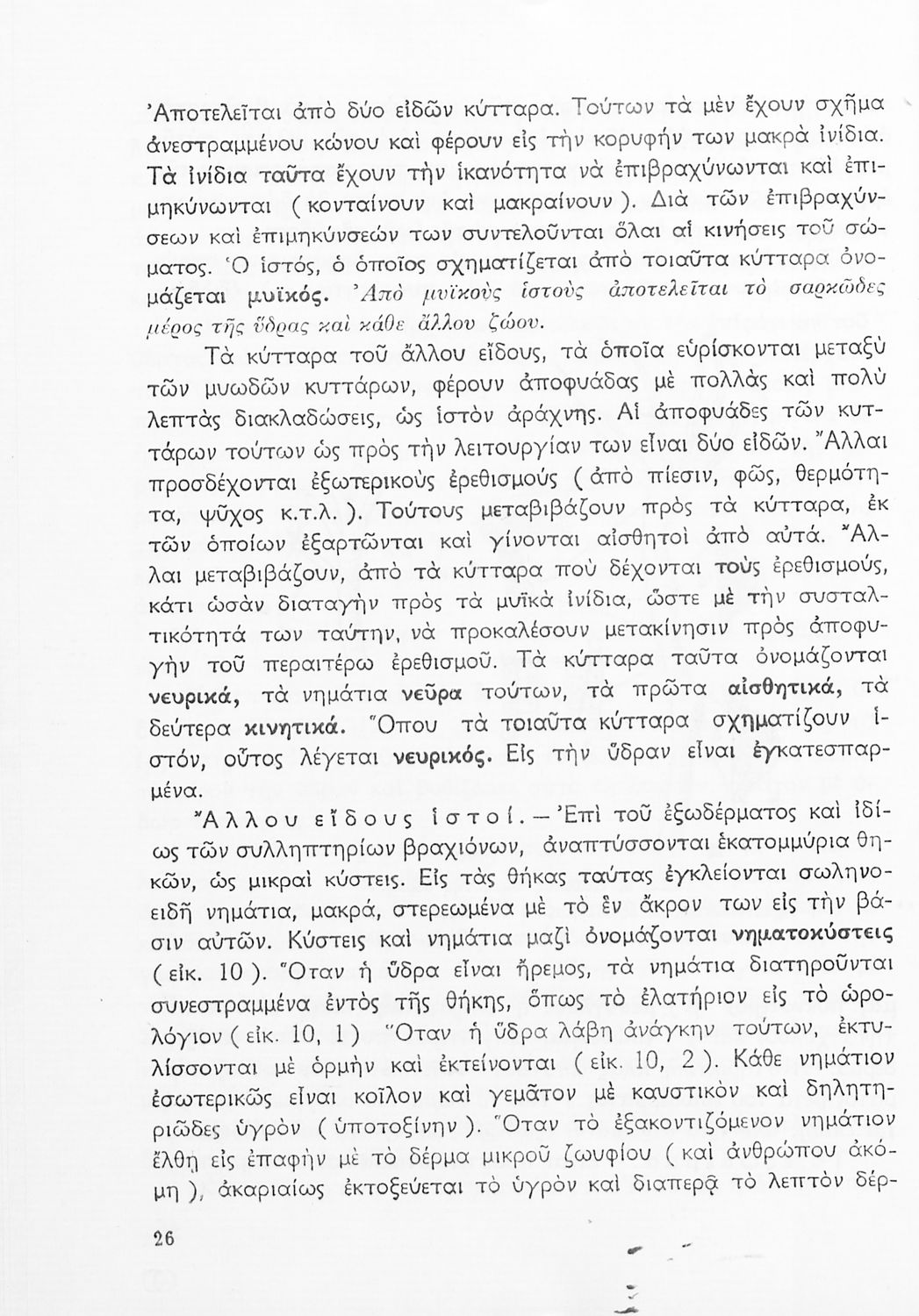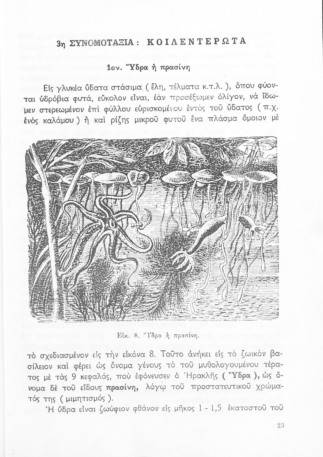 Βαθμίδα εκπαίδευσης: Δευτεροβάθμια Τάξη: Α' Γυμνασίου Μάθημα: Ζωολογία Γλώσσα: Απλή καθαρεύουσα Παρουσίαση περιεχομένου: Σχολικό εγχειρίδιο Ζωολογίας Α΄ Γυμνασίου που εστιάζει στη φυσιολογία και ανατομία και παρουσιάζει τα διάφορα ζώα ανάλογα με την συνομοταξία στην οποία ανήκουν. |