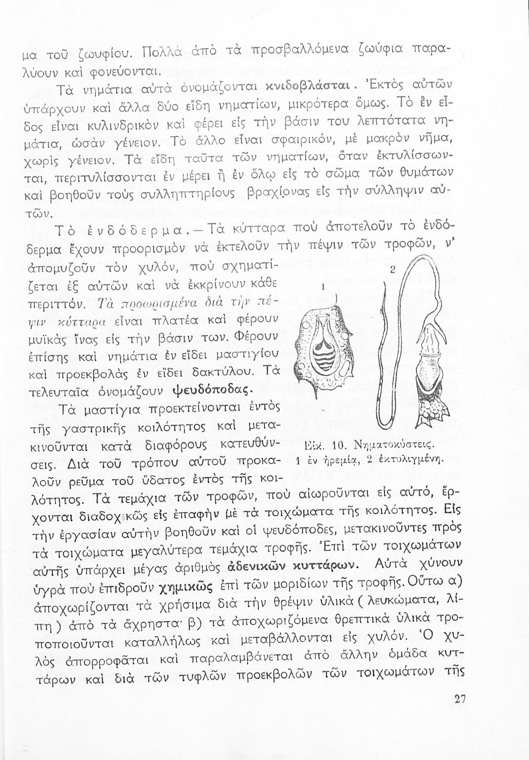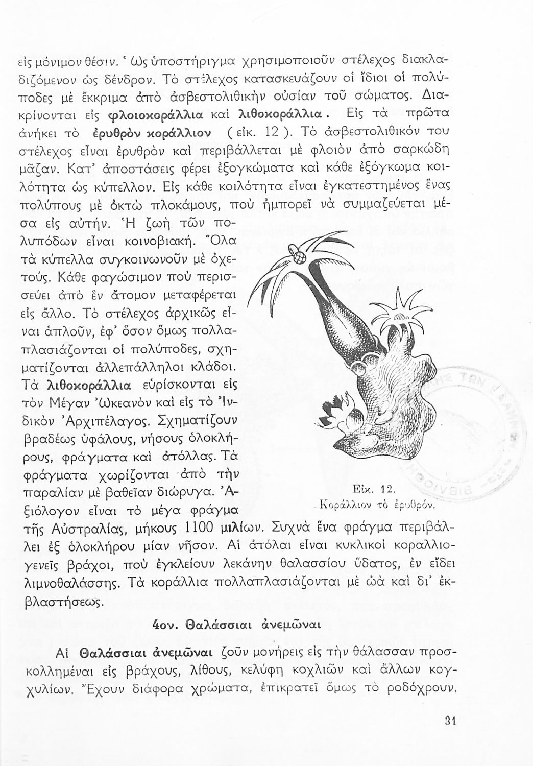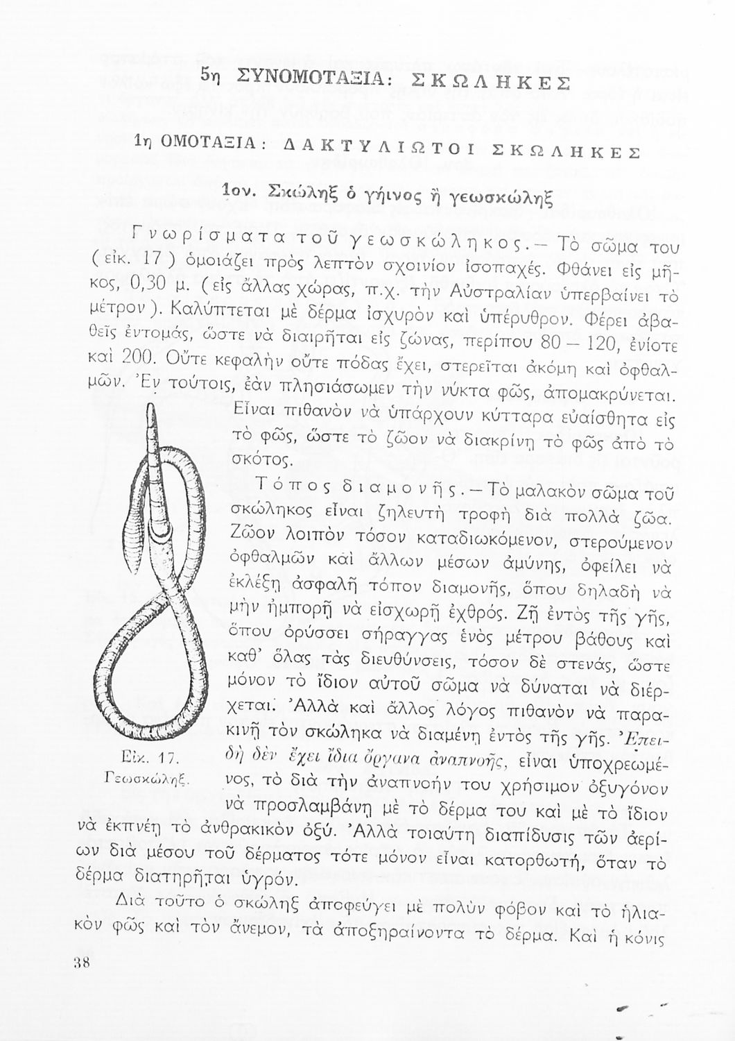 Βαθμίδα εκπαίδευσης: Δευτεροβάθμια Τάξη: Α' Γυμνασίου Μάθημα: Ζωολογία Γλώσσα: Απλή καθαρεύουσα Παρουσίαση περιεχομένου: Σχολικό εγχειρίδιο Ζωολογίας Α΄ Γυμνασίου που εστιάζει στη φυσιολογία και ανατομία και παρουσιάζει τα διάφορα ζώα ανάλογα με την συνομοταξία στην οποία ανήκουν. |