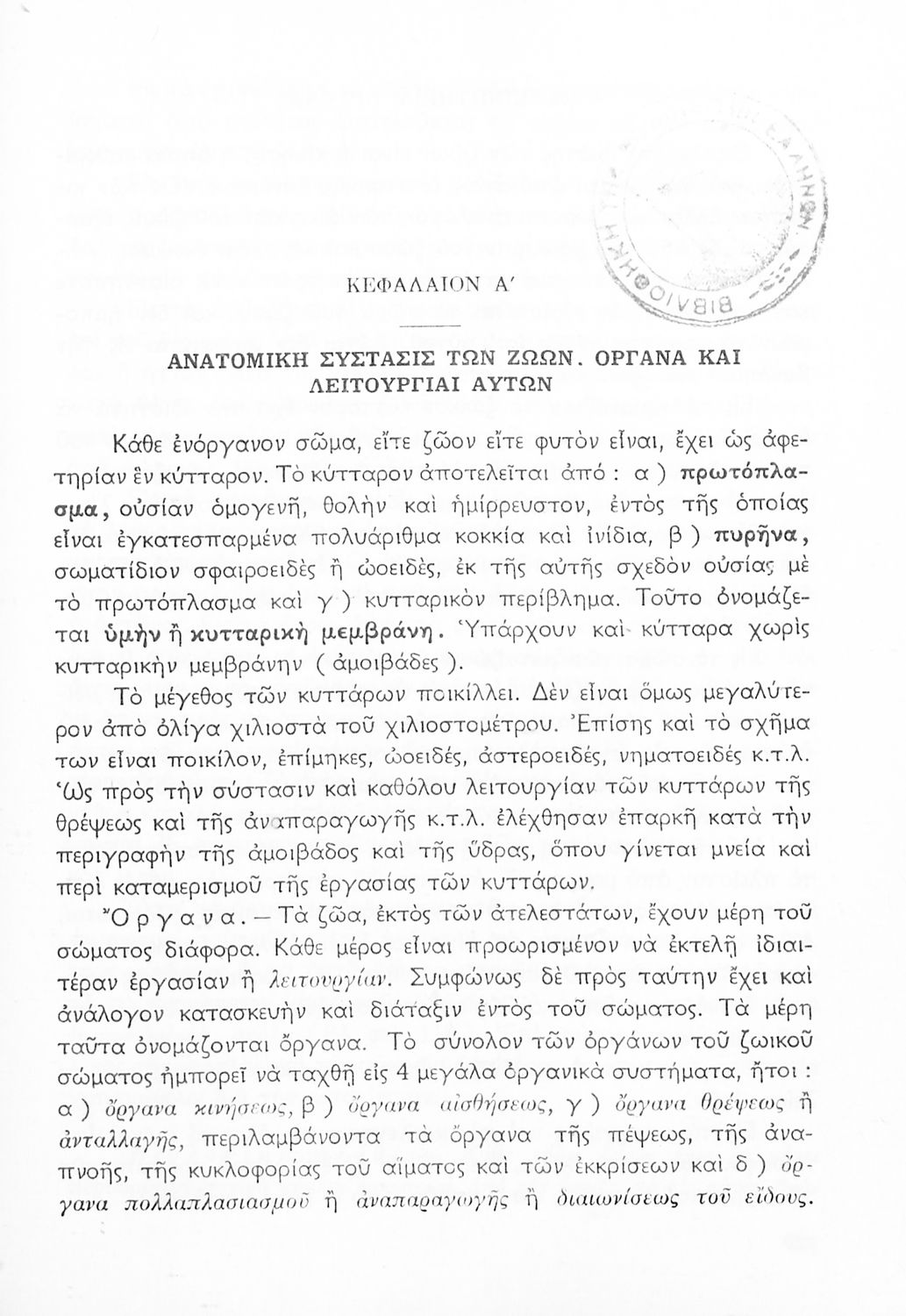 Εγχειρίδιον Ζωολογίας Α' Γυμνασίου