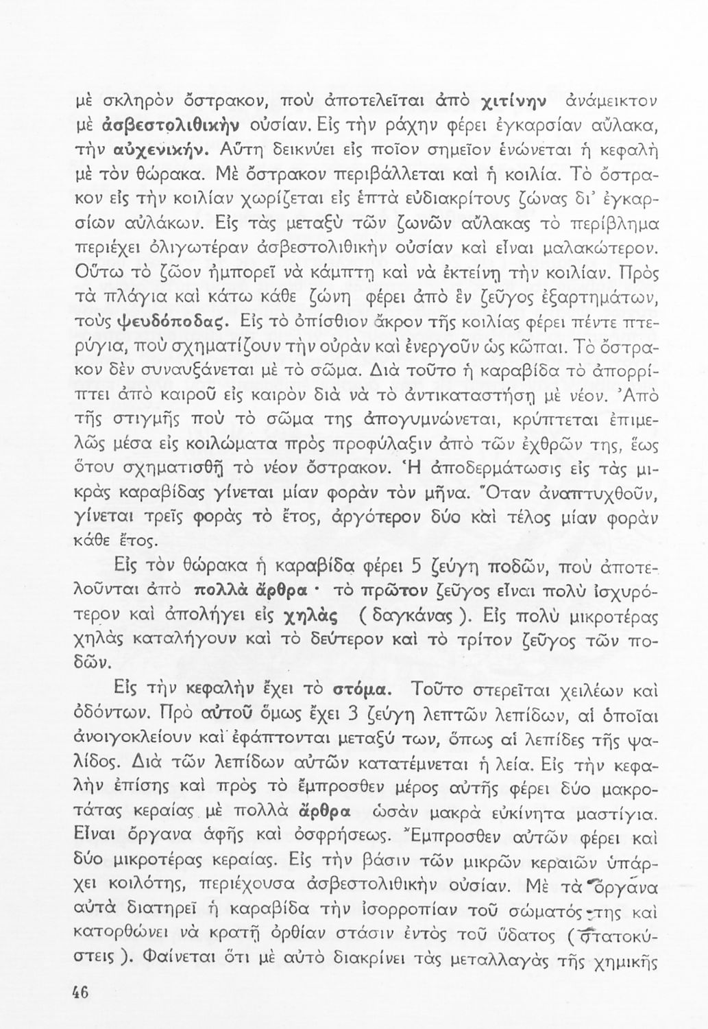 Σχολικό εγχειρίδιο Ζωολογίας Α΄ Γυμνασίου που εστιάζει στη φυσιολογία και ανατομία και παρουσιάζει τα διάφορα ζώα ανάλογα με την συνομοταξία στην οποία ανήκουν. Φέρει το σύμβολο της δικτατορίας.