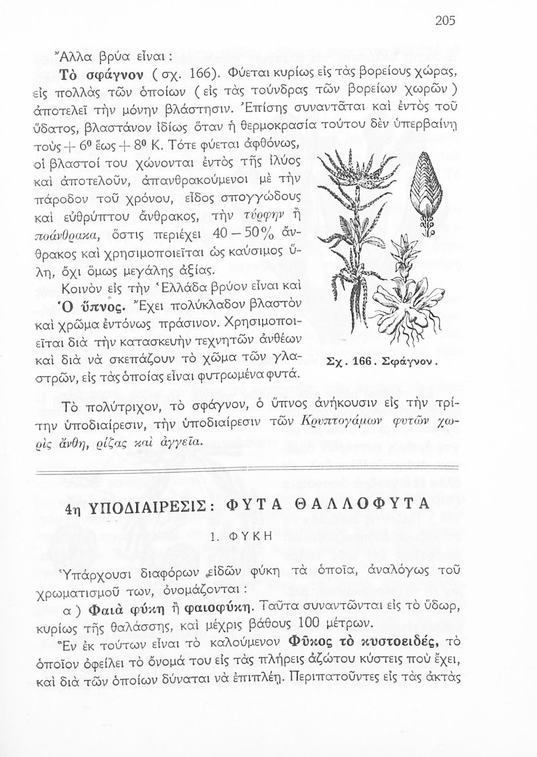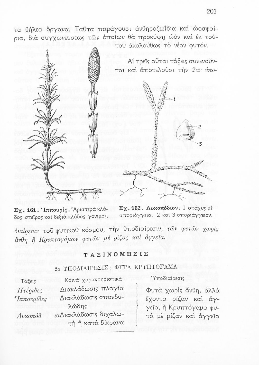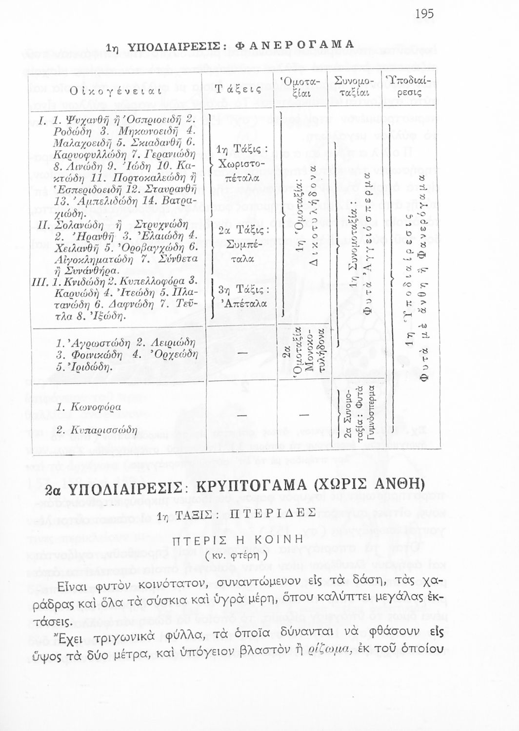 Σχολικό εγχειρίδιο Φυτολογίας Β΄ Γυμνασίου που παρουσιάζει τα φυτά ανάλογα με την συνομοταξία στην οποία ανήκουν.