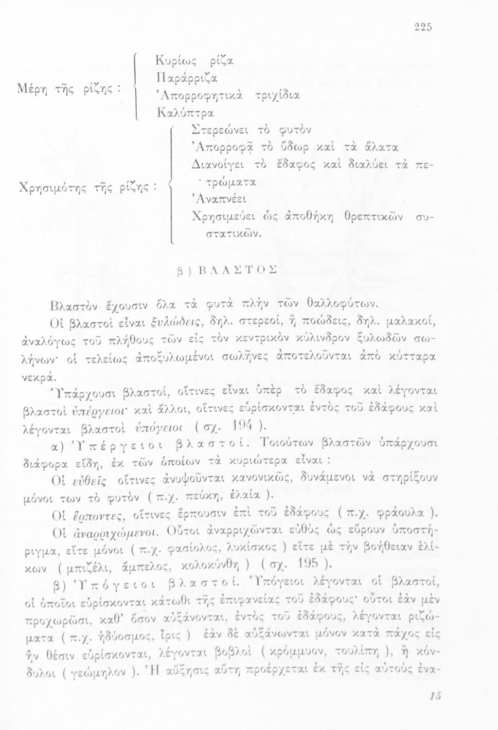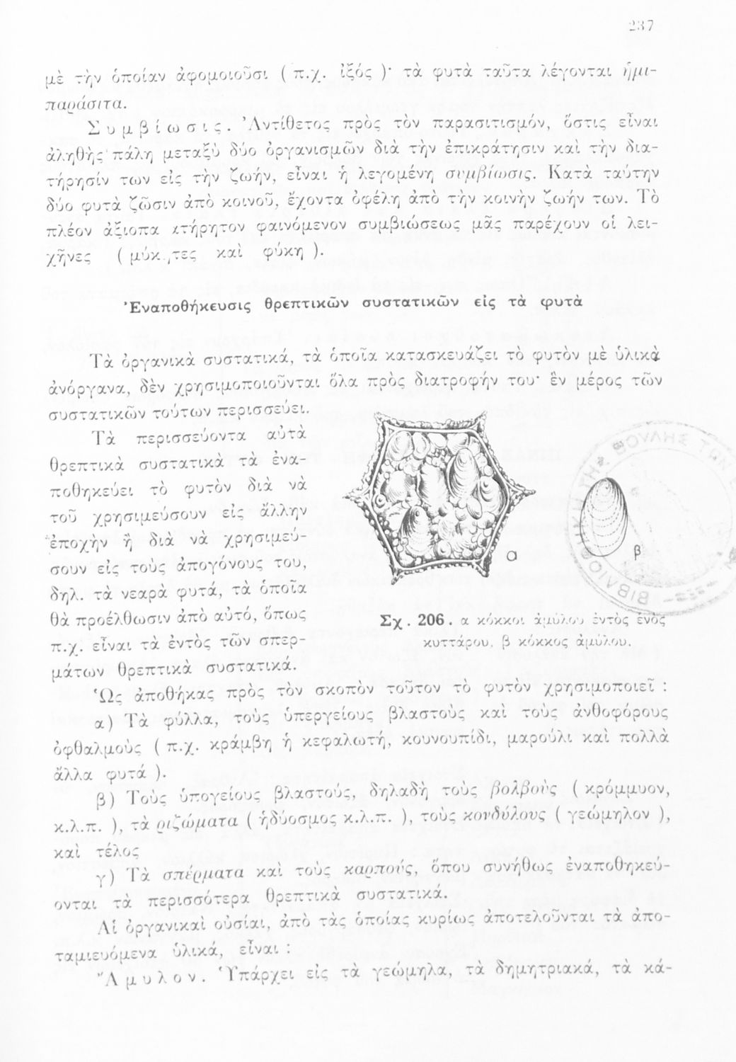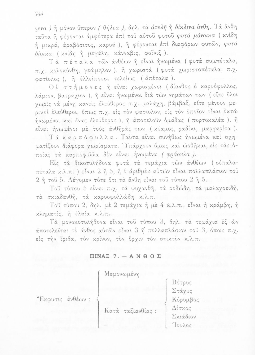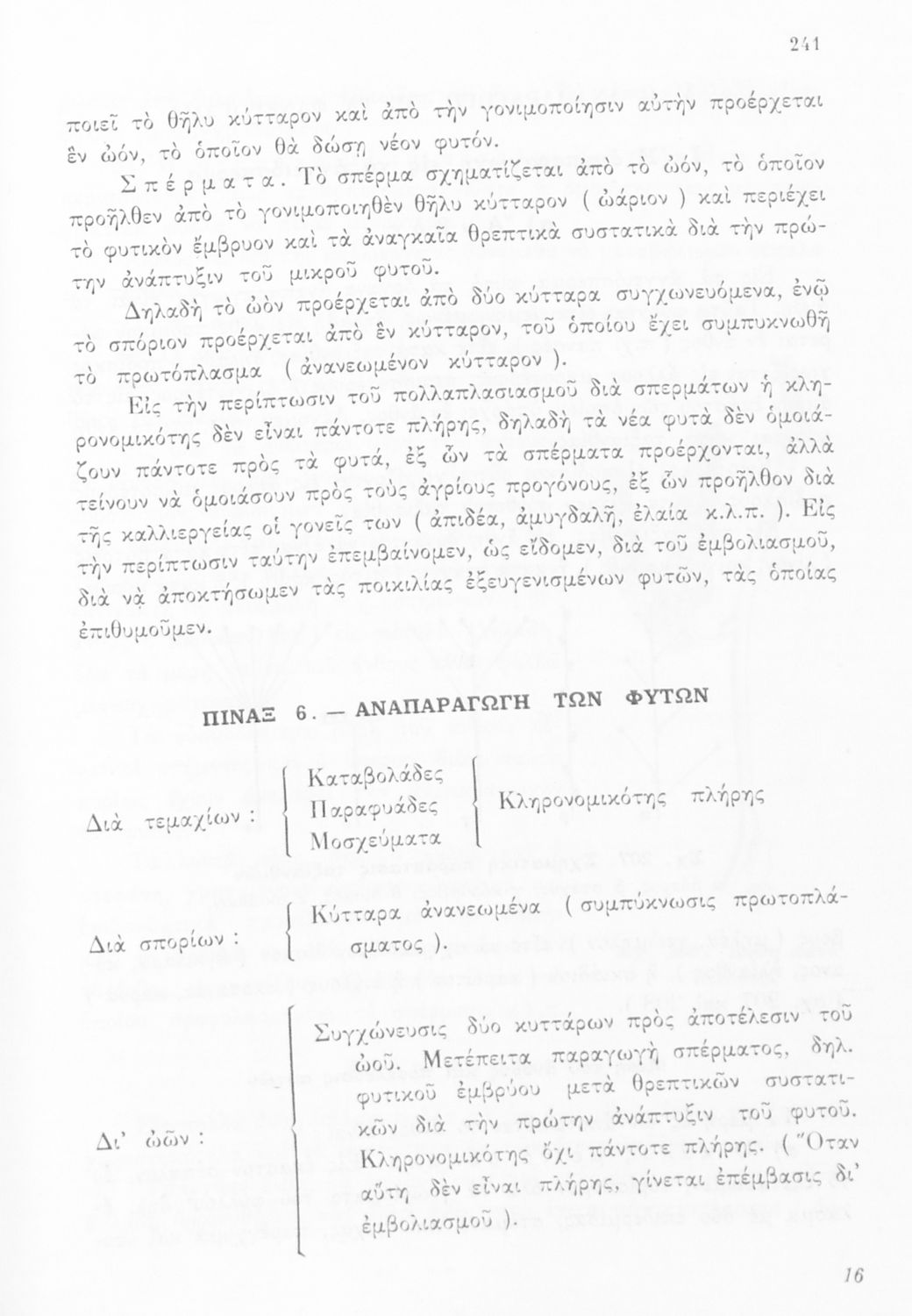Σχολικό εγχειρίδιο Φυτολογίας Α΄ Γυμνασίου που εξετάζει φυτά και δέντρα της Ελλάδας ανάλογα με τη συνομοταξία στην οποία ανήκουν και παρέχει πληροφορίες για την αναπαραγωγή τους και τη χρησιμότητά τους για τον άνθρωπο. Φέρει το σύμβολο της δικτατορίας.