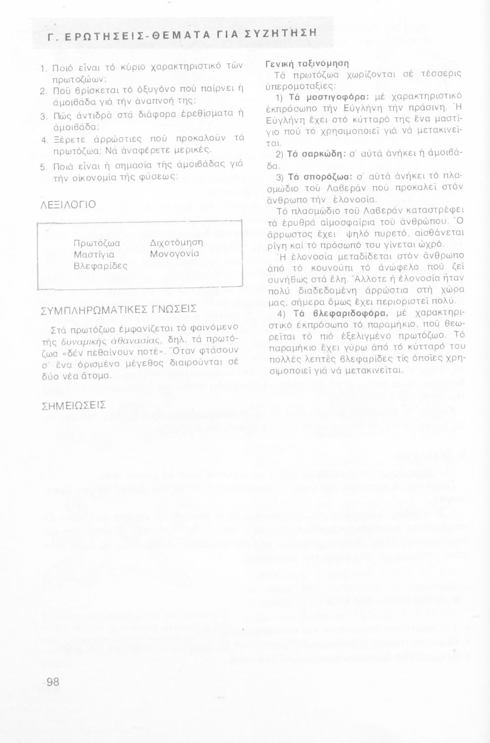 Μάθημα: Βοτανική, Ζωολογία